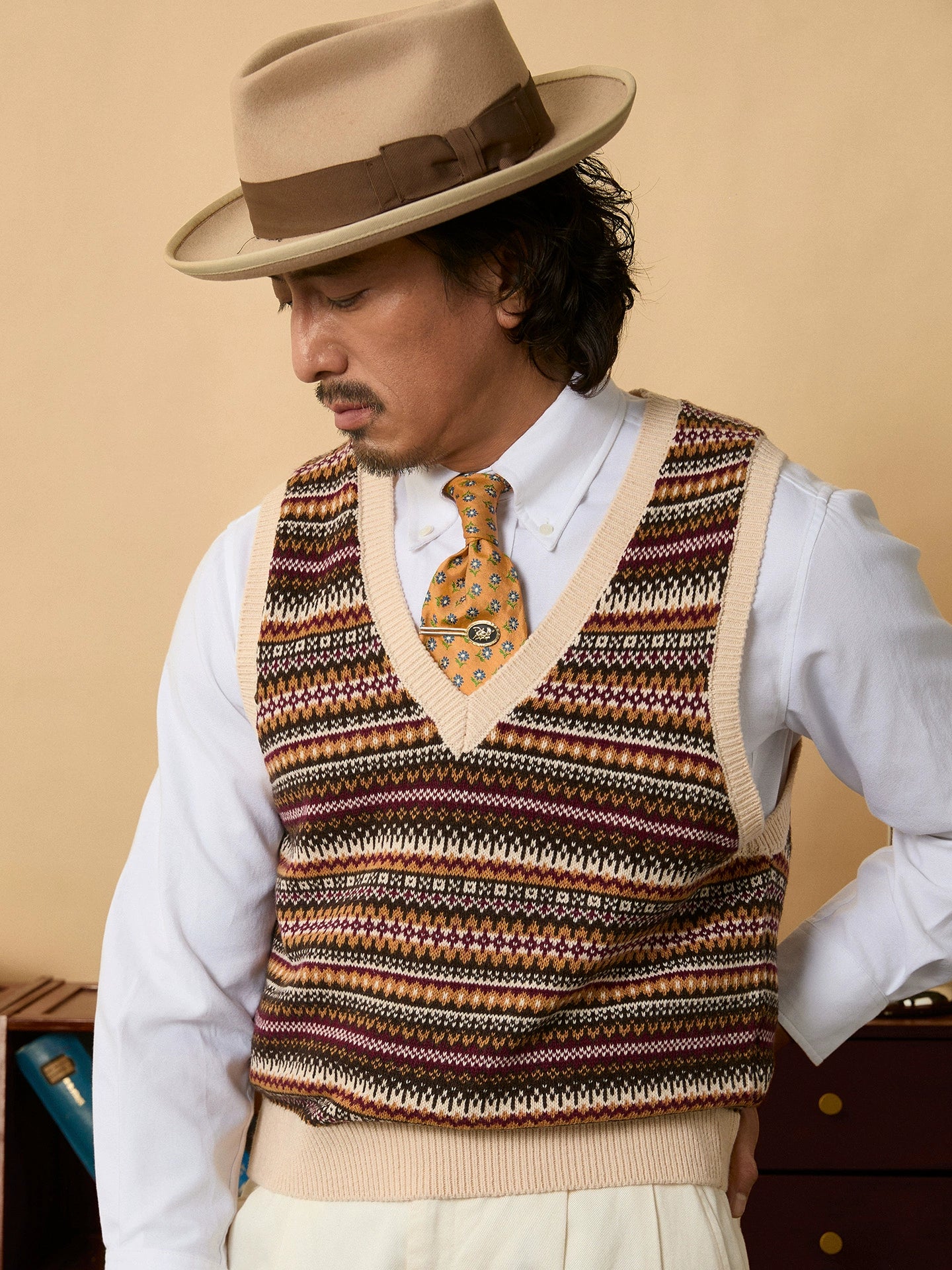 SOARIN英伦复古费尔岛针织马甲男老钱风绅装商务保暖叠穿毛衣背心