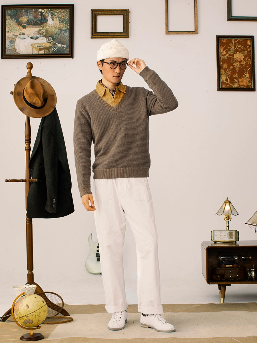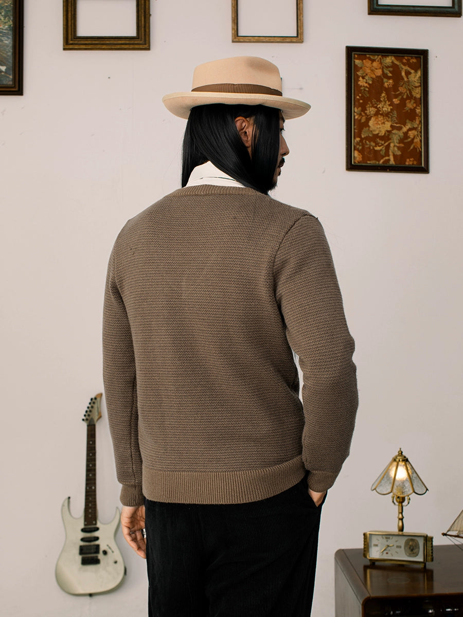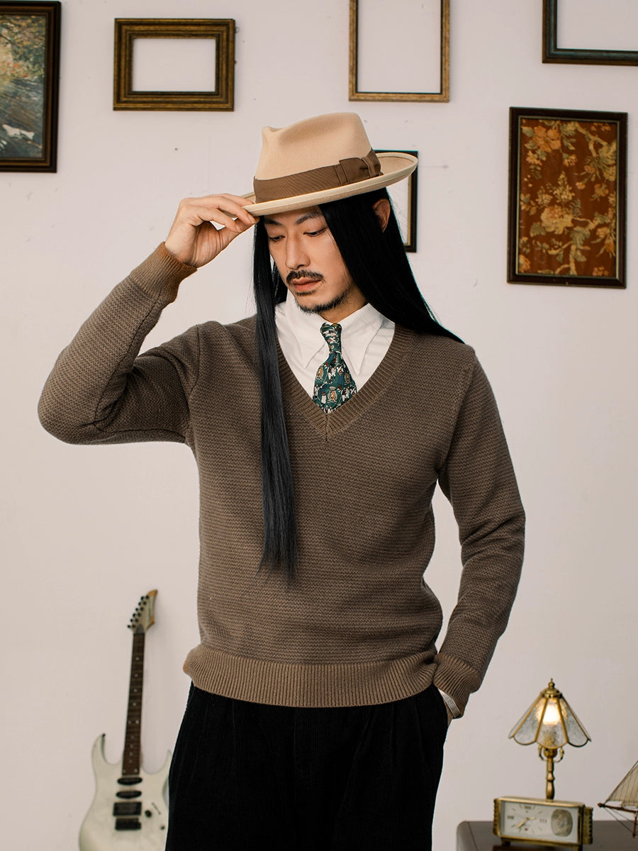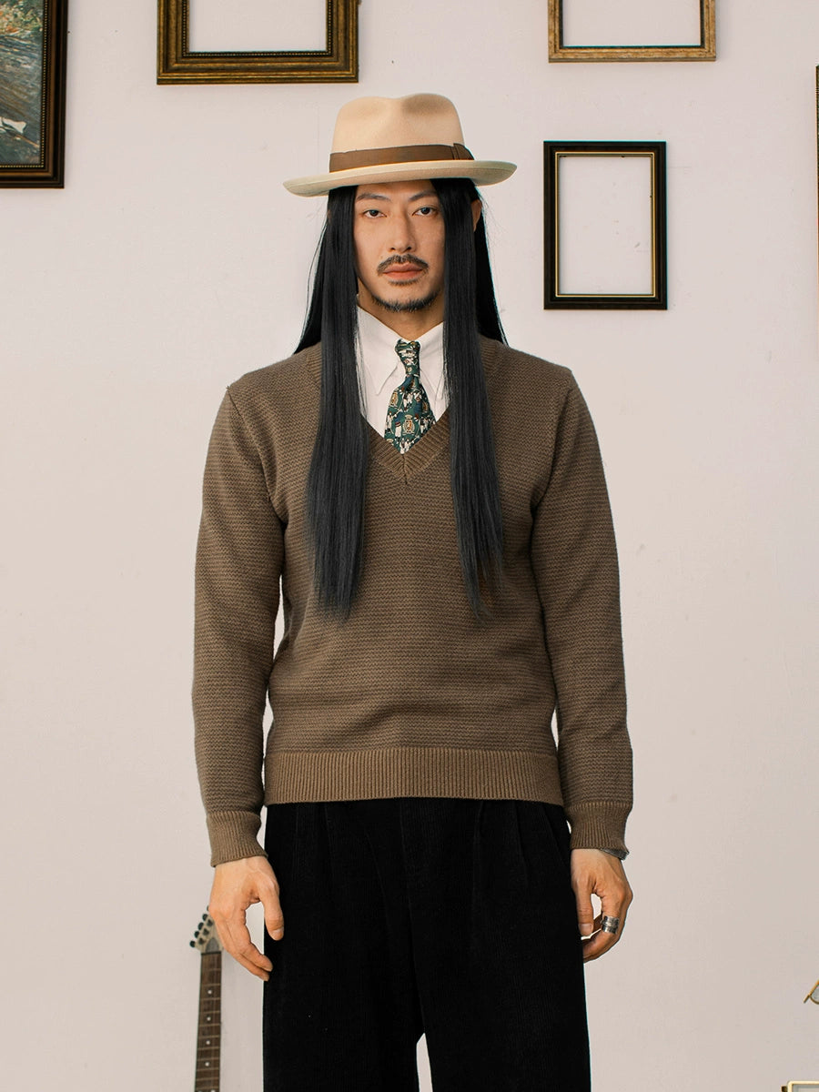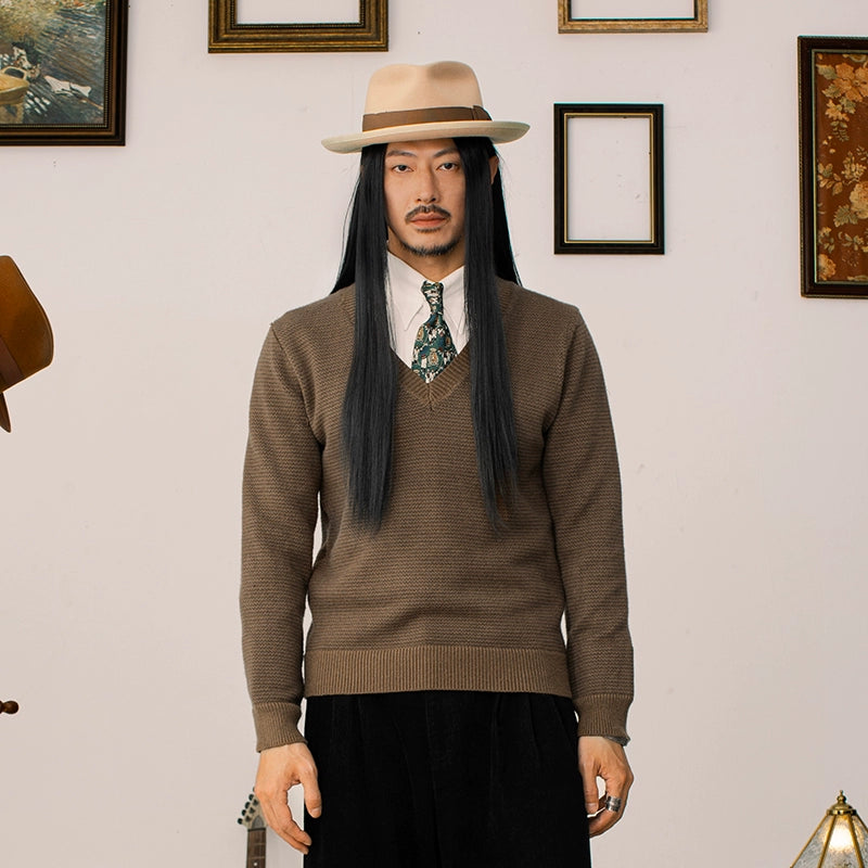 SOARIN英伦复古V领长袖针织毛衣男 重磅保暖鸡心领叠穿打底毛线衣