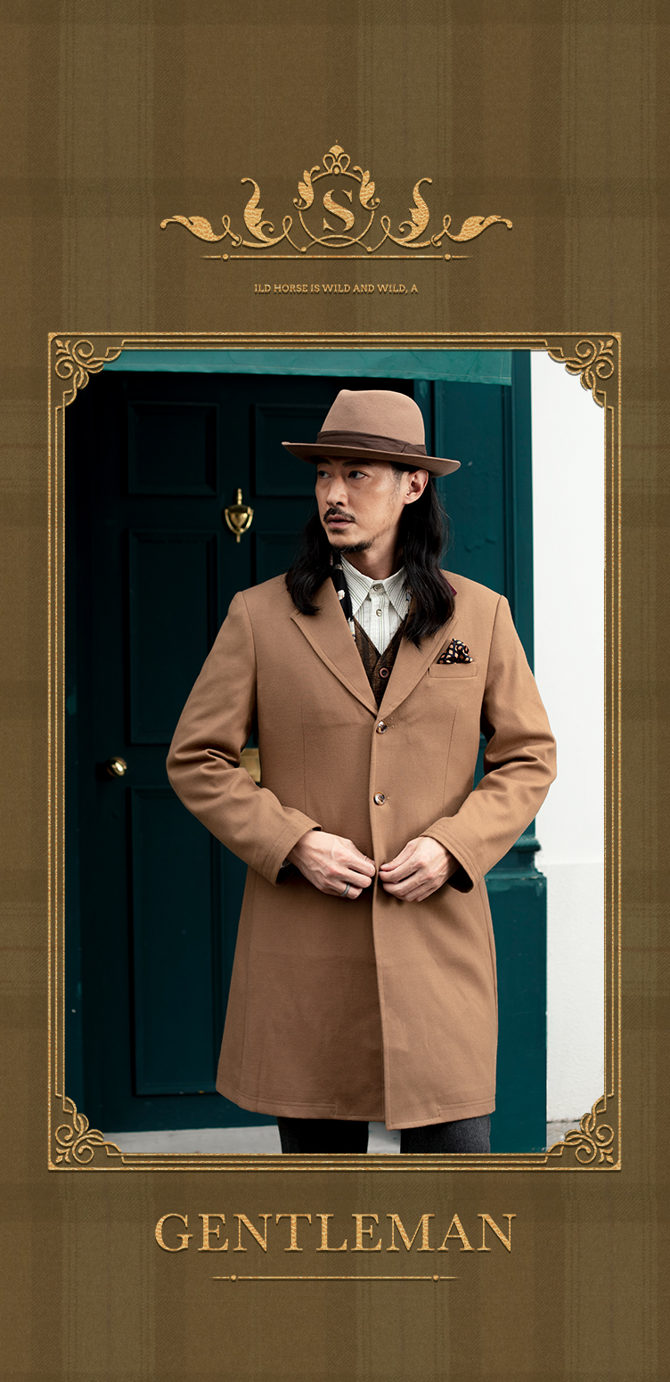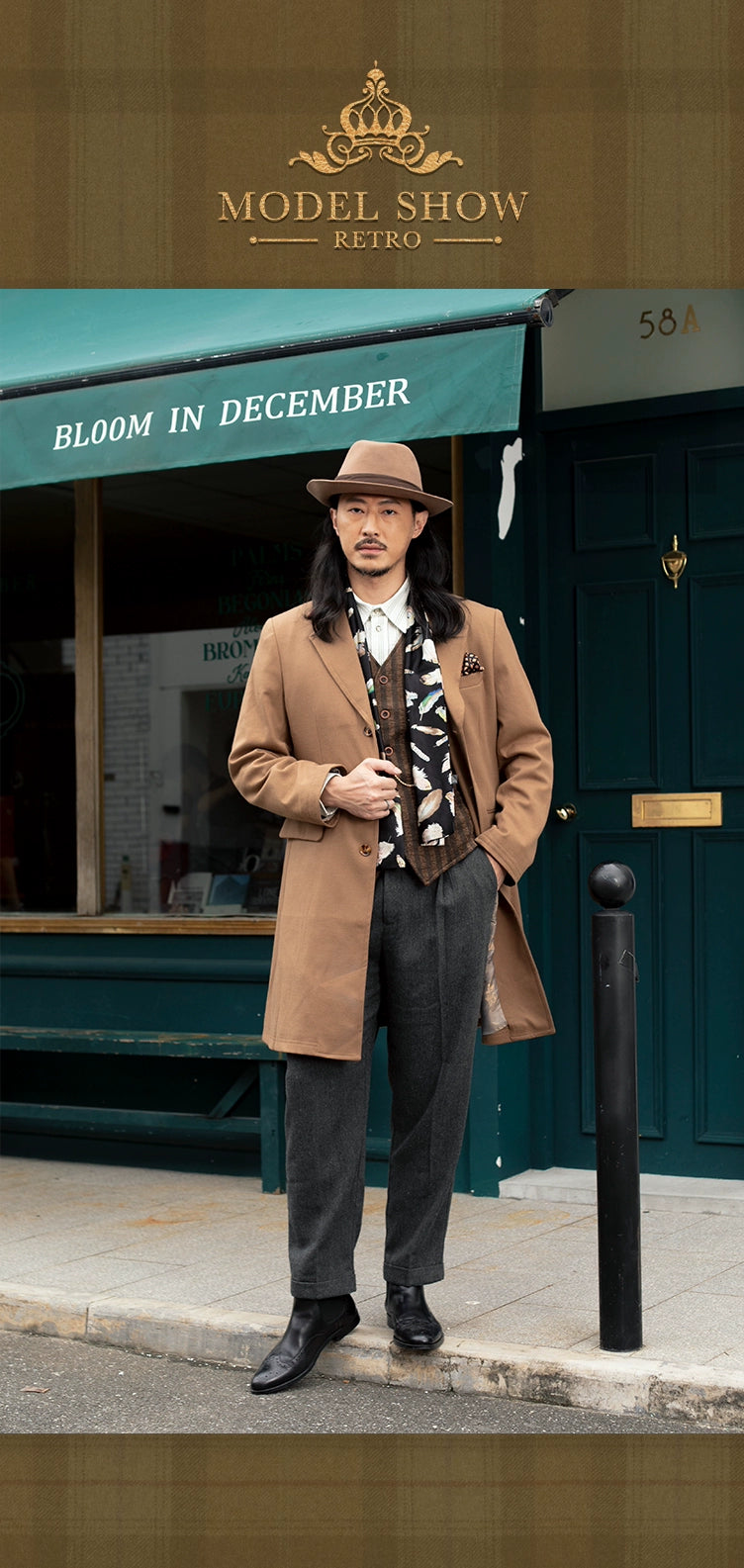 SOARIN英伦风复古呢子大衣外套男 秋冬高级感商务休闲中长款风衣