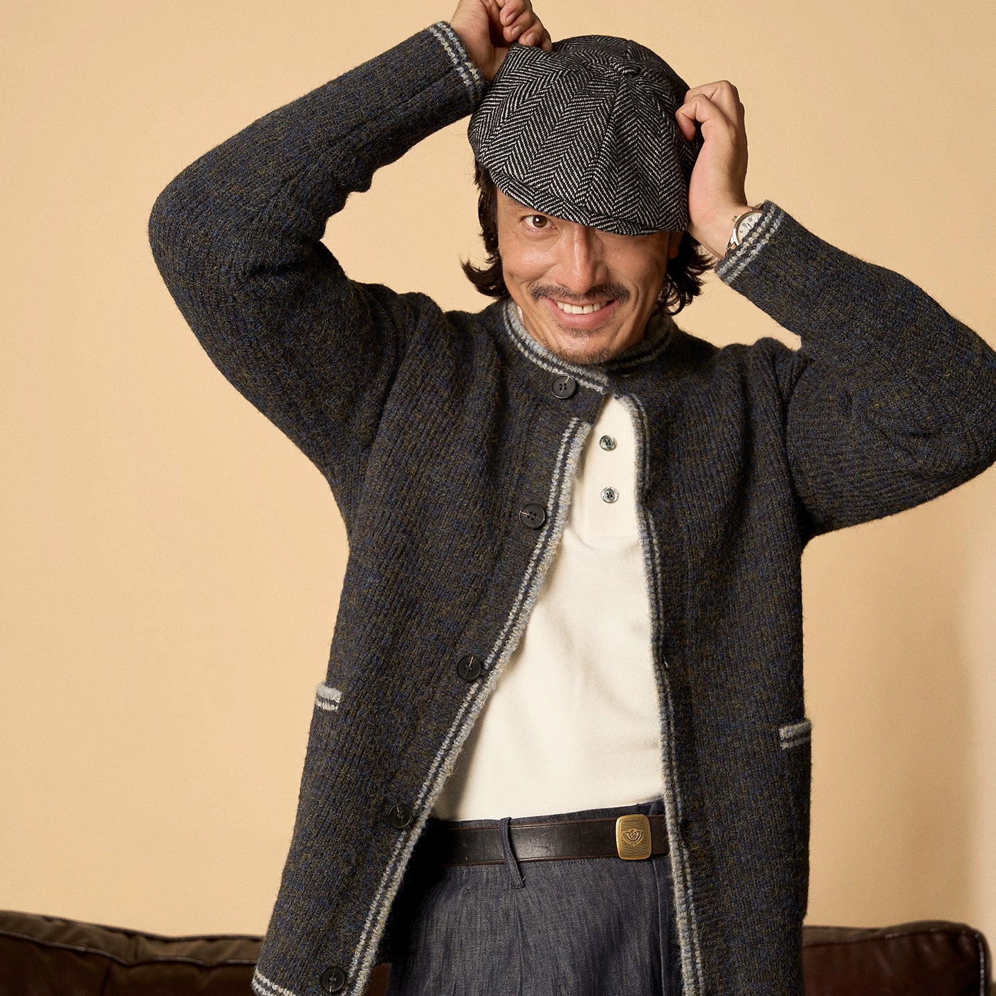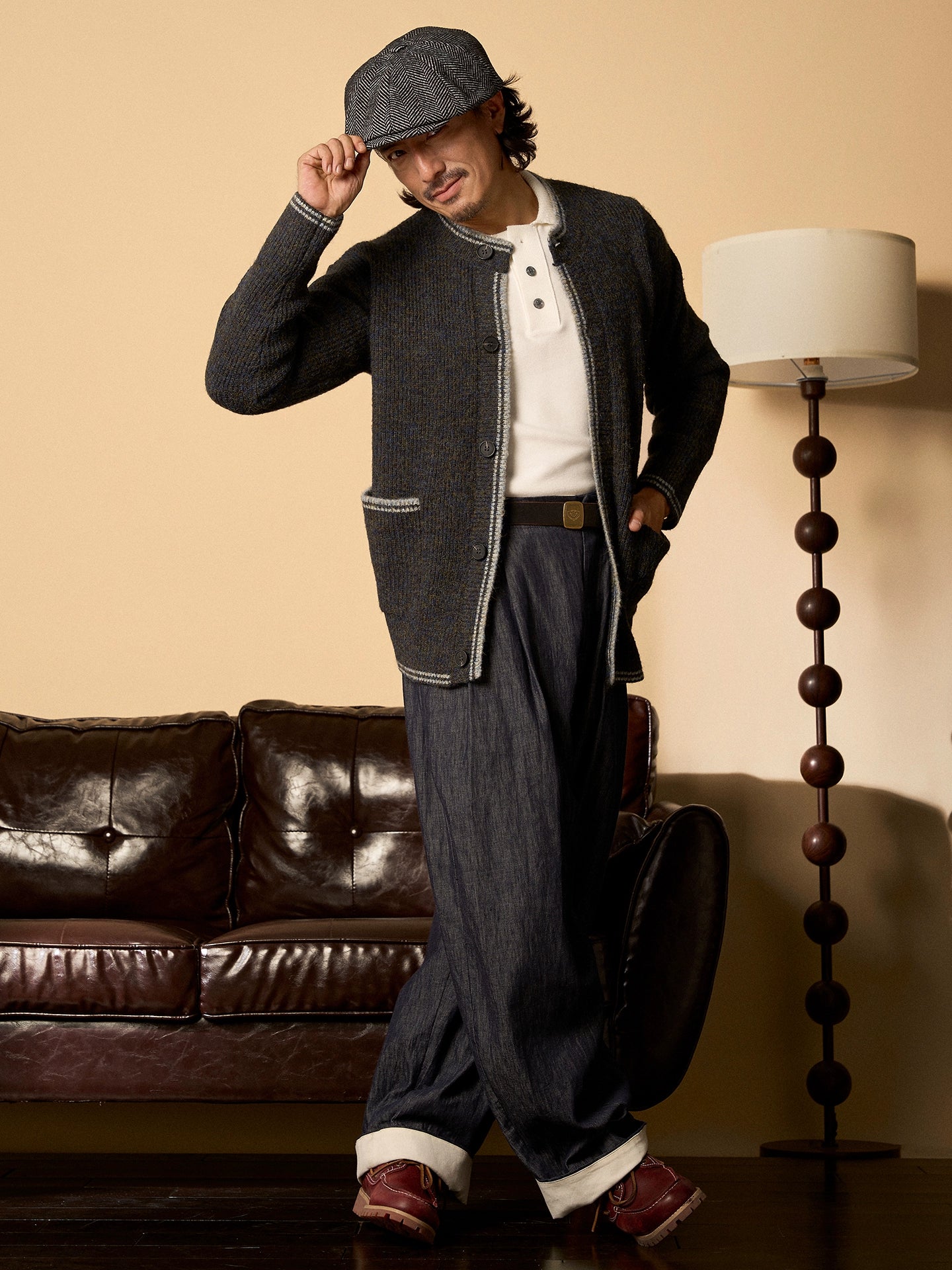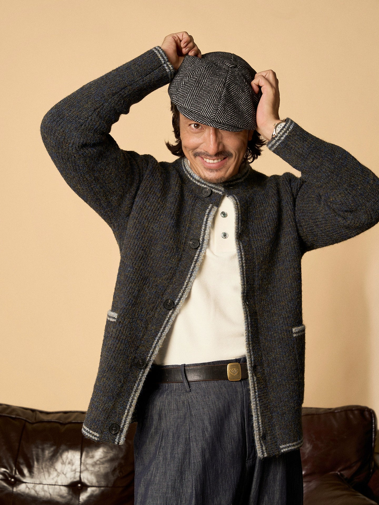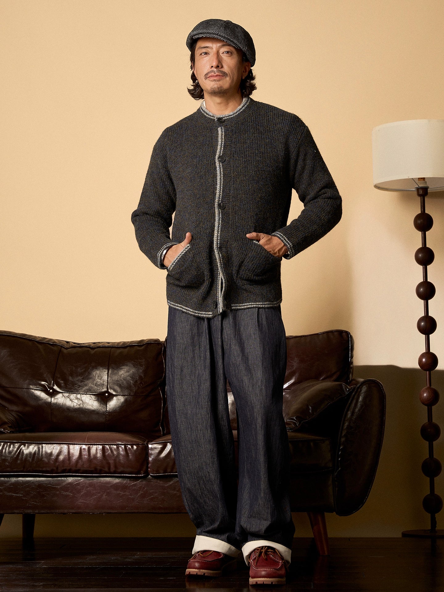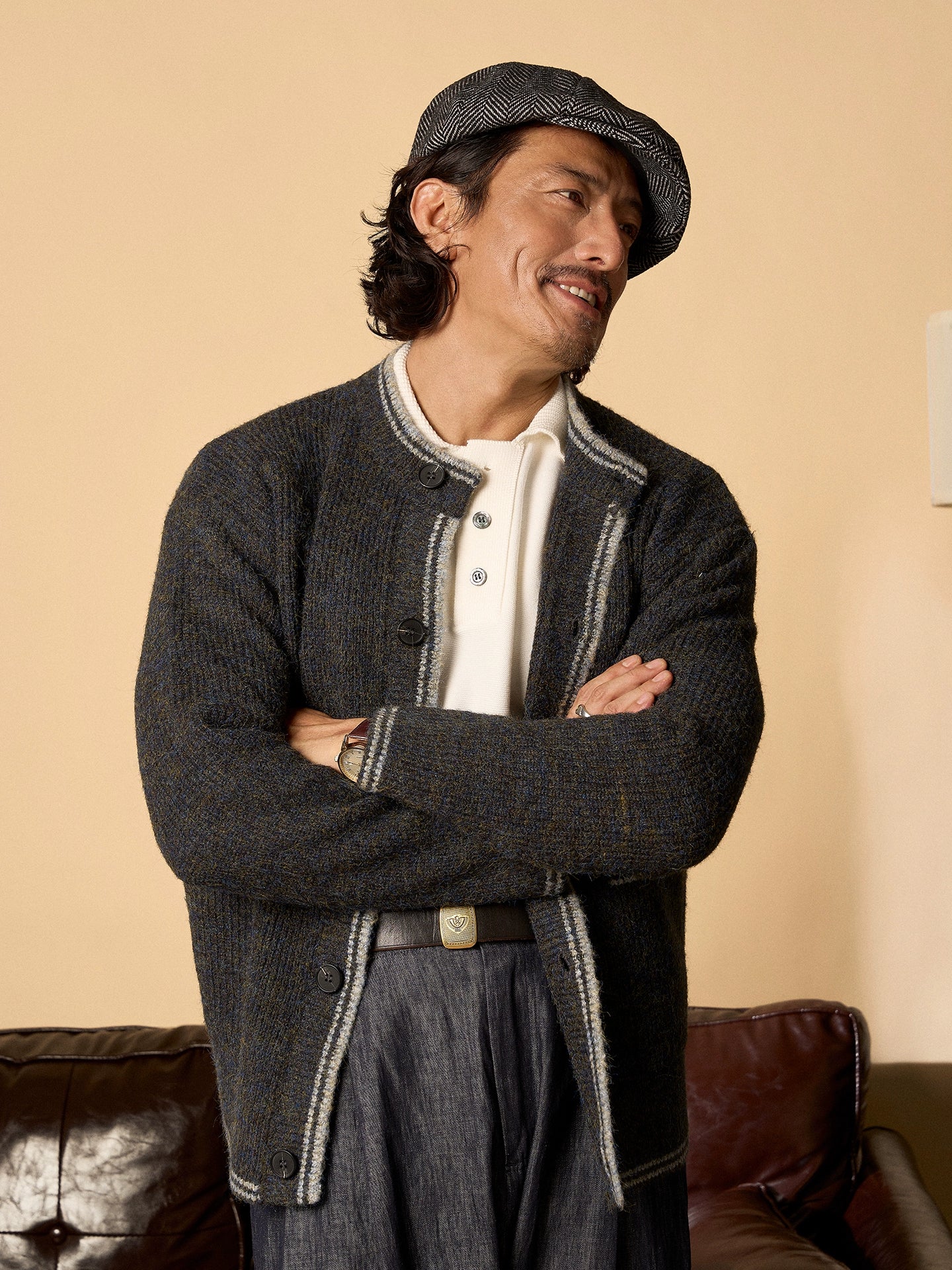 SOARIN英伦风复古圆领针织开衫男 撞色慵懒风休闲宽松毛衣外套冬