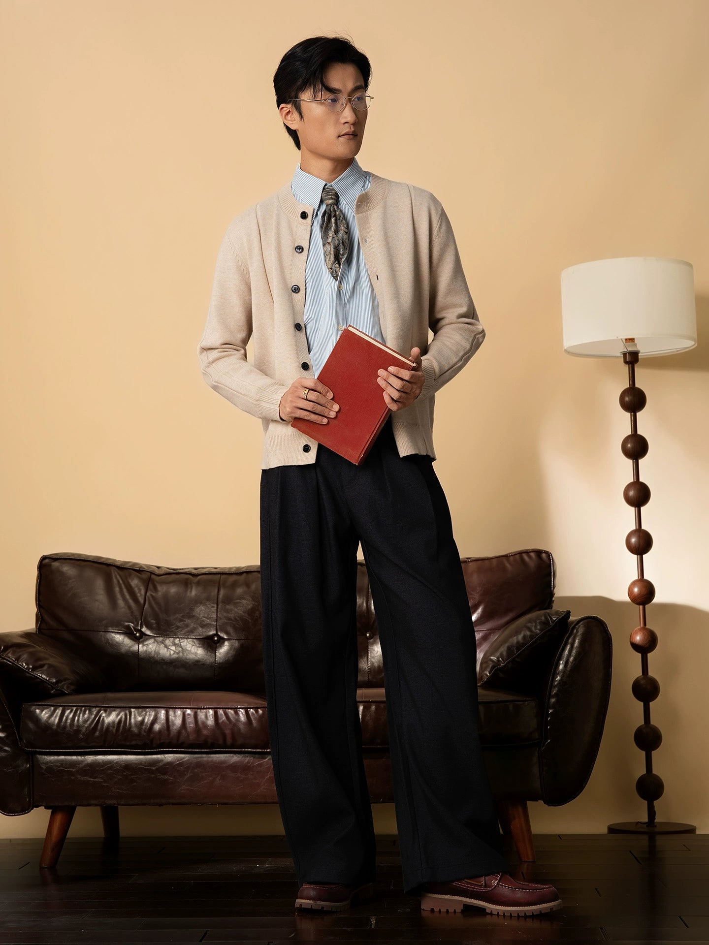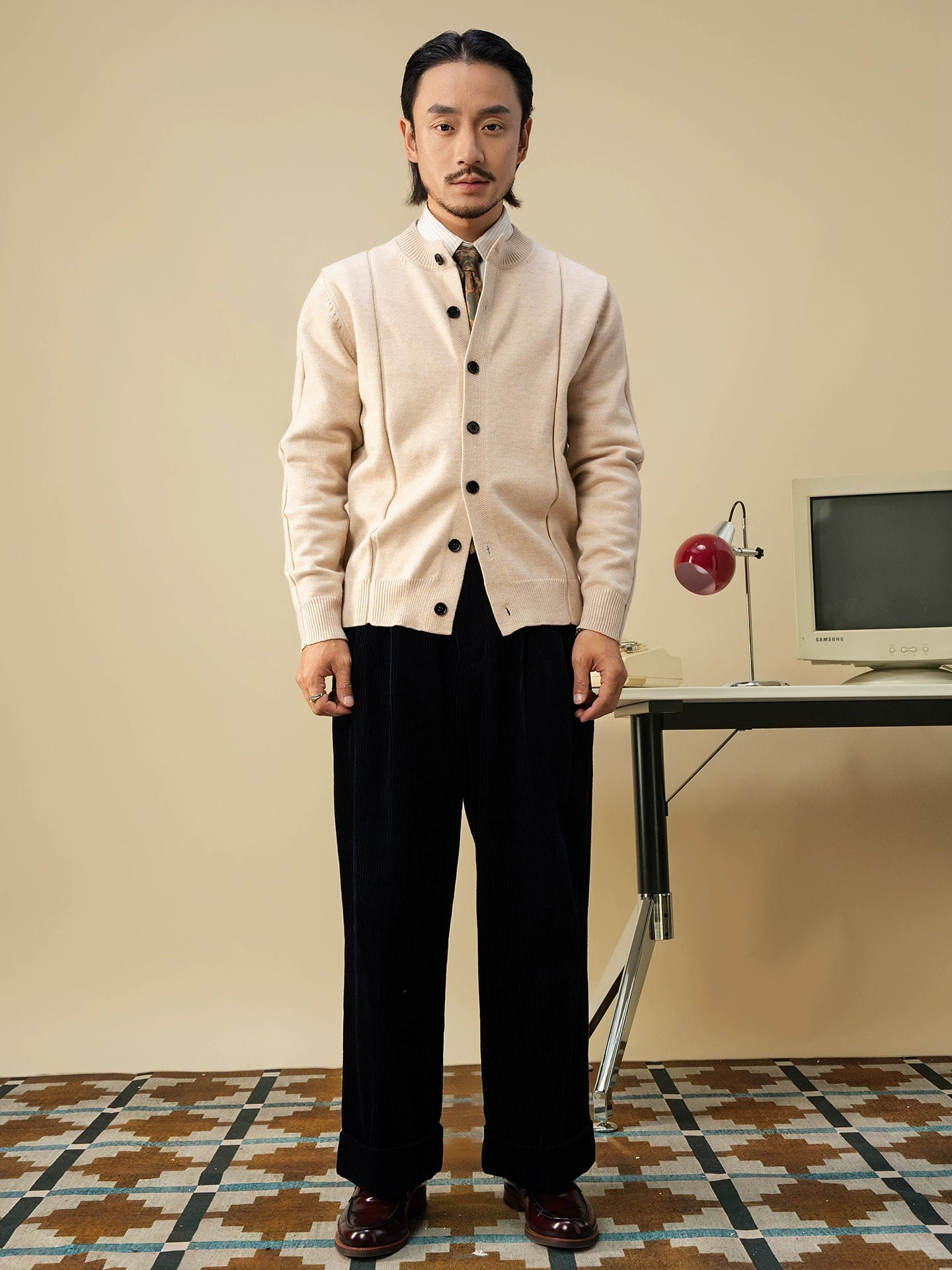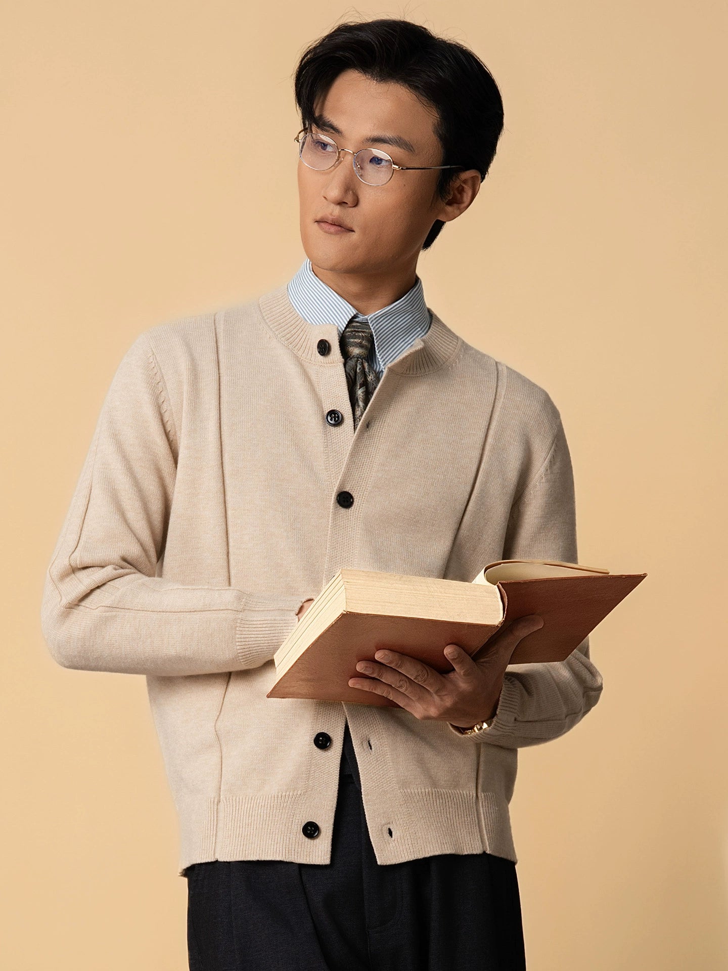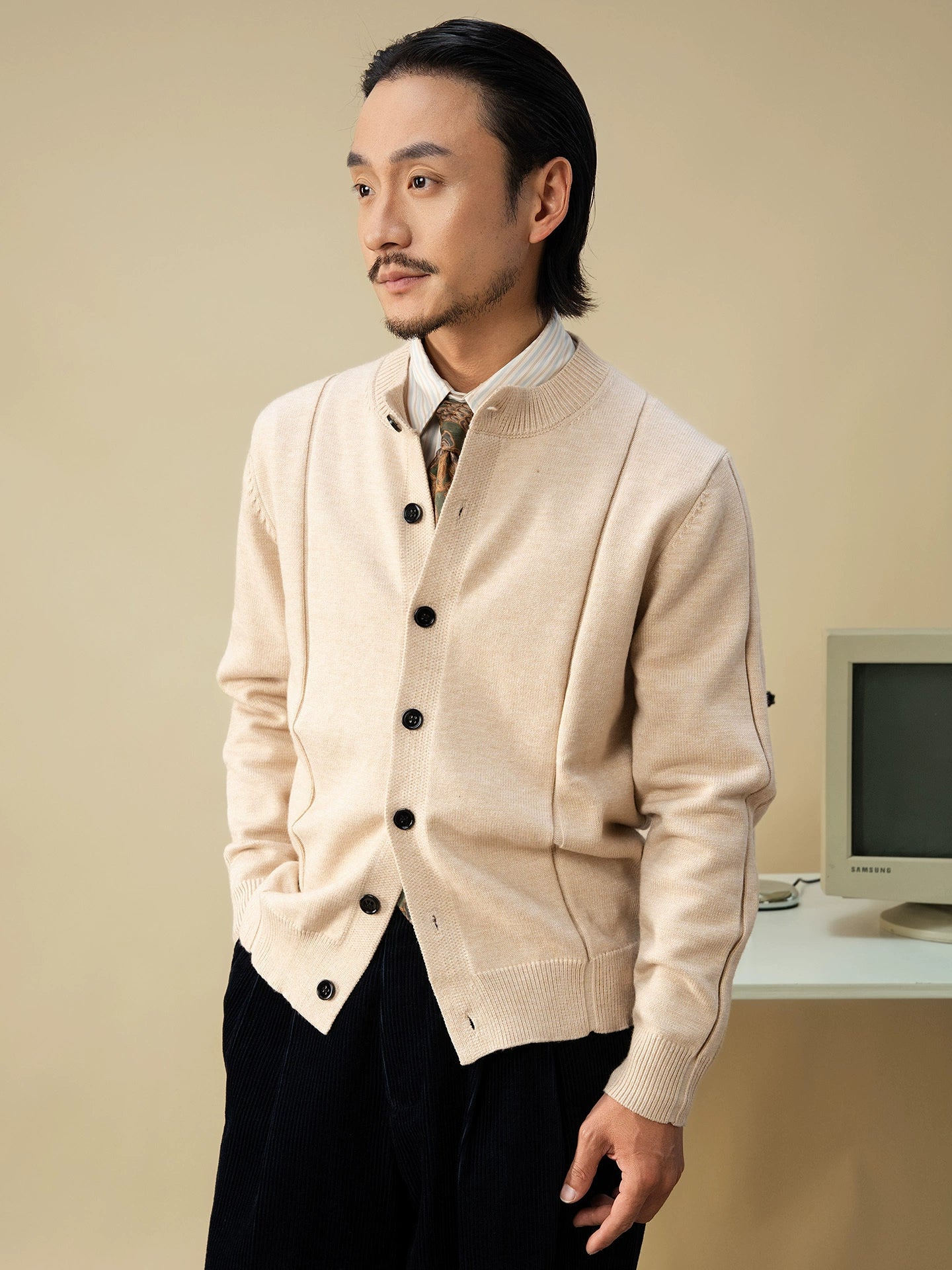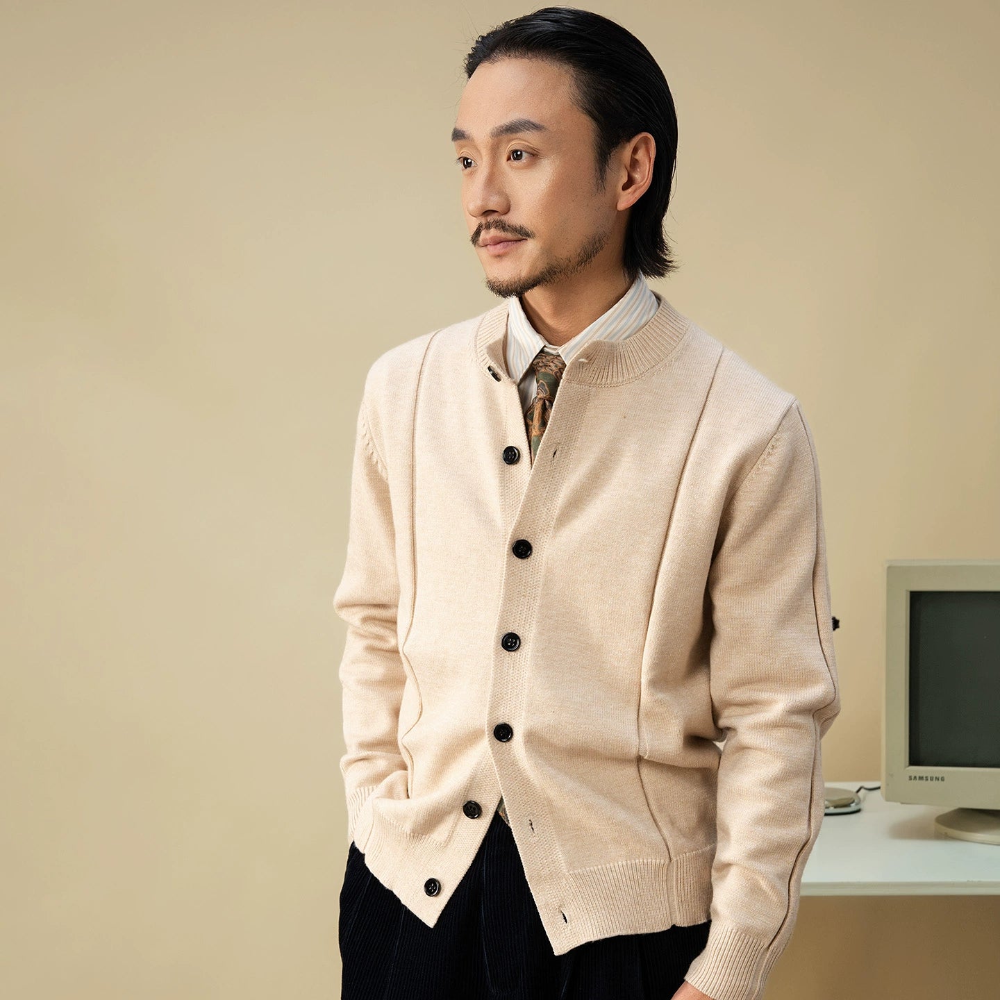 SOARIN英伦风复古圆领针织开衫男 绅士商务休闲修身通勤毛衣外套