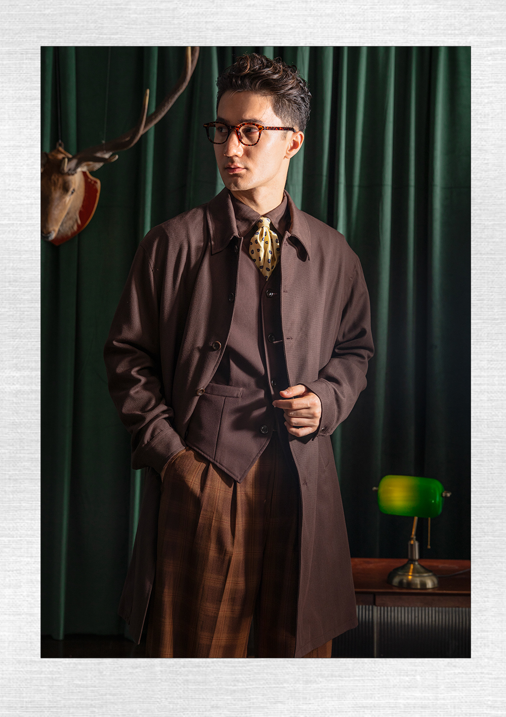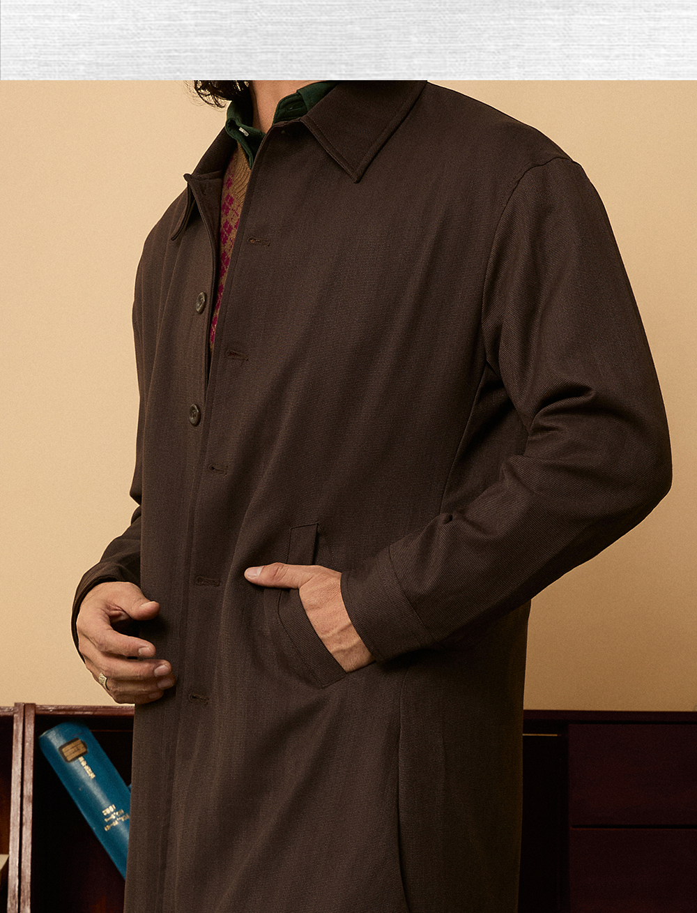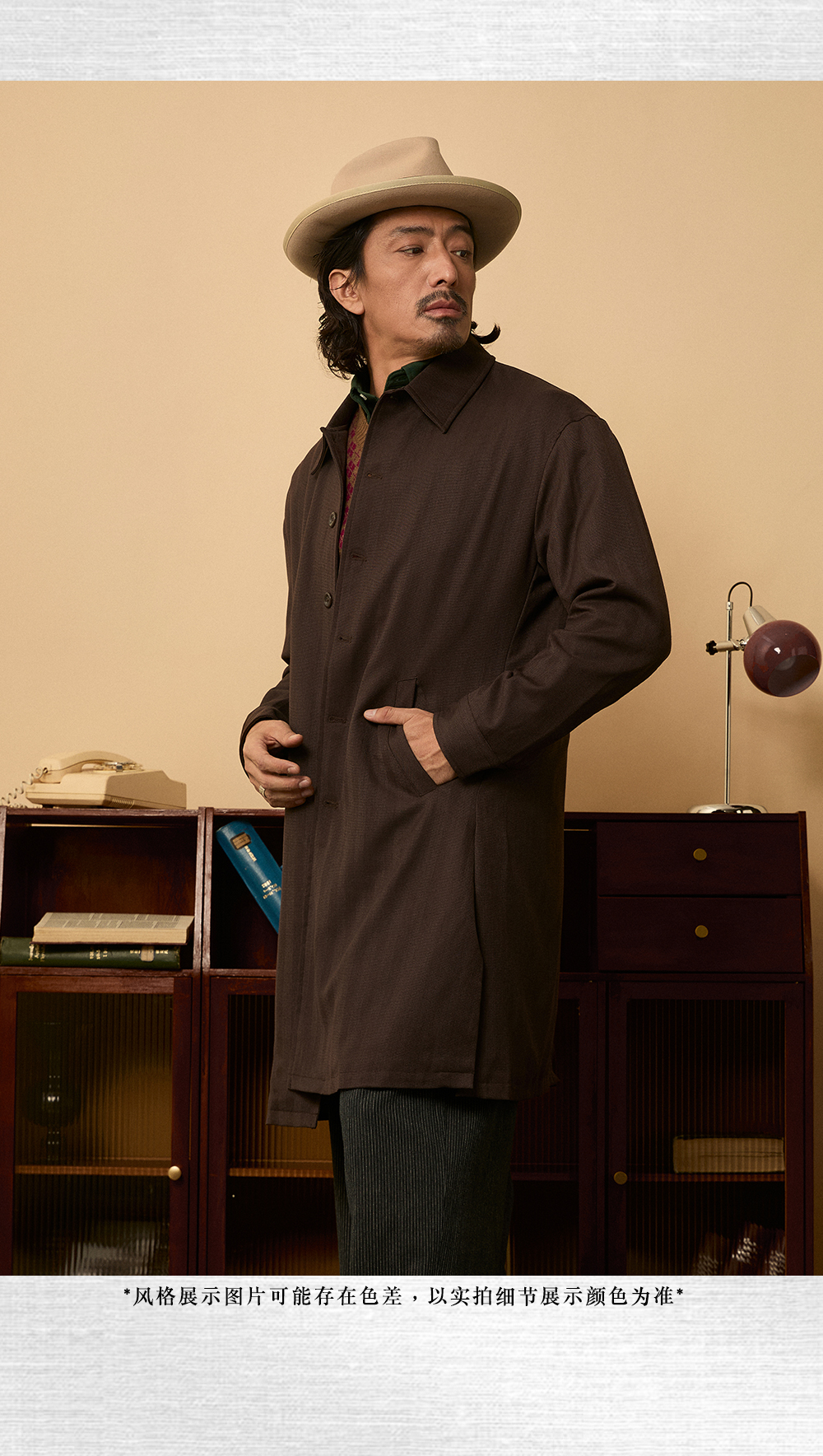 SOARIN英伦风复古巴尔马肯大衣男 秋季商务休闲廓形中长款大衣