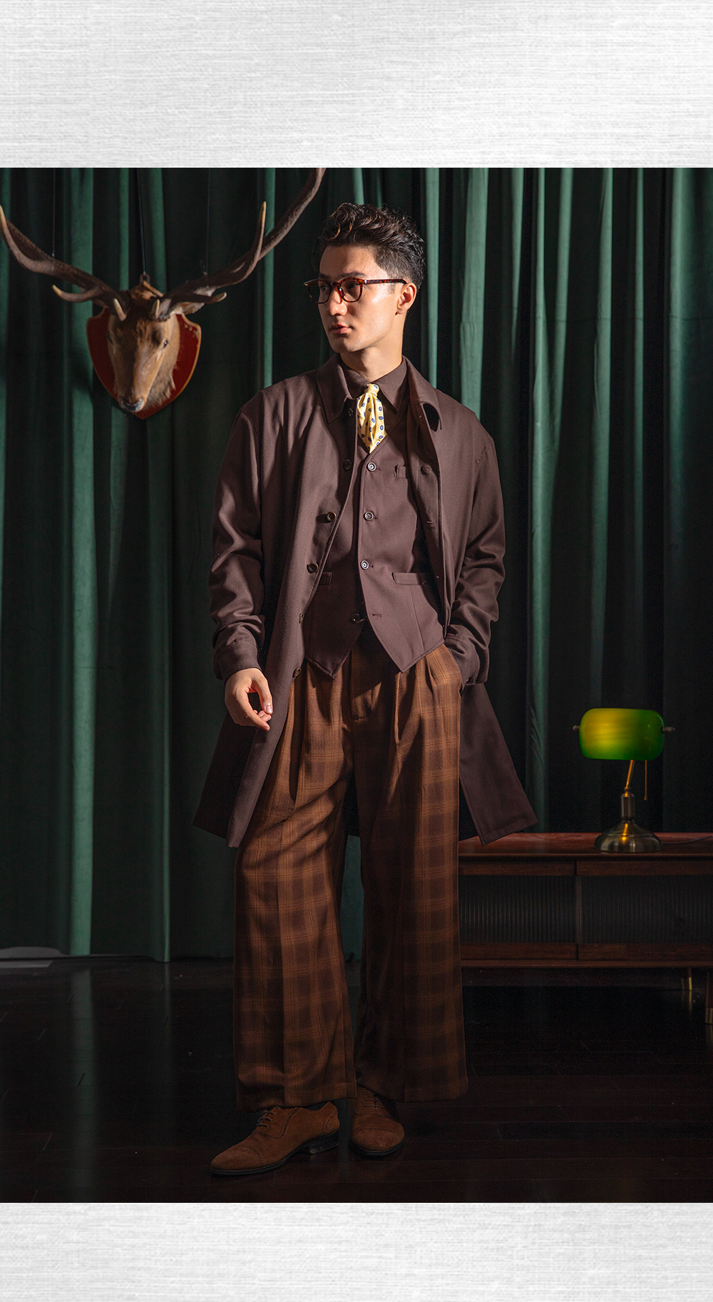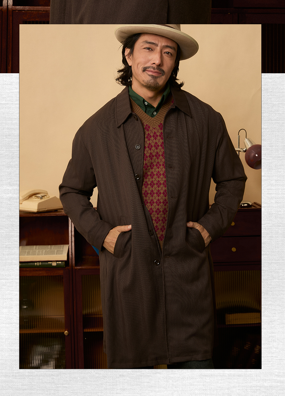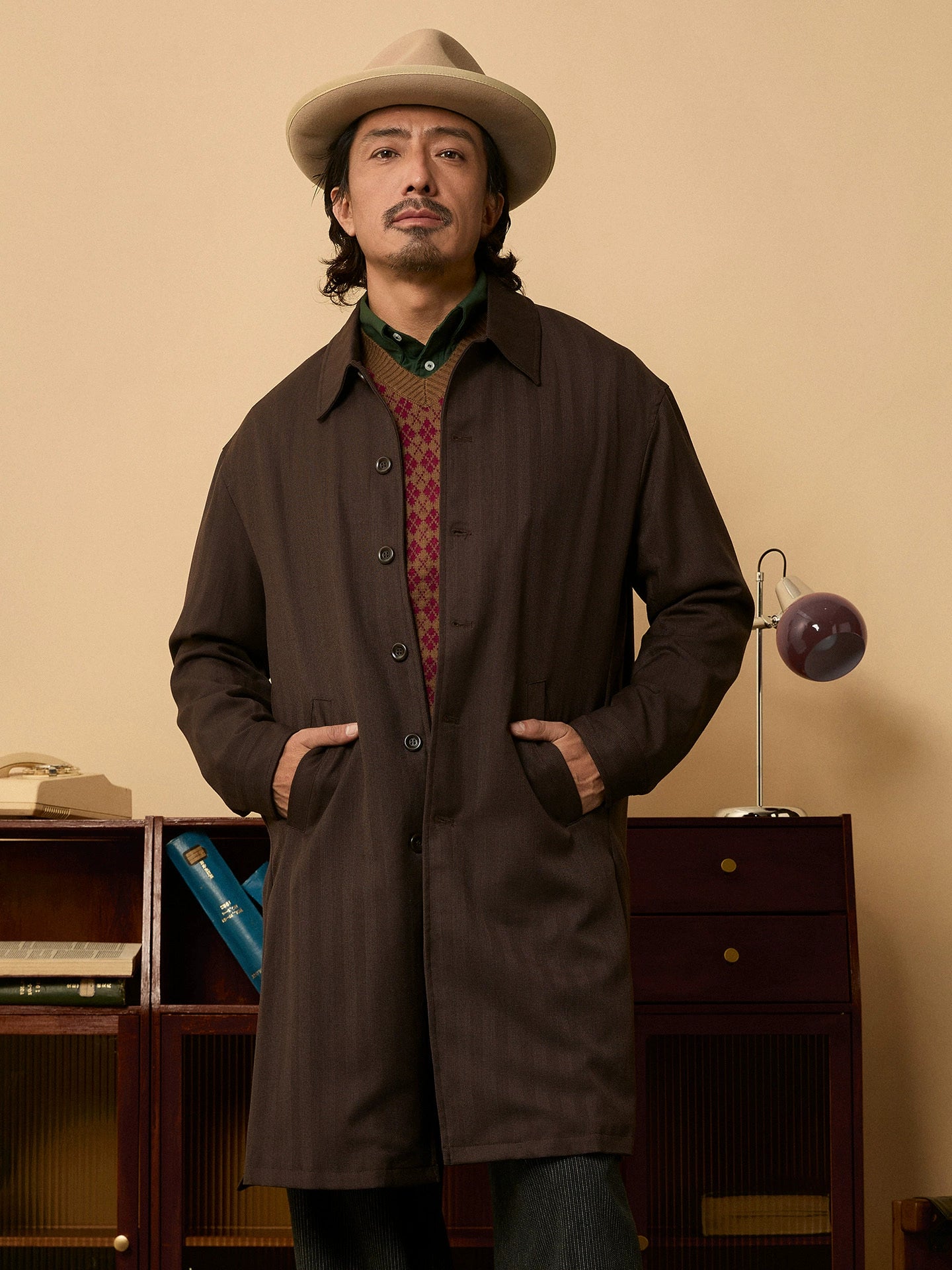 SOARIN英伦风复古巴尔马肯大衣男 秋季商务休闲廓形中长款大衣