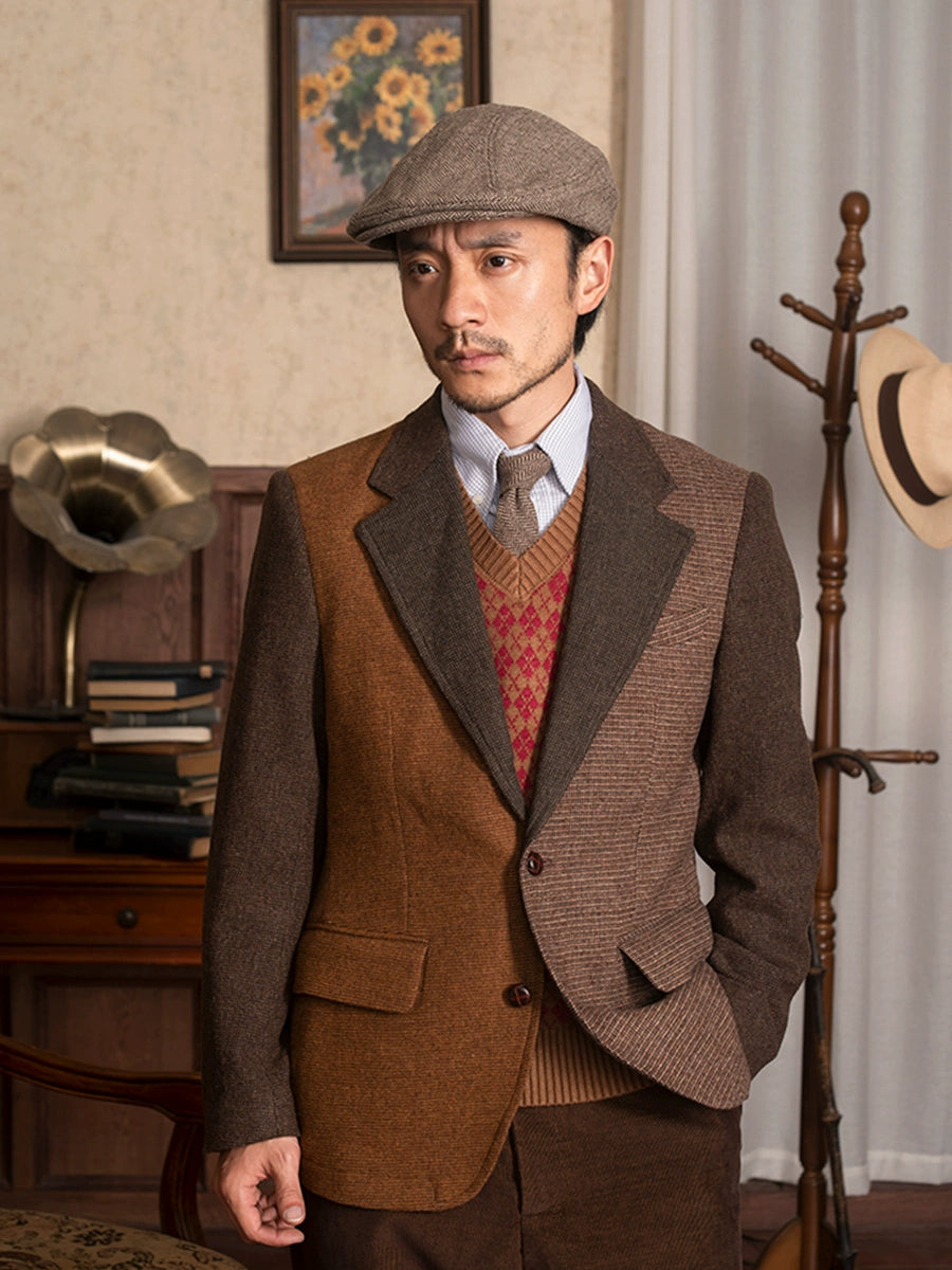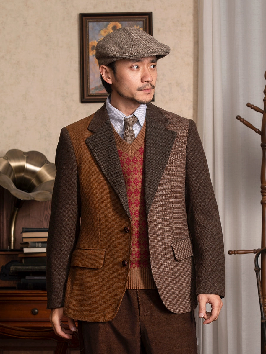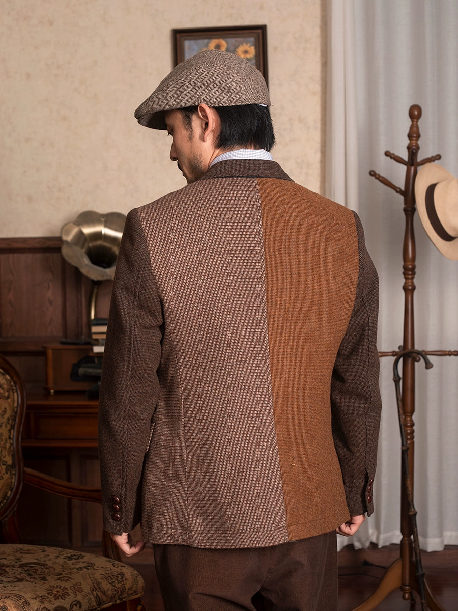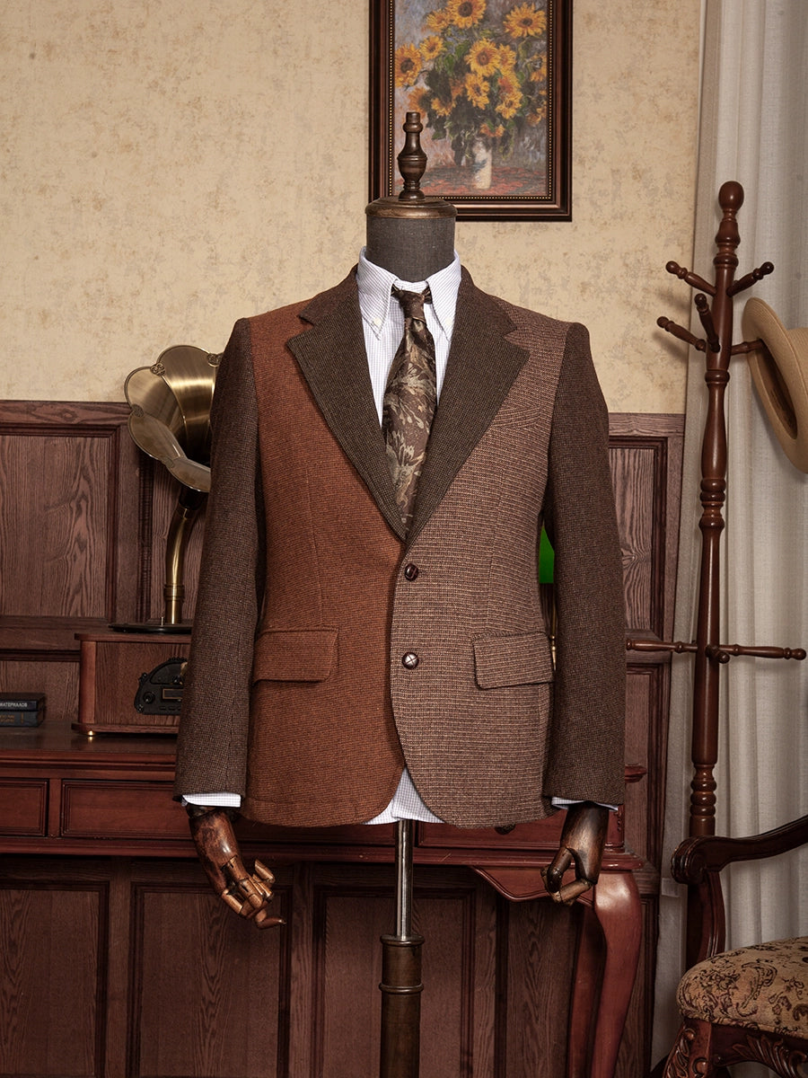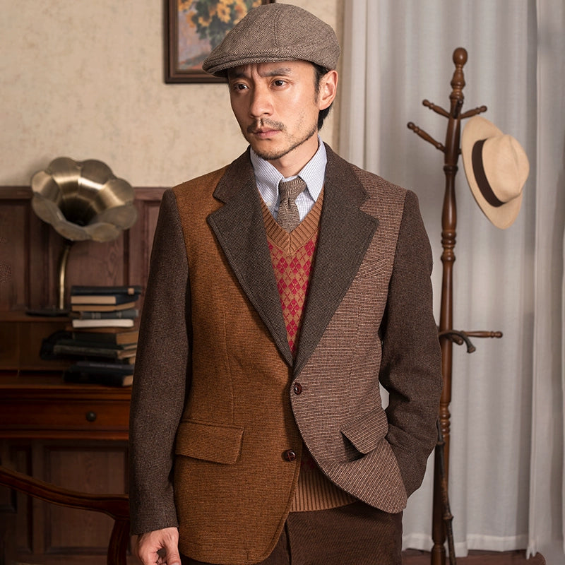 SOARIN英伦风复古拼接西装外套男 冬季商务休闲修身羊毛呢单西服