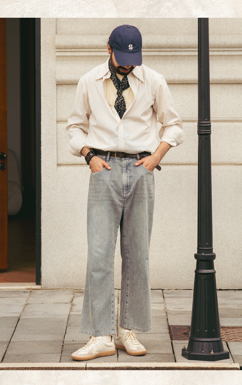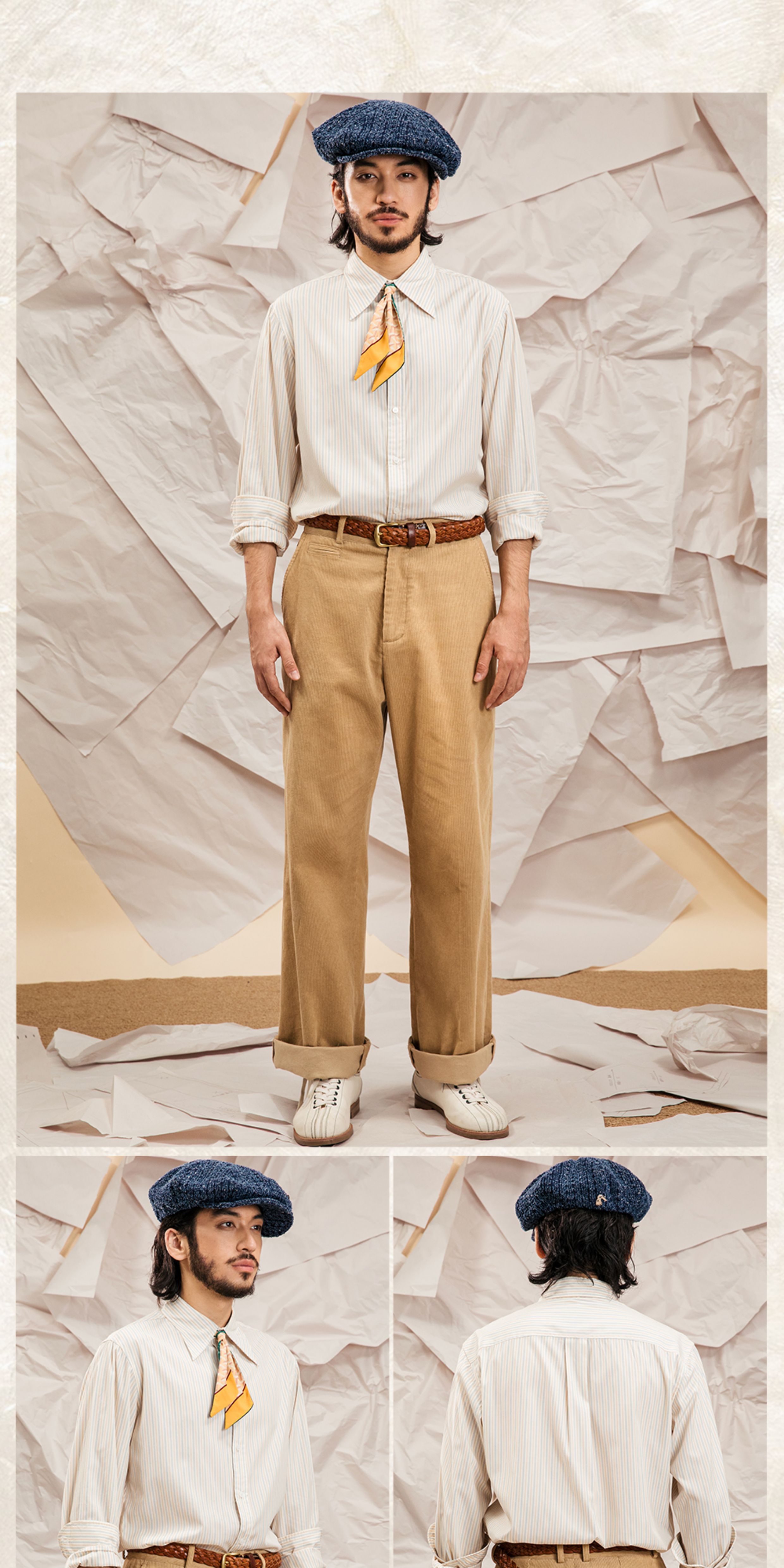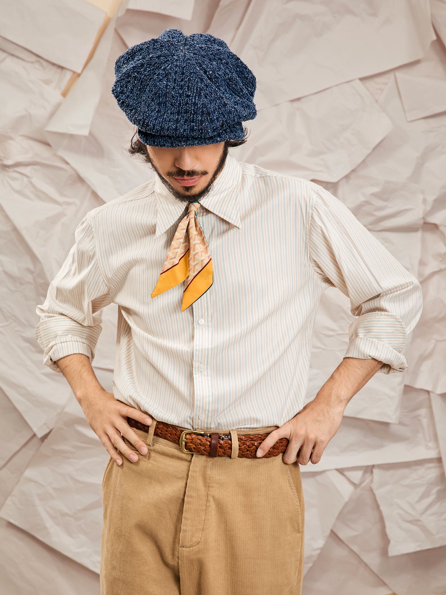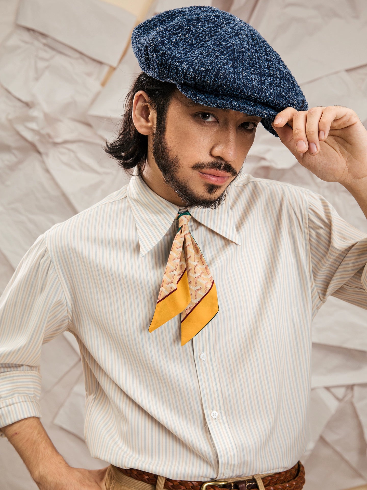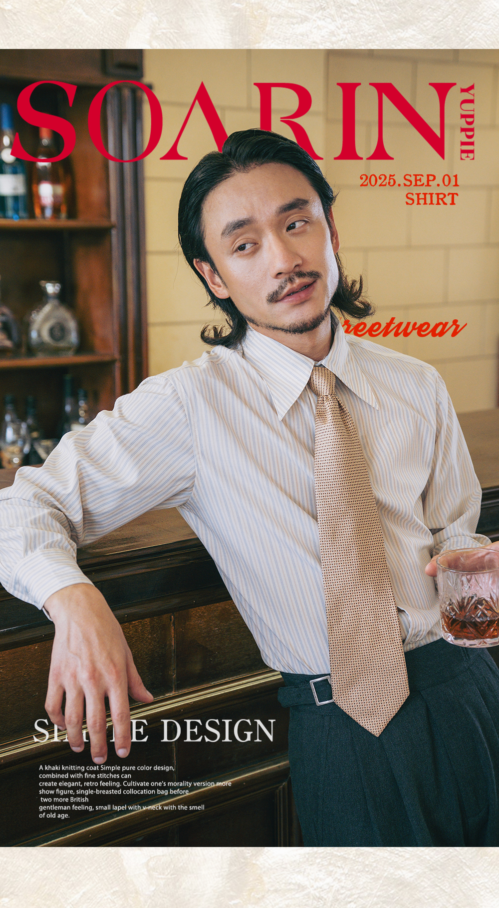 SOARIN英伦风复古条纹西装衬衫男 纯棉简约百搭商务通勤长袖衬衣