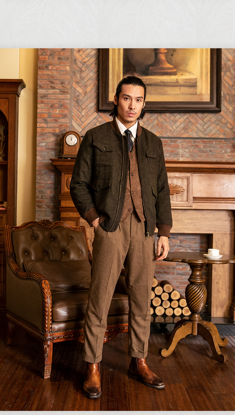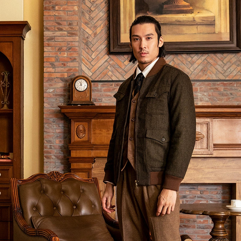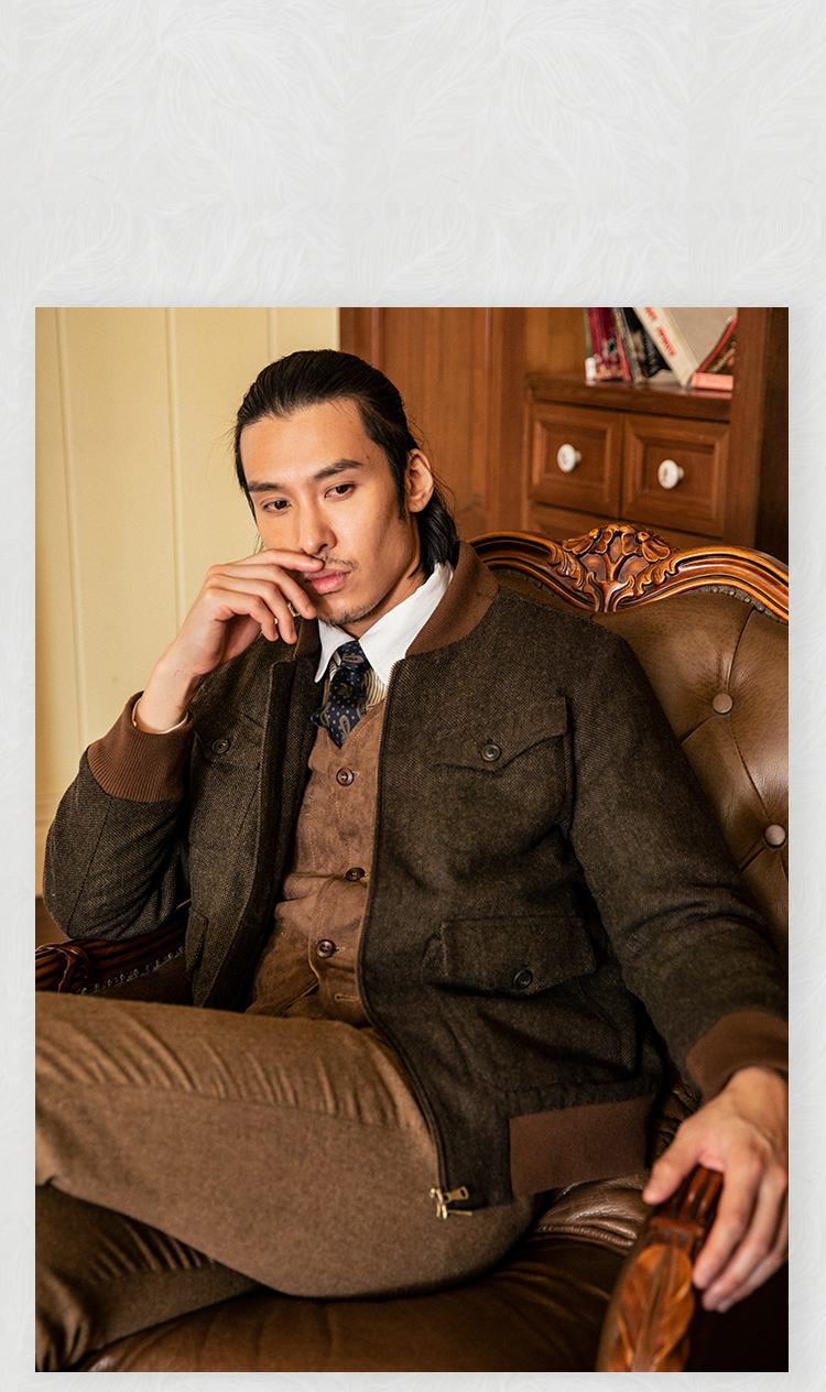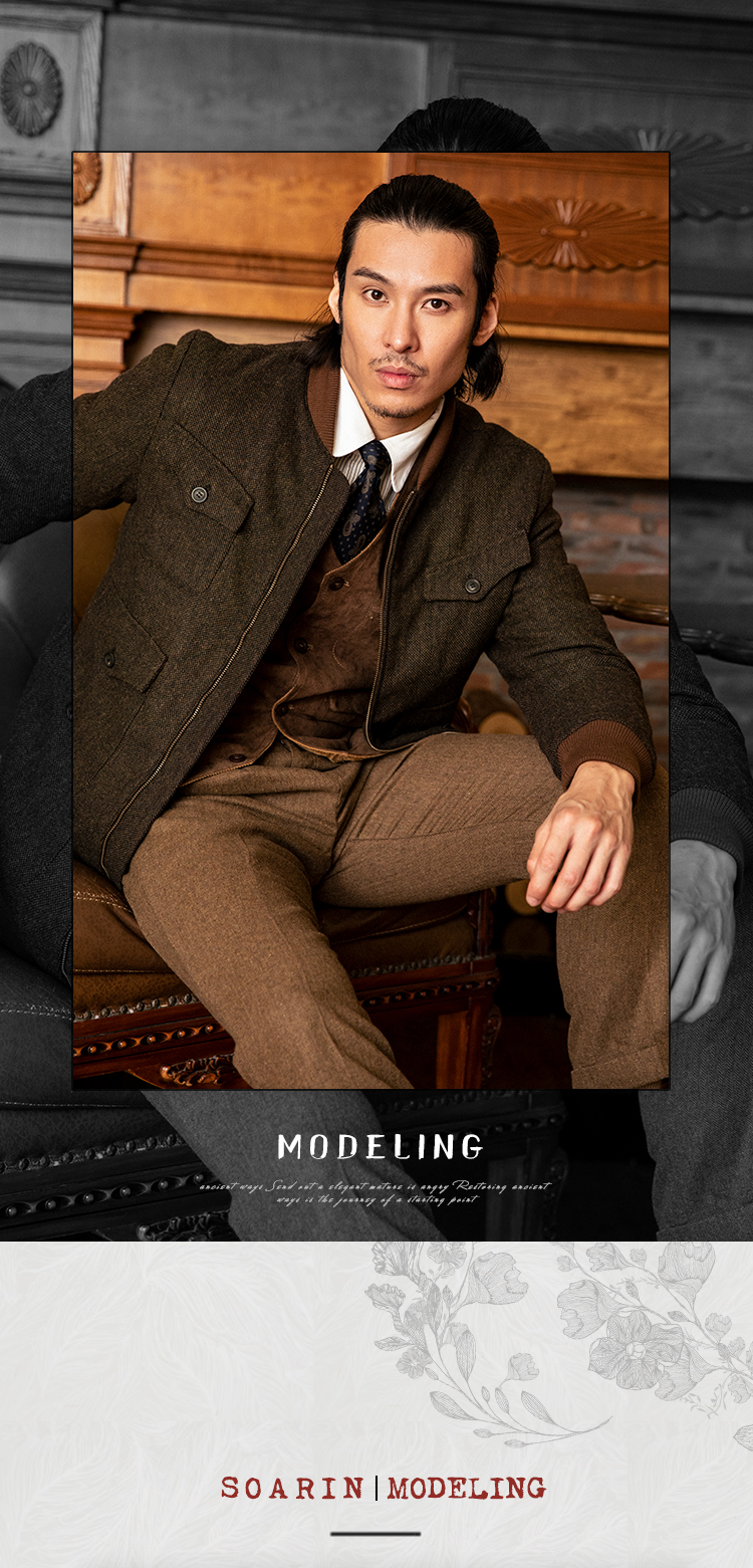 SOARIN英伦风复古毛呢夹克外套男 Vintage古着感粗花呢休闲棒球服