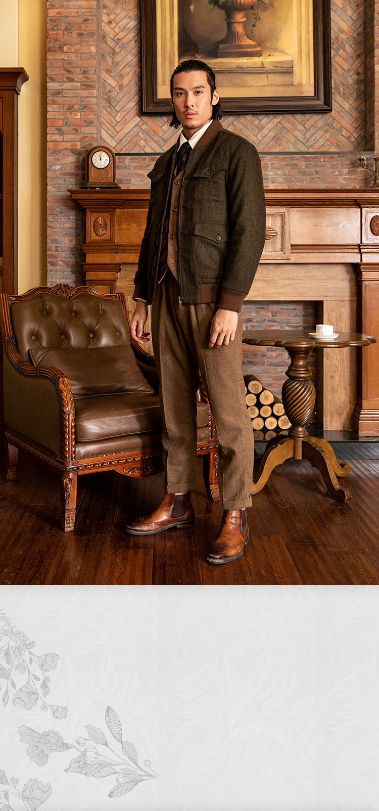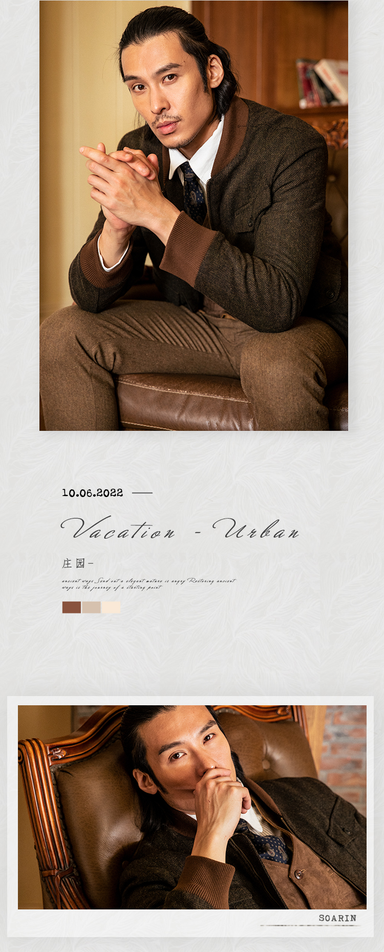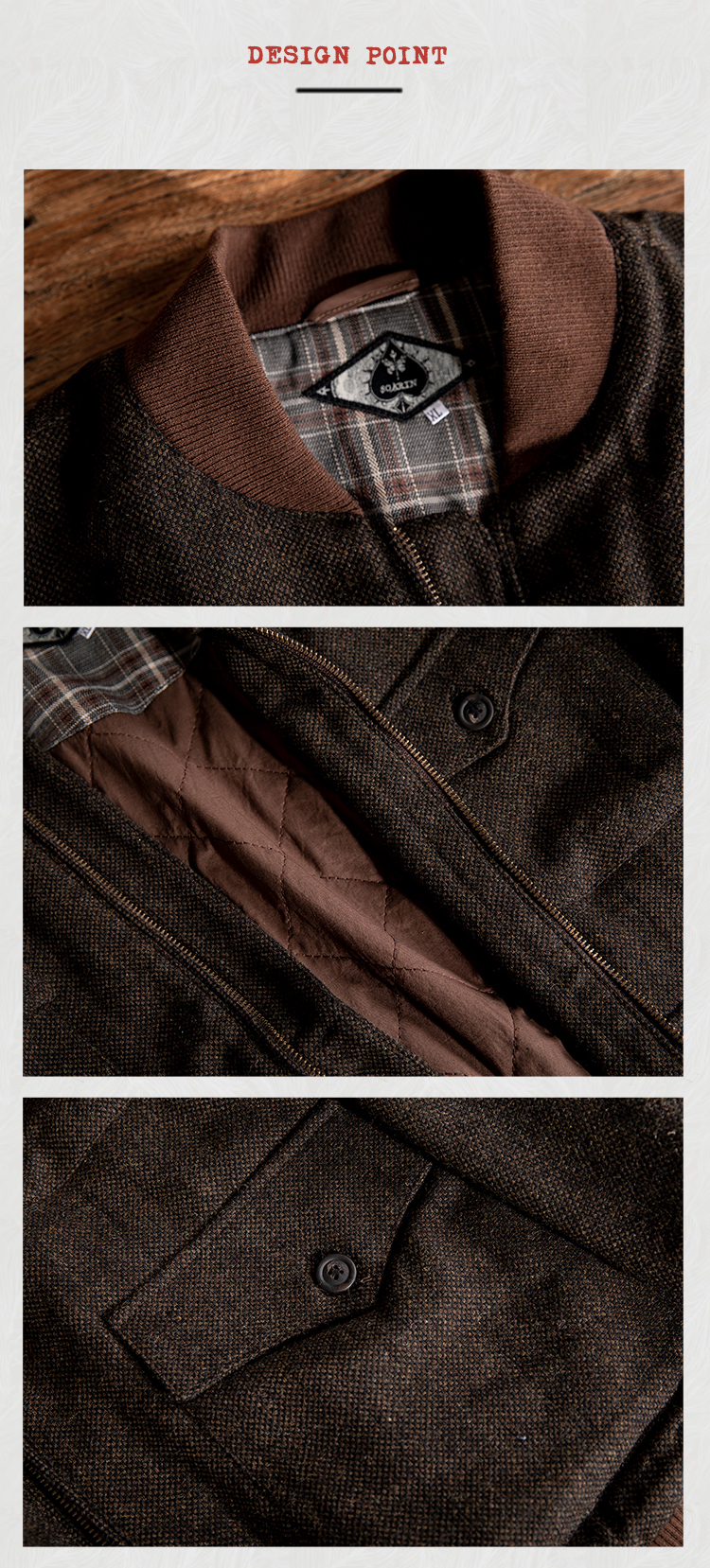 SOARIN英伦风复古毛呢夹克外套男 Vintage古着感粗花呢休闲棒球服