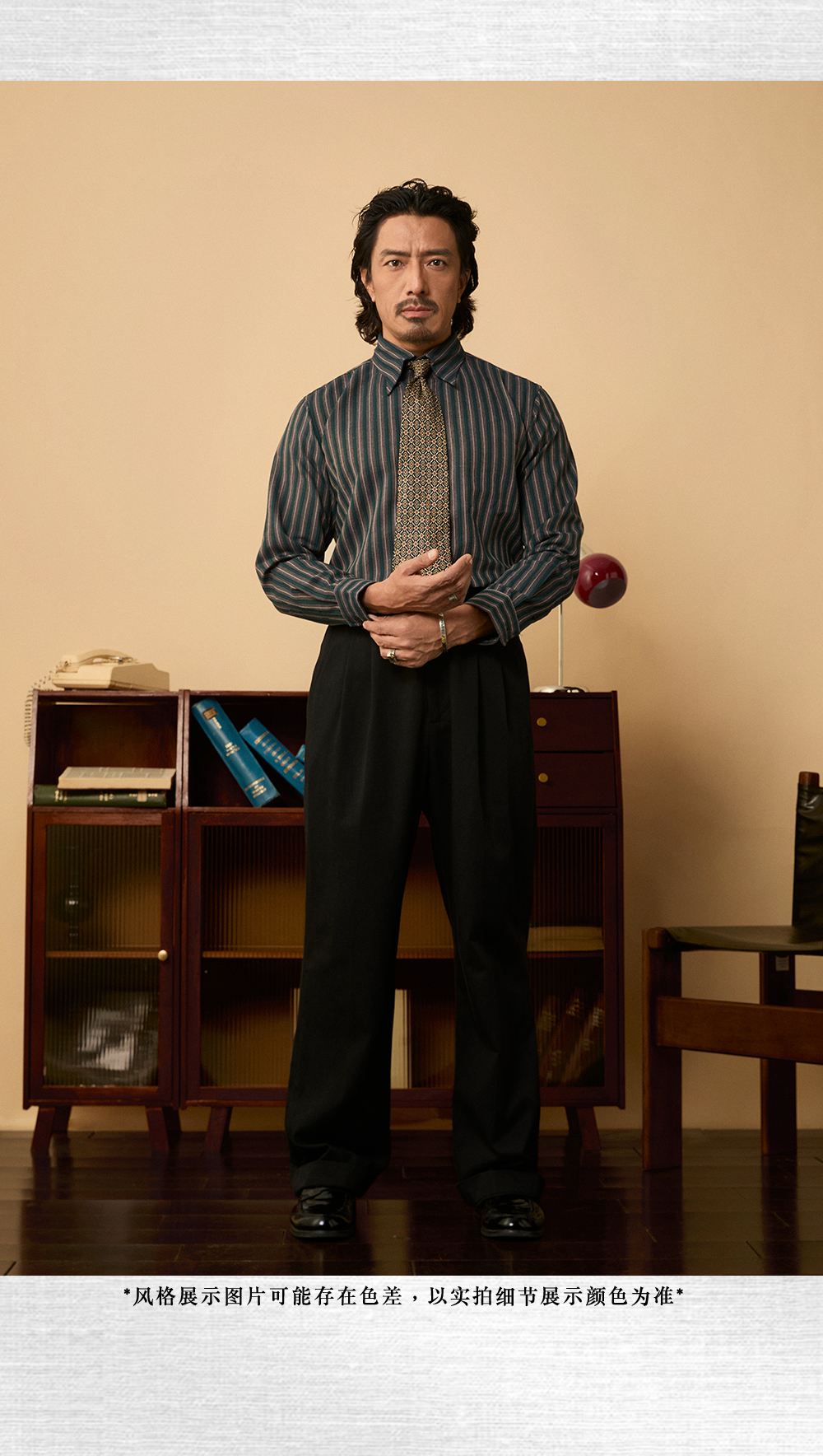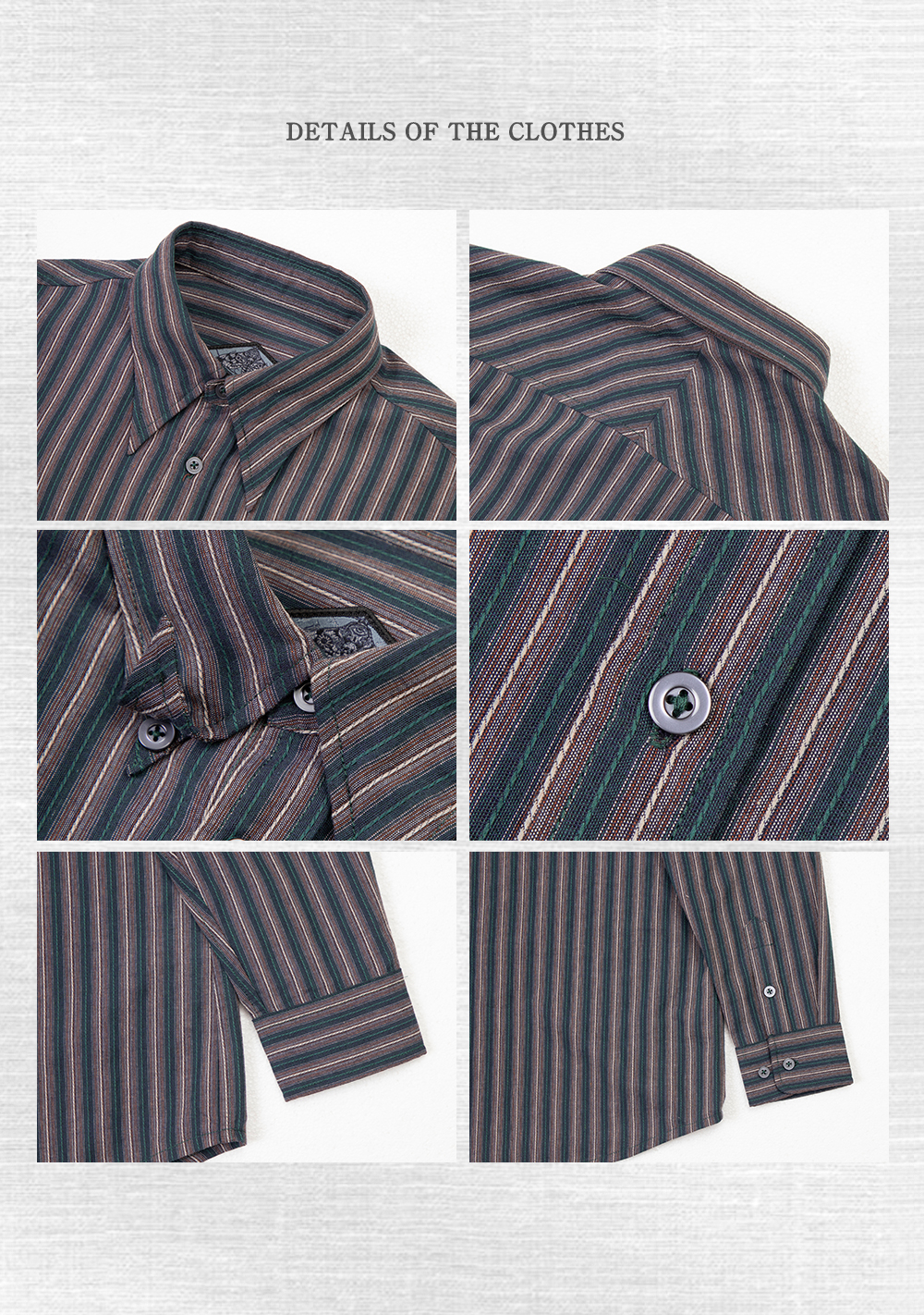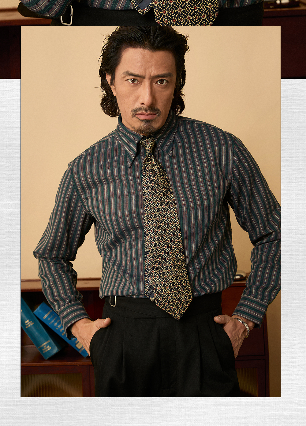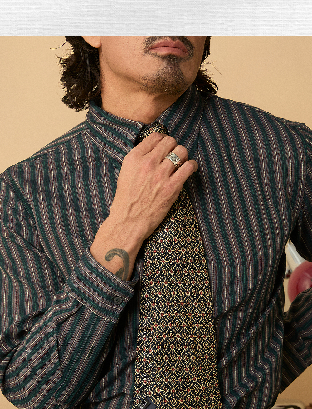 SOARIN英伦风复古粗条纹长袖衬衫男 尖领商务休闲修身西装衬衣
