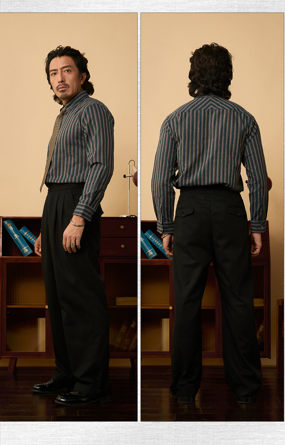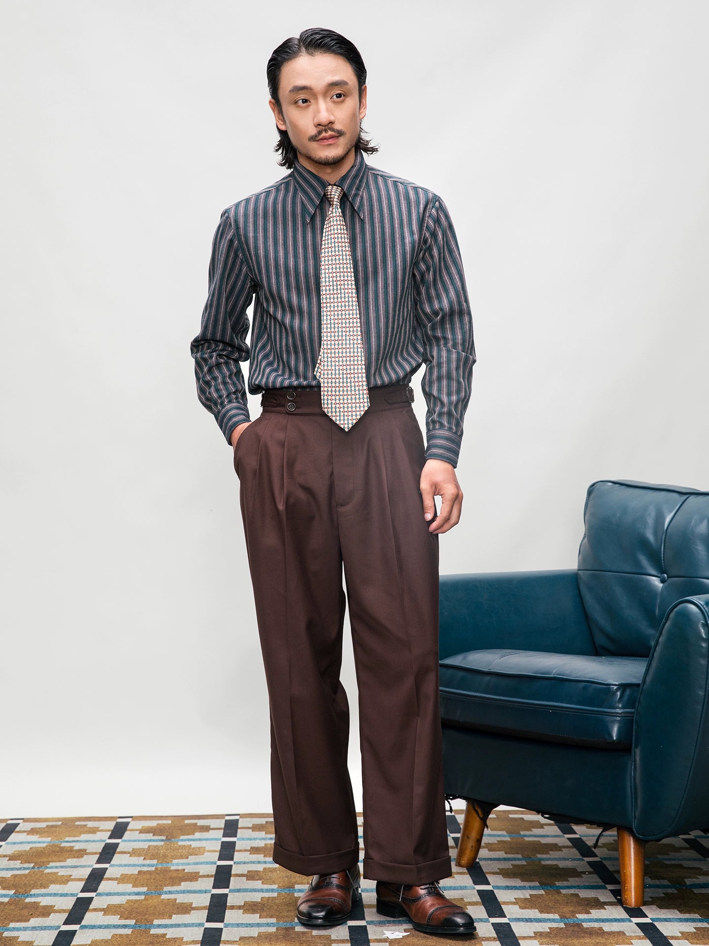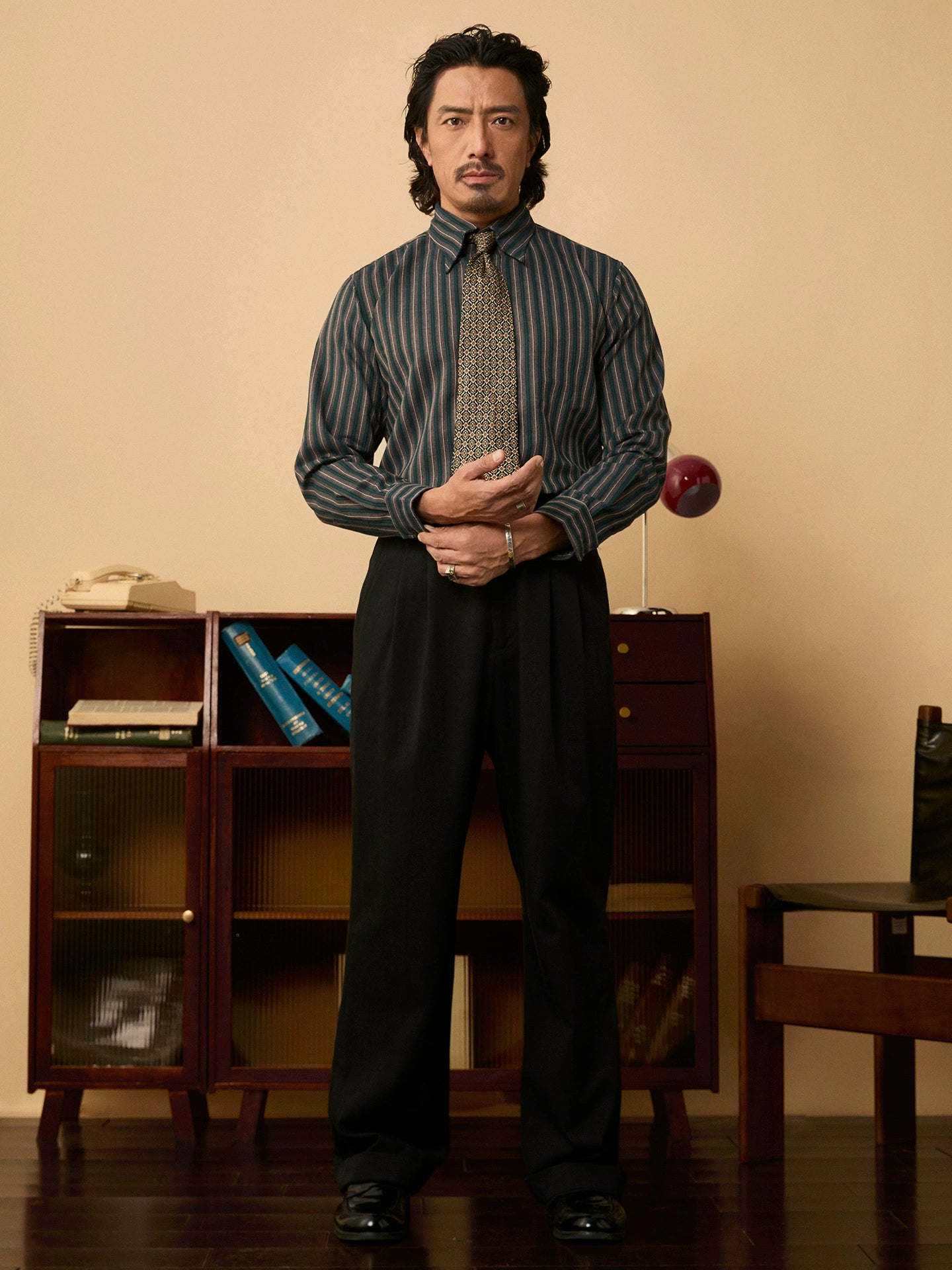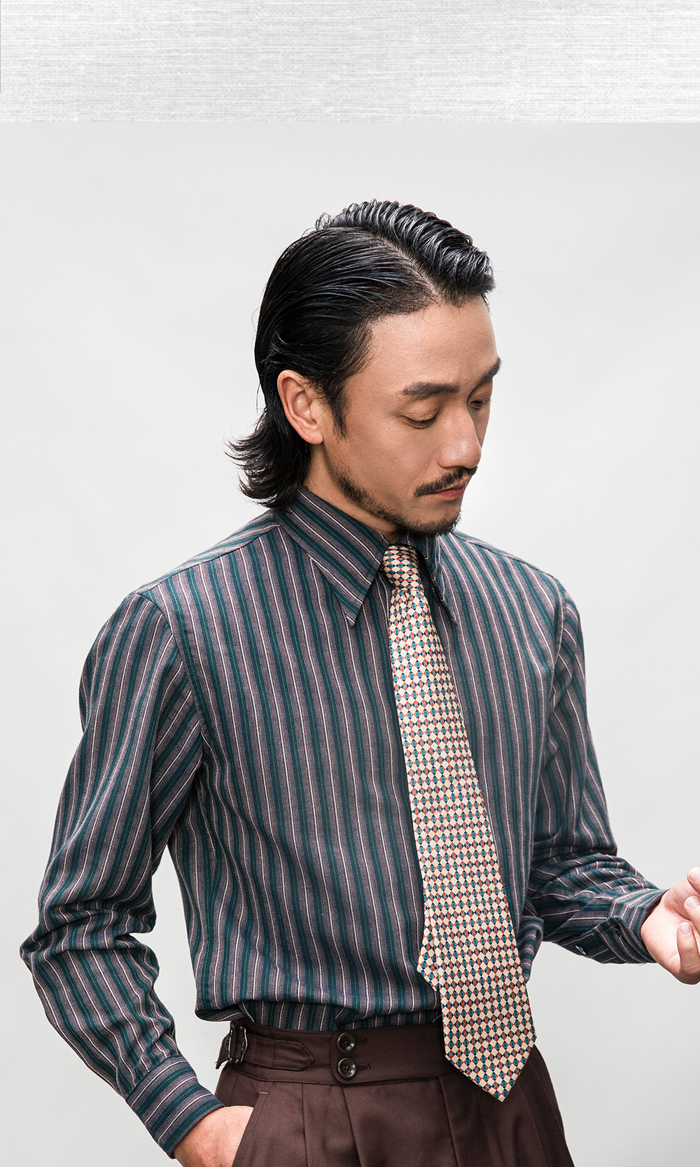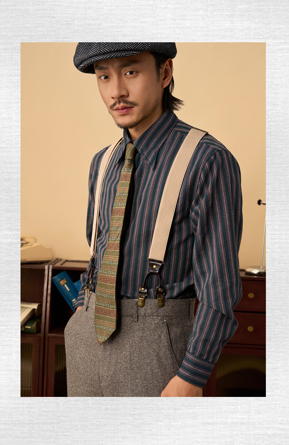 SOARIN英伦风复古粗条纹长袖衬衫男 尖领商务休闲修身西装衬衣