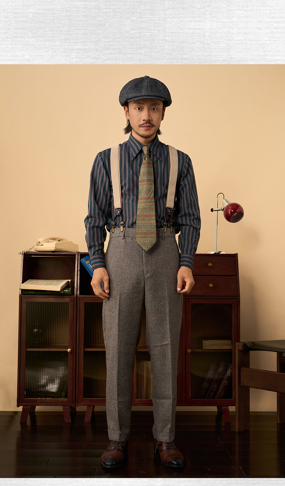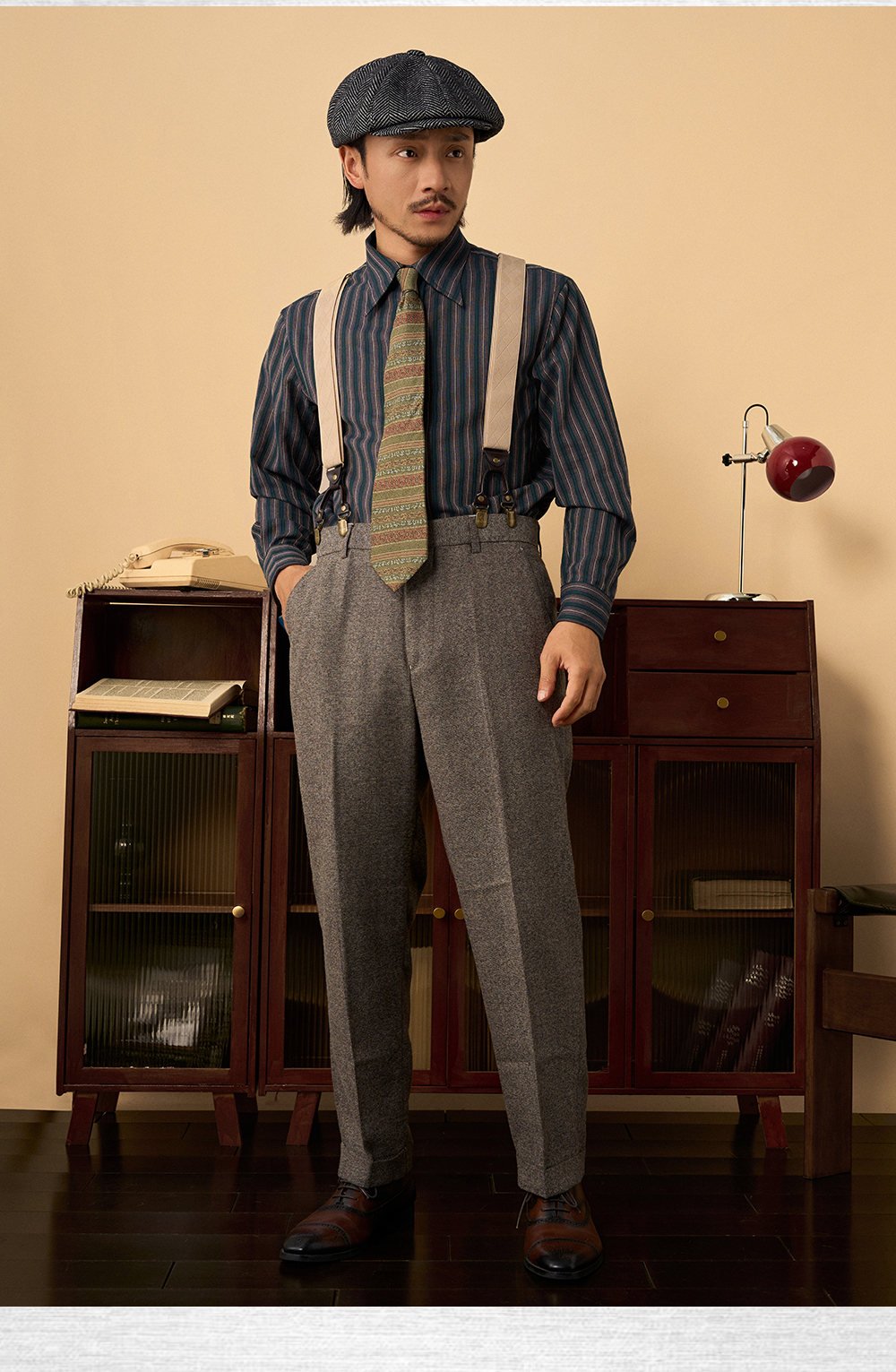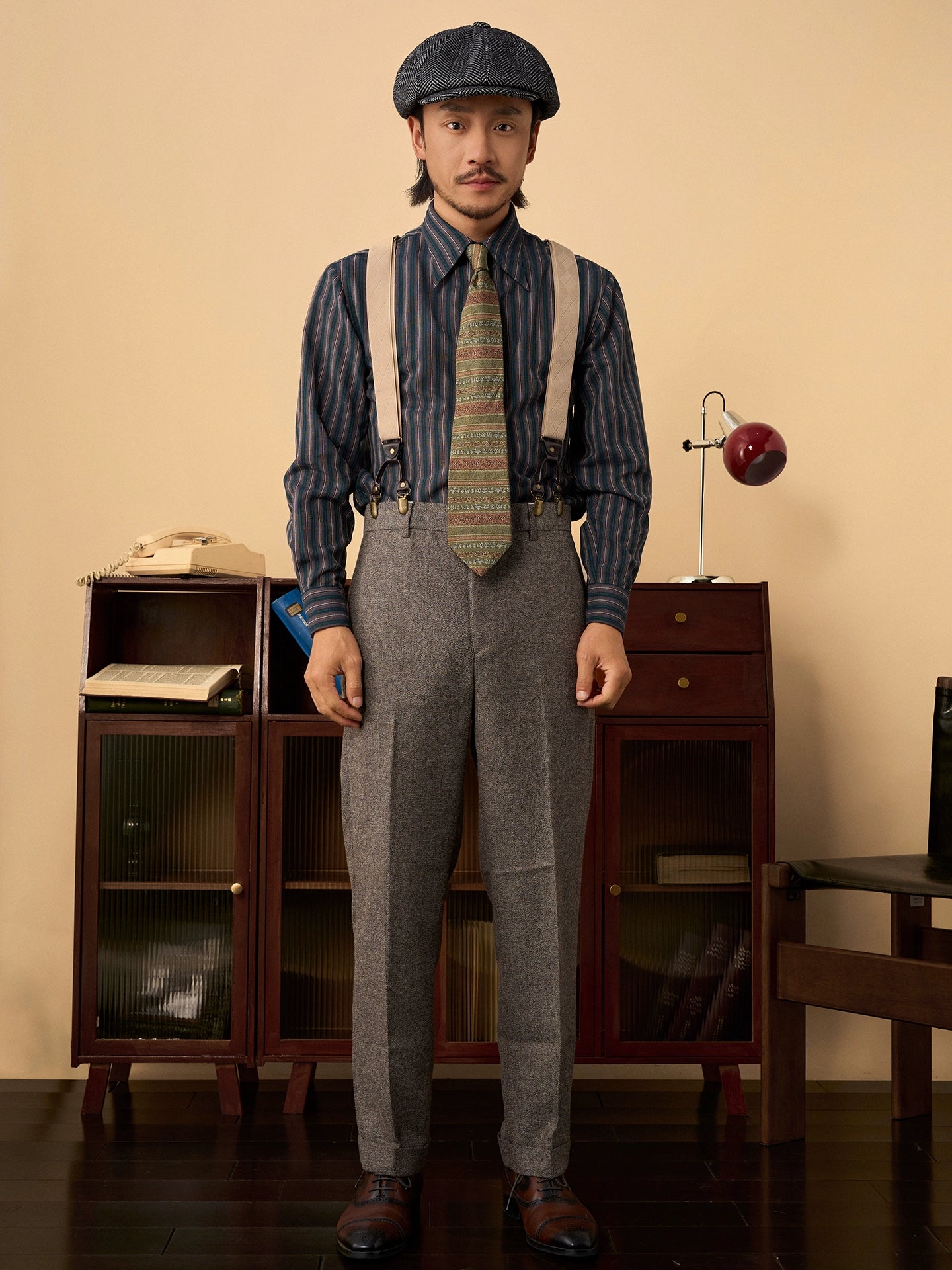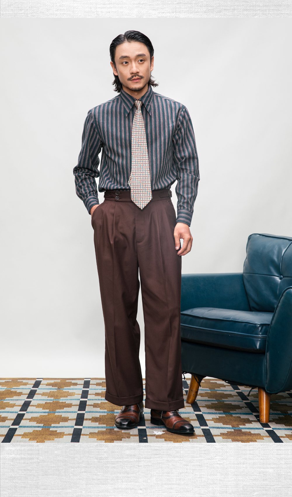 SOARIN英伦风复古粗条纹长袖衬衫男 尖领商务休闲修身西装衬衣