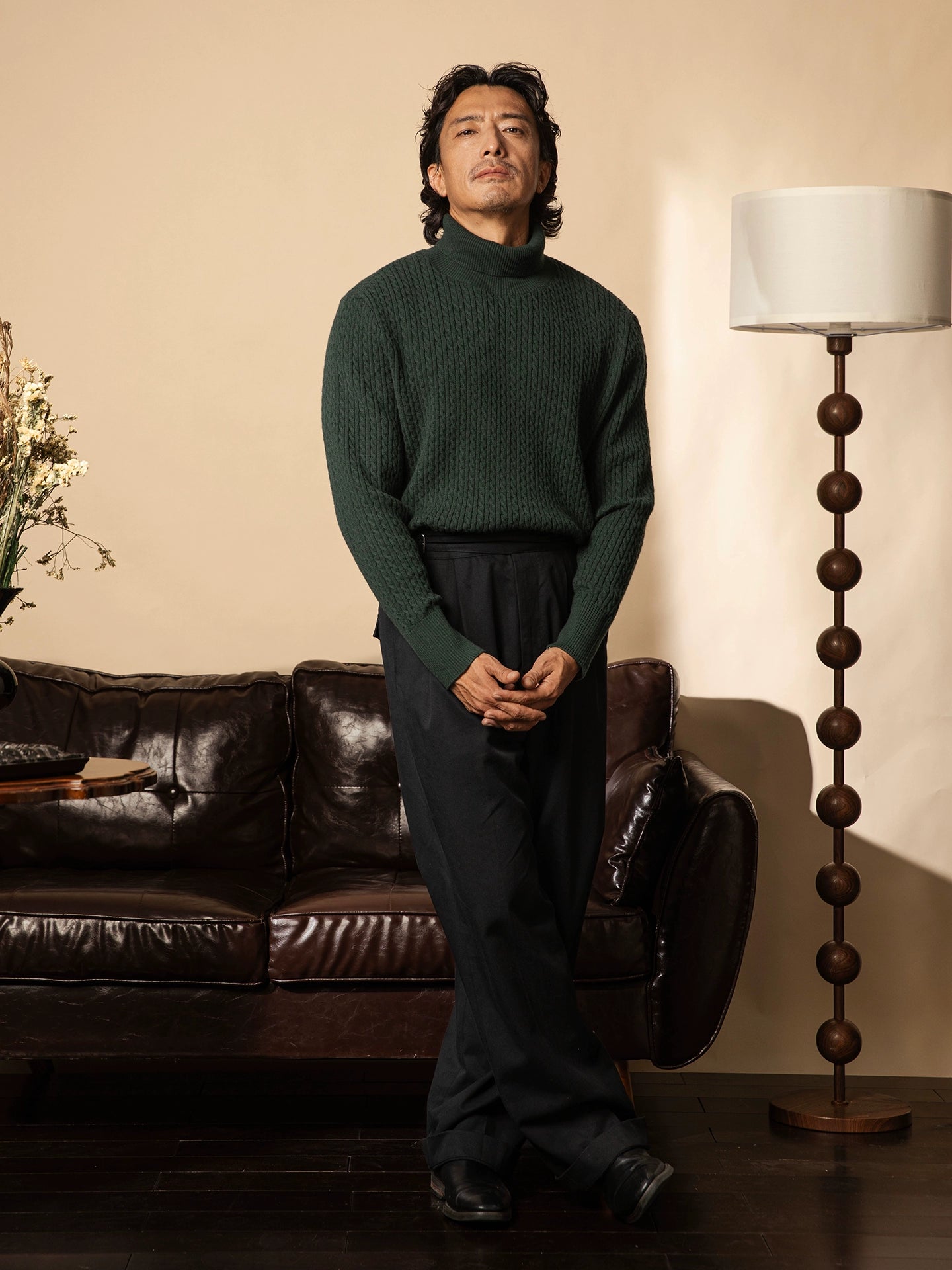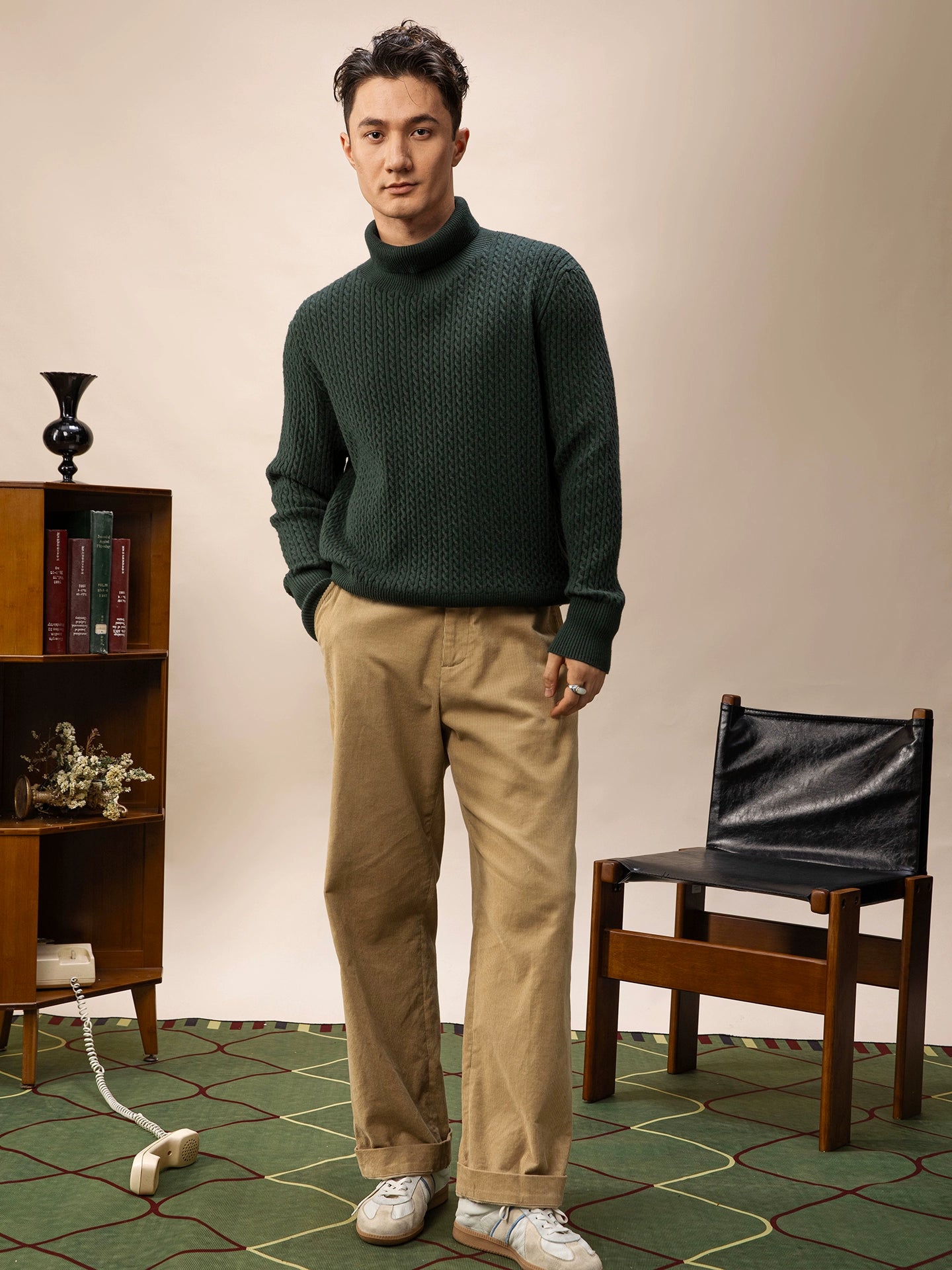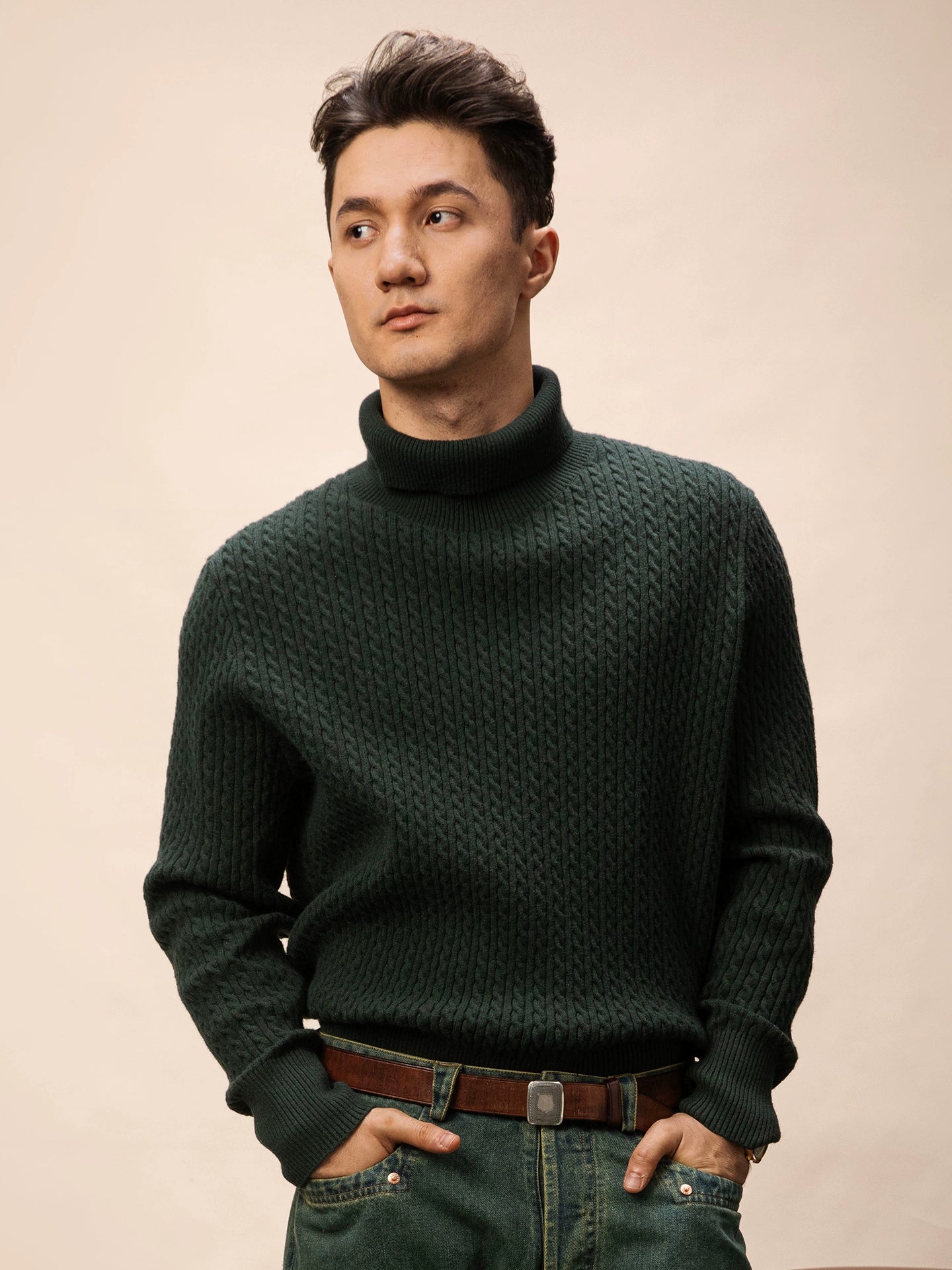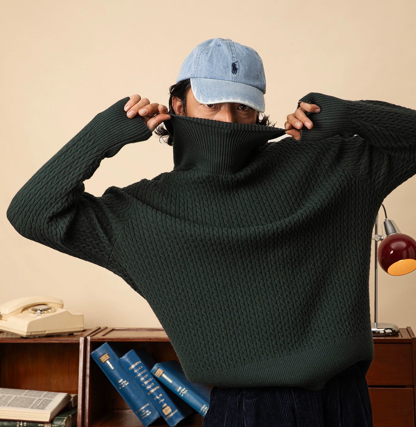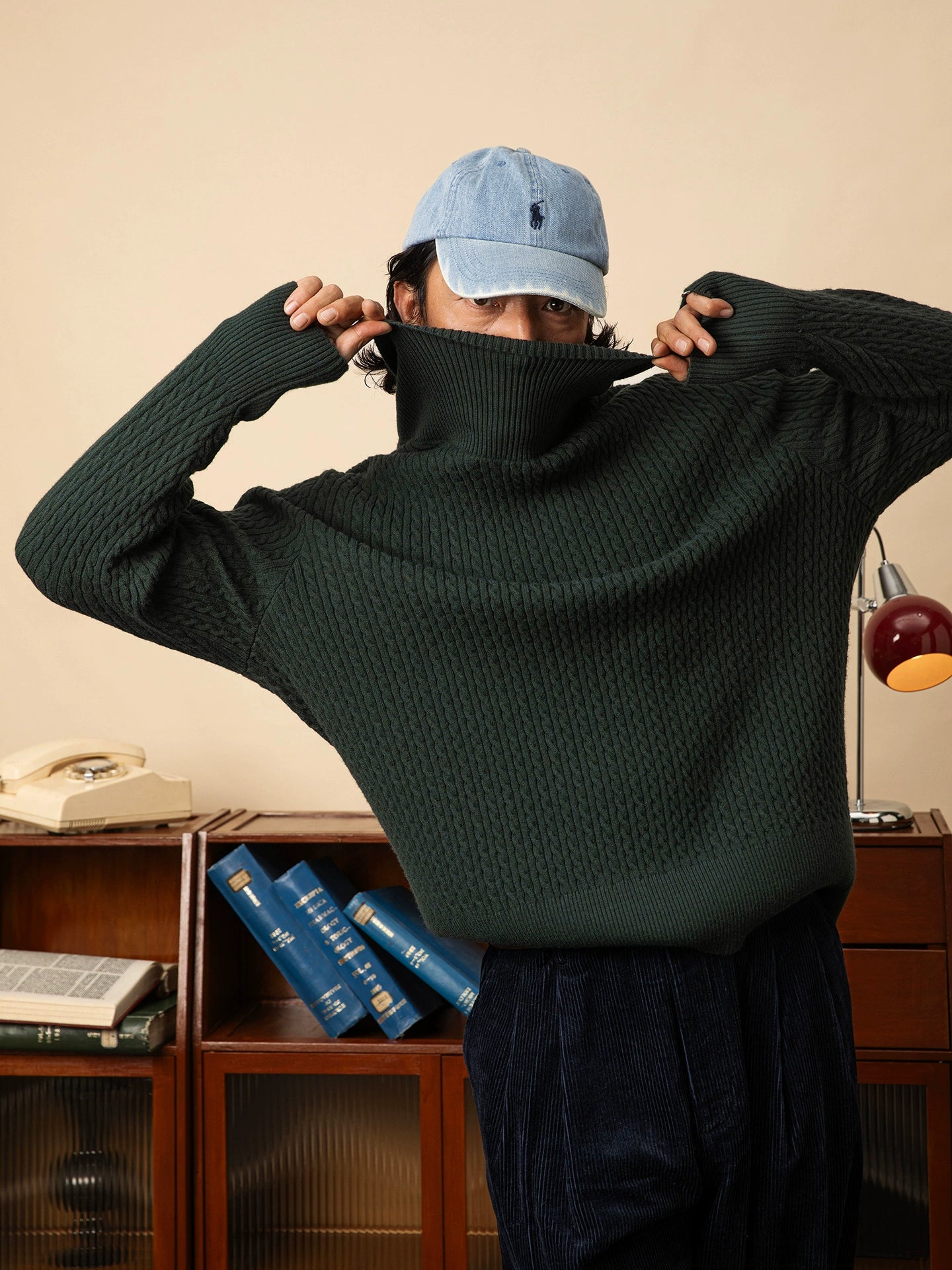 SOARIN英伦风复古高领针织毛衣男 老钱风重磅休闲打底坑条毛线衣