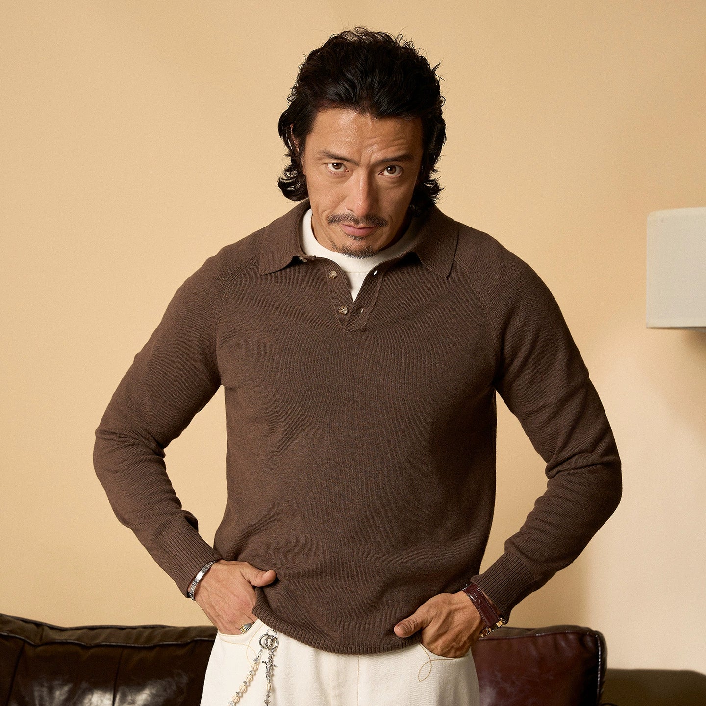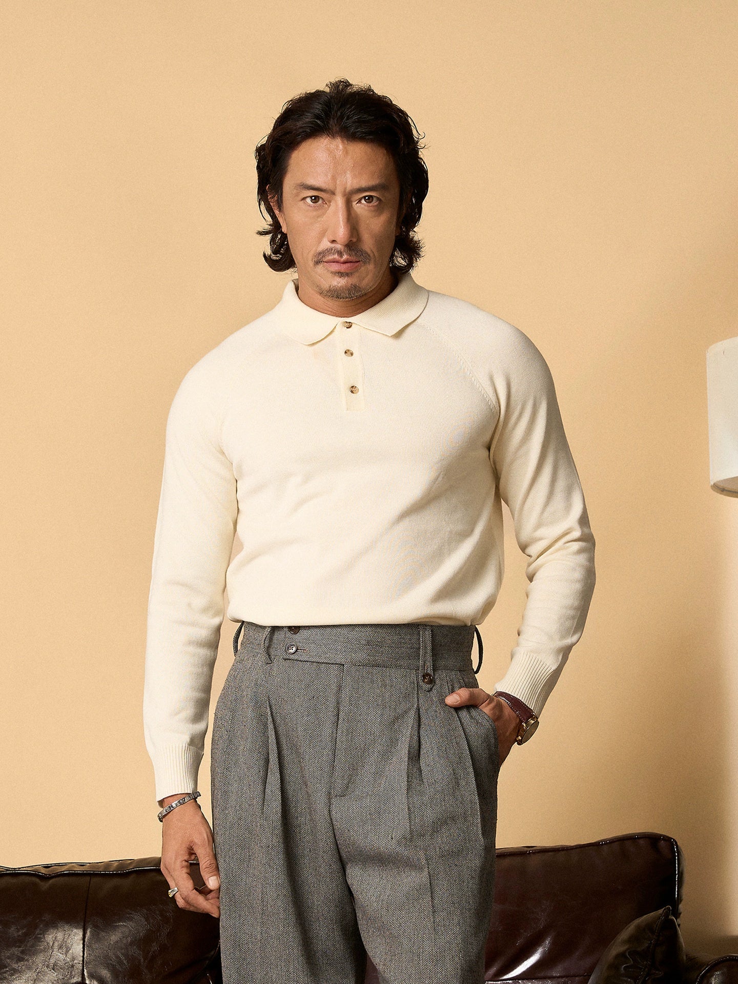 SOARIN英伦风复古polo长袖针织衫男 轻奢感翻领商务休闲套头毛衣