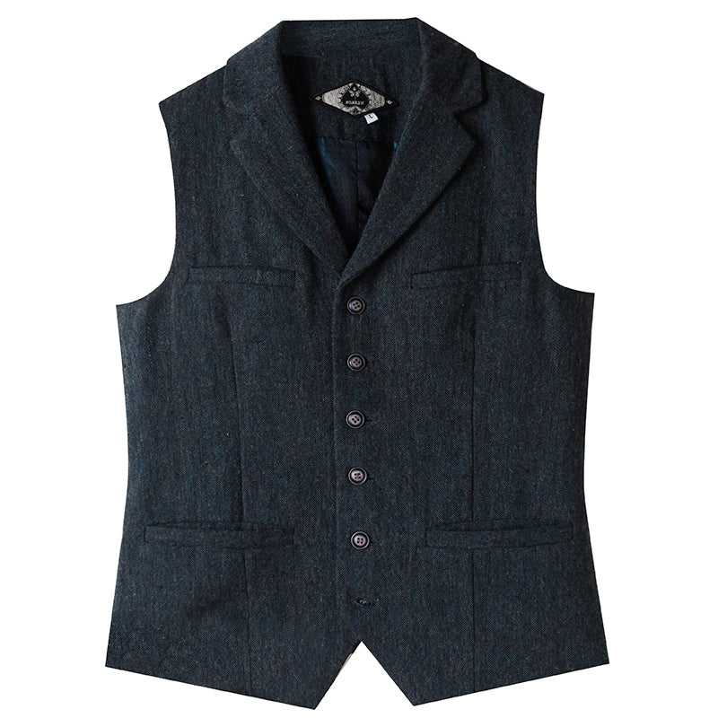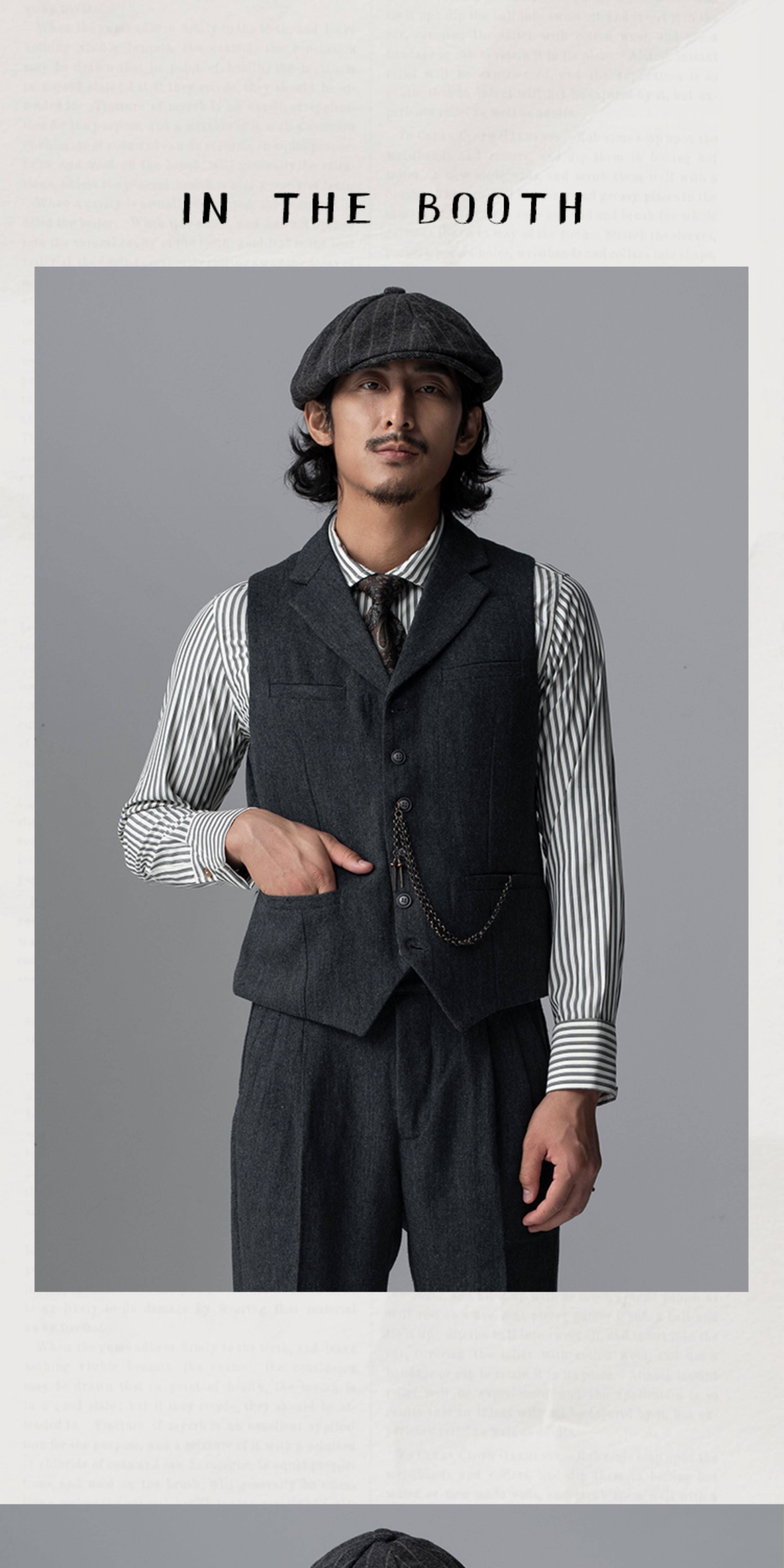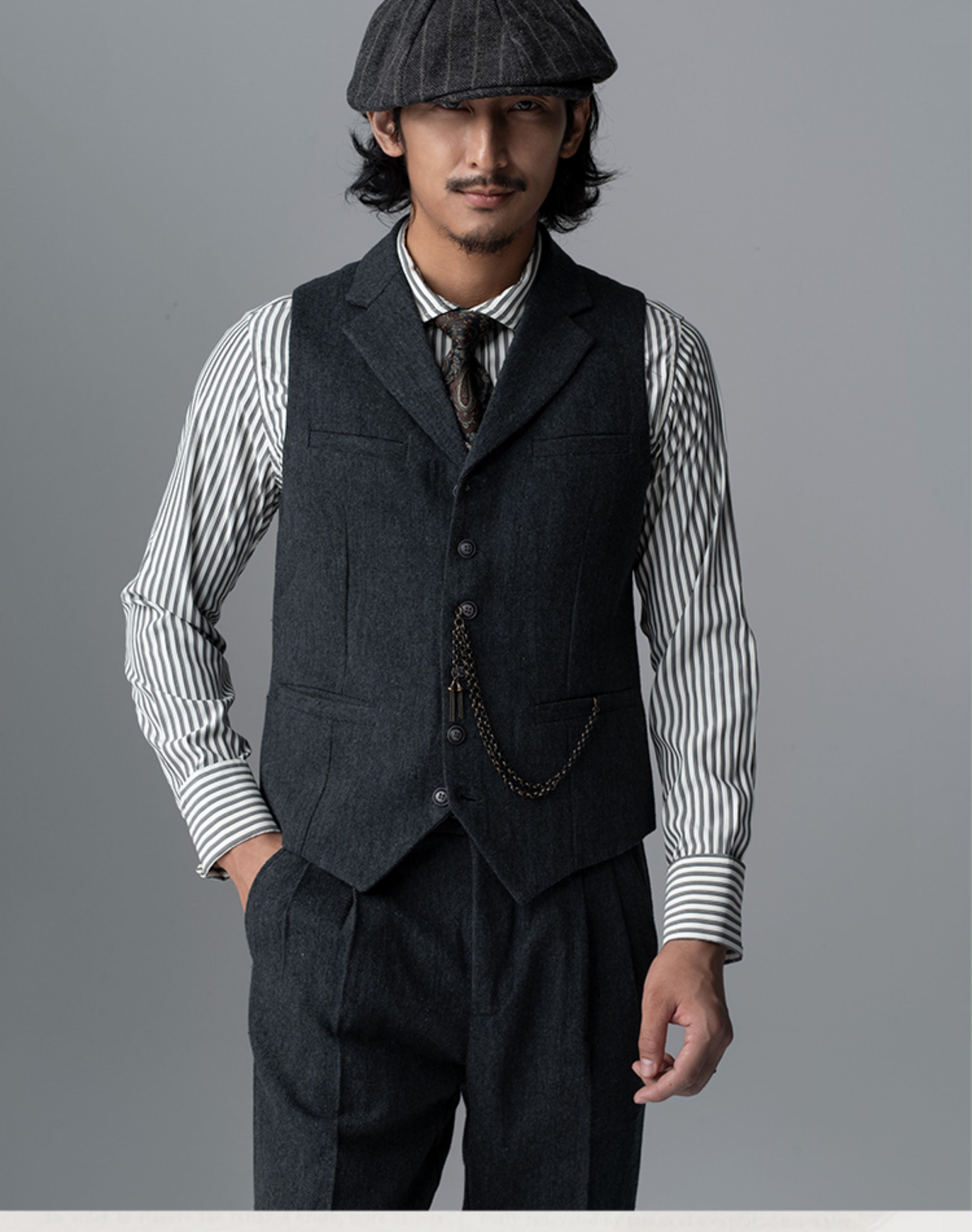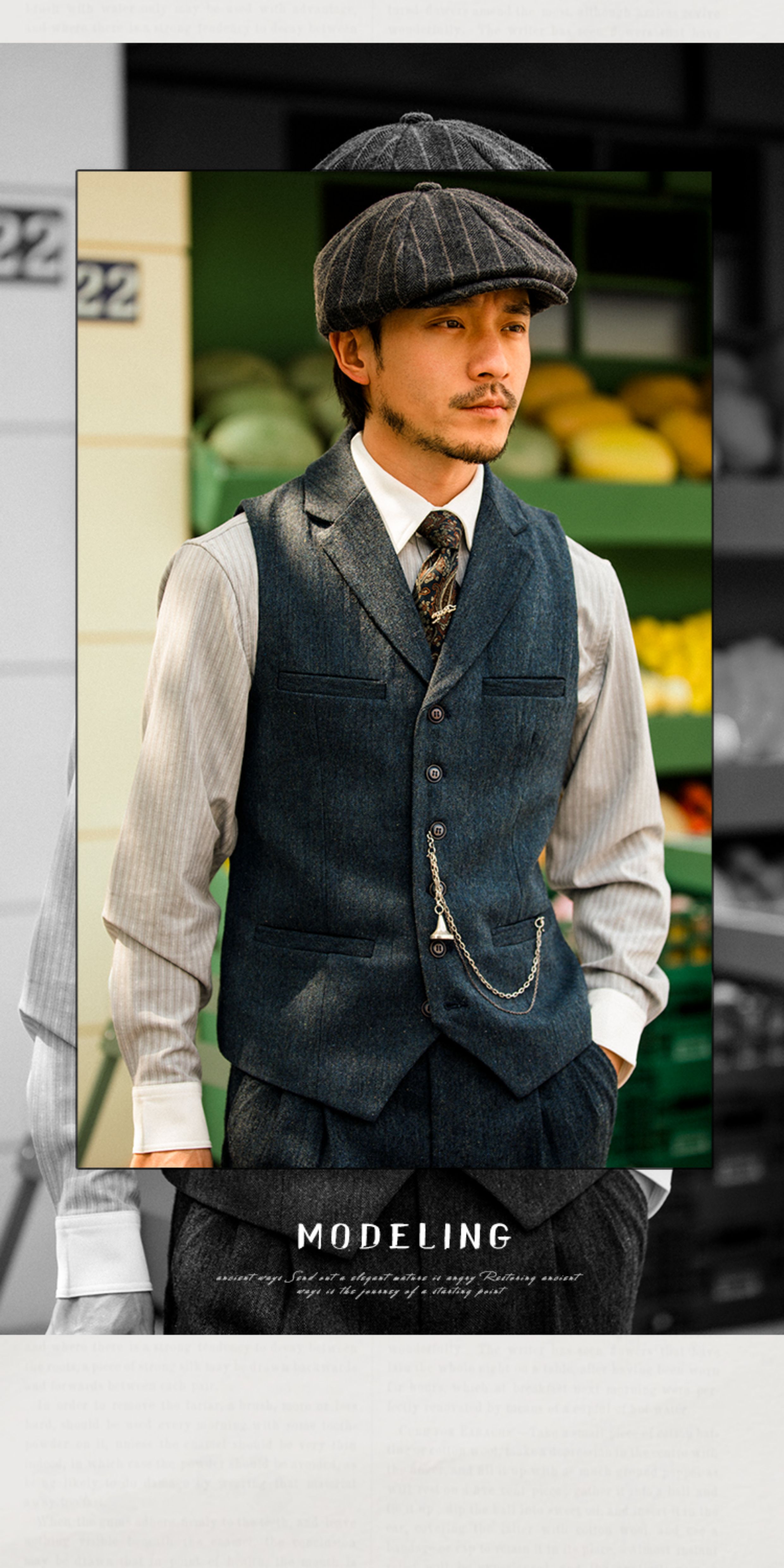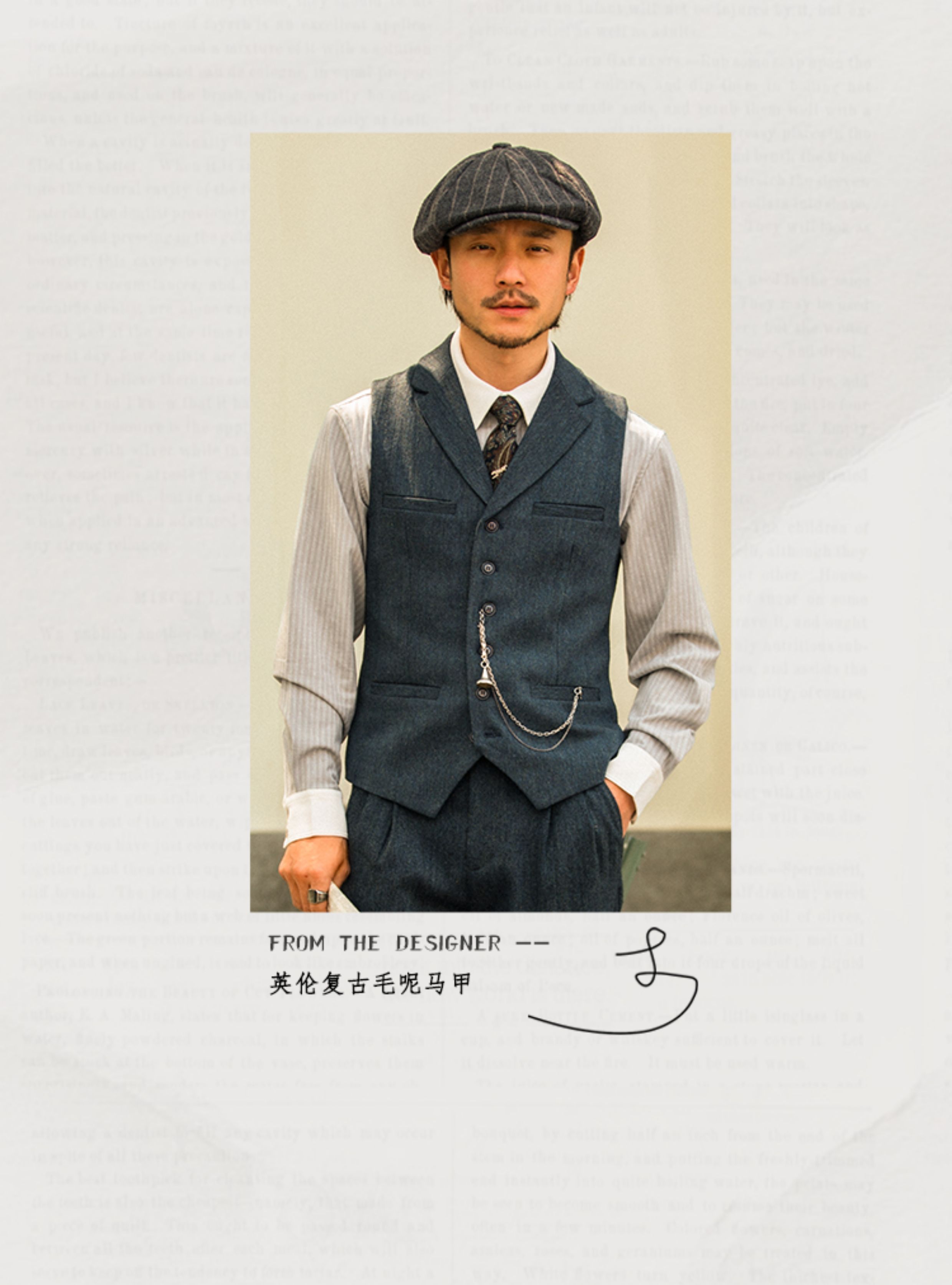 SOARIN英伦风雅痞粗花呢西装马甲男复古商务痞帅婚礼翻领西服背心