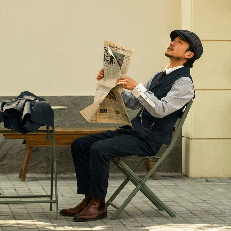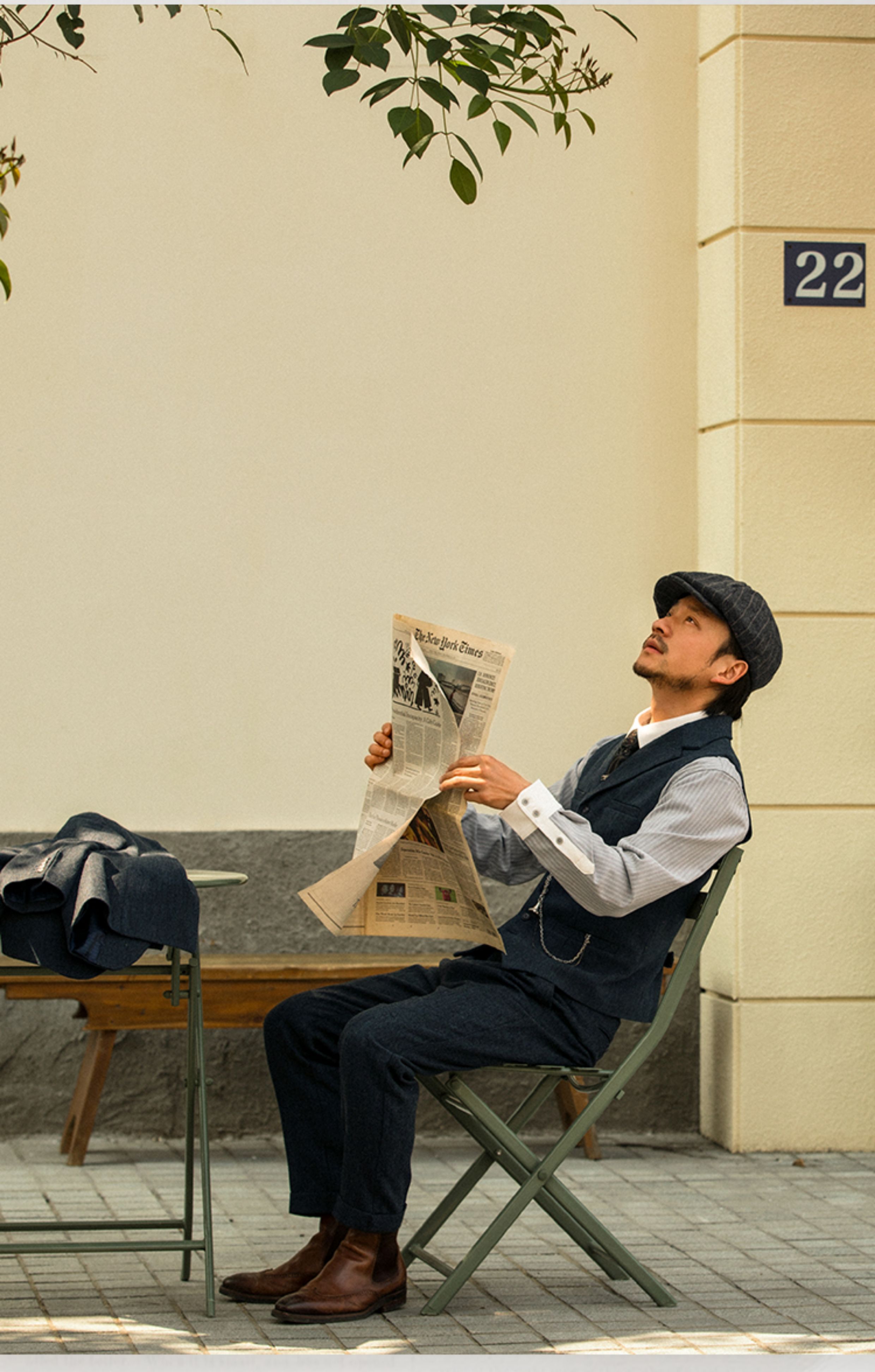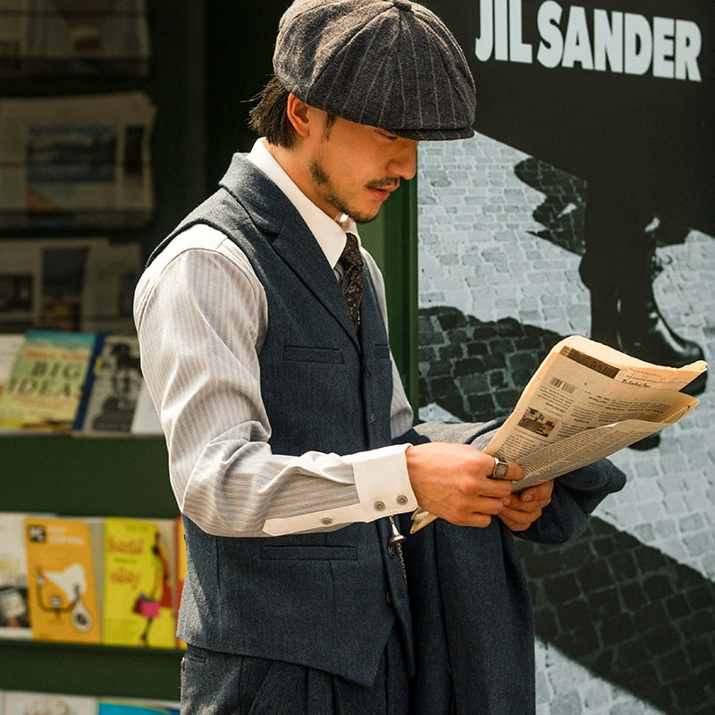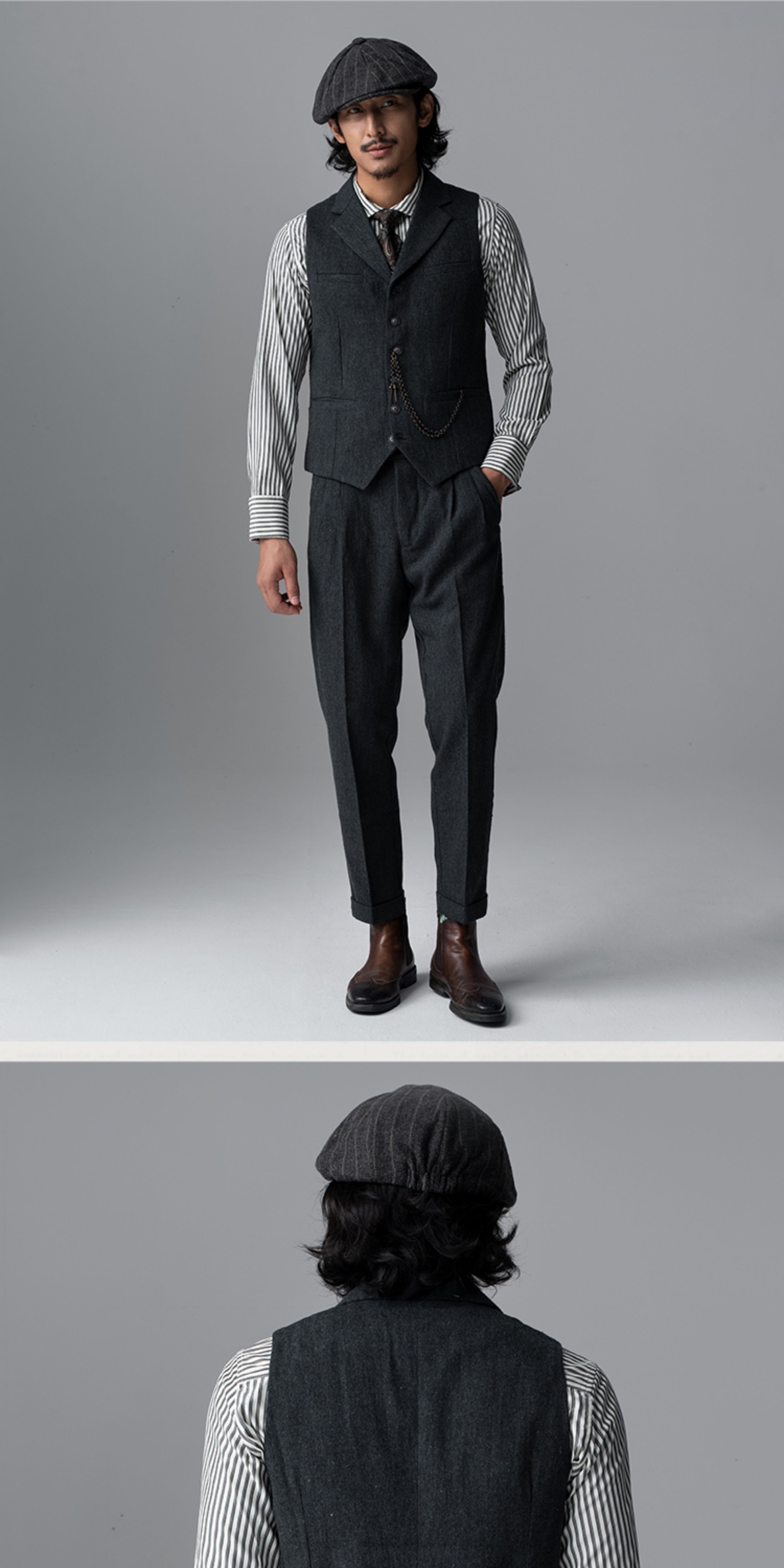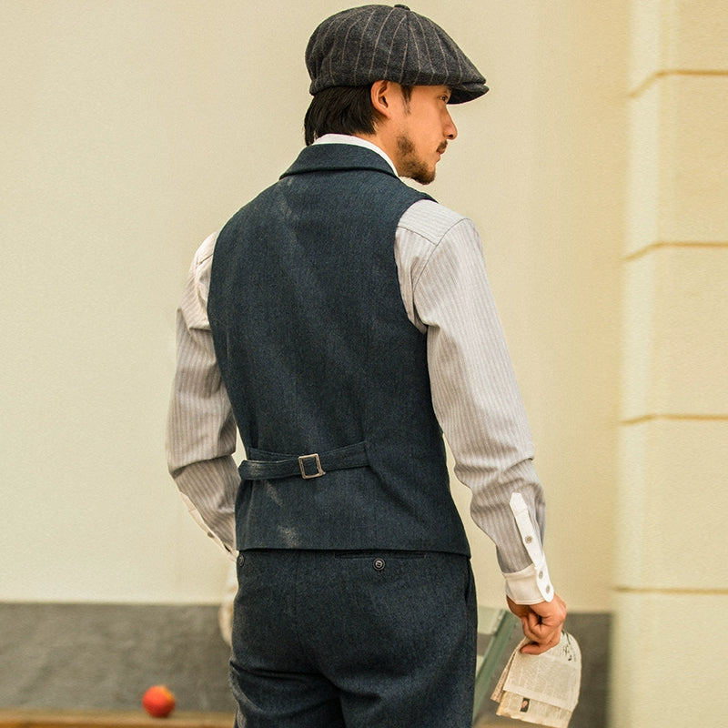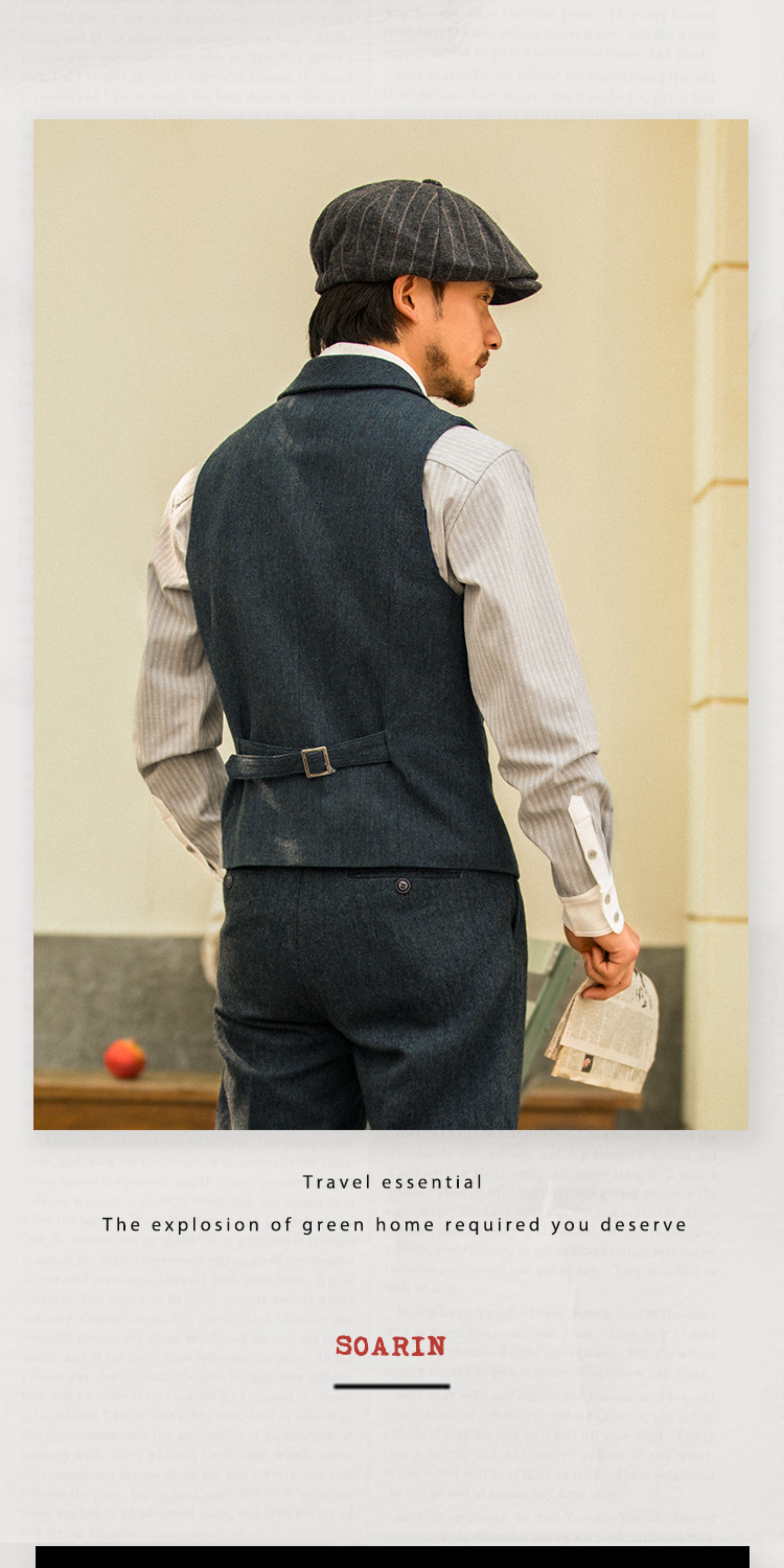 SOARIN英伦风雅痞粗花呢西装马甲男复古商务痞帅婚礼翻领西服背心