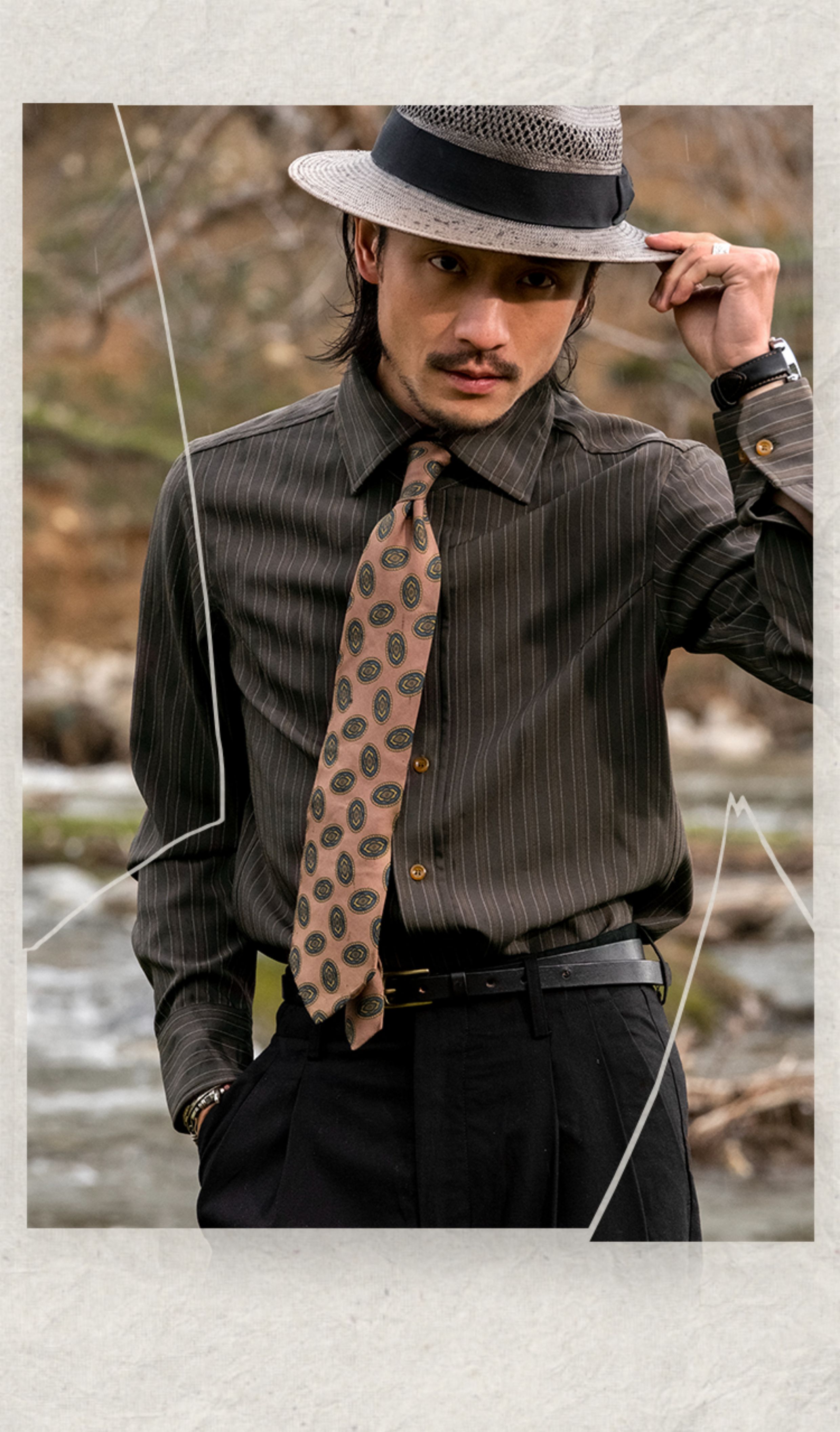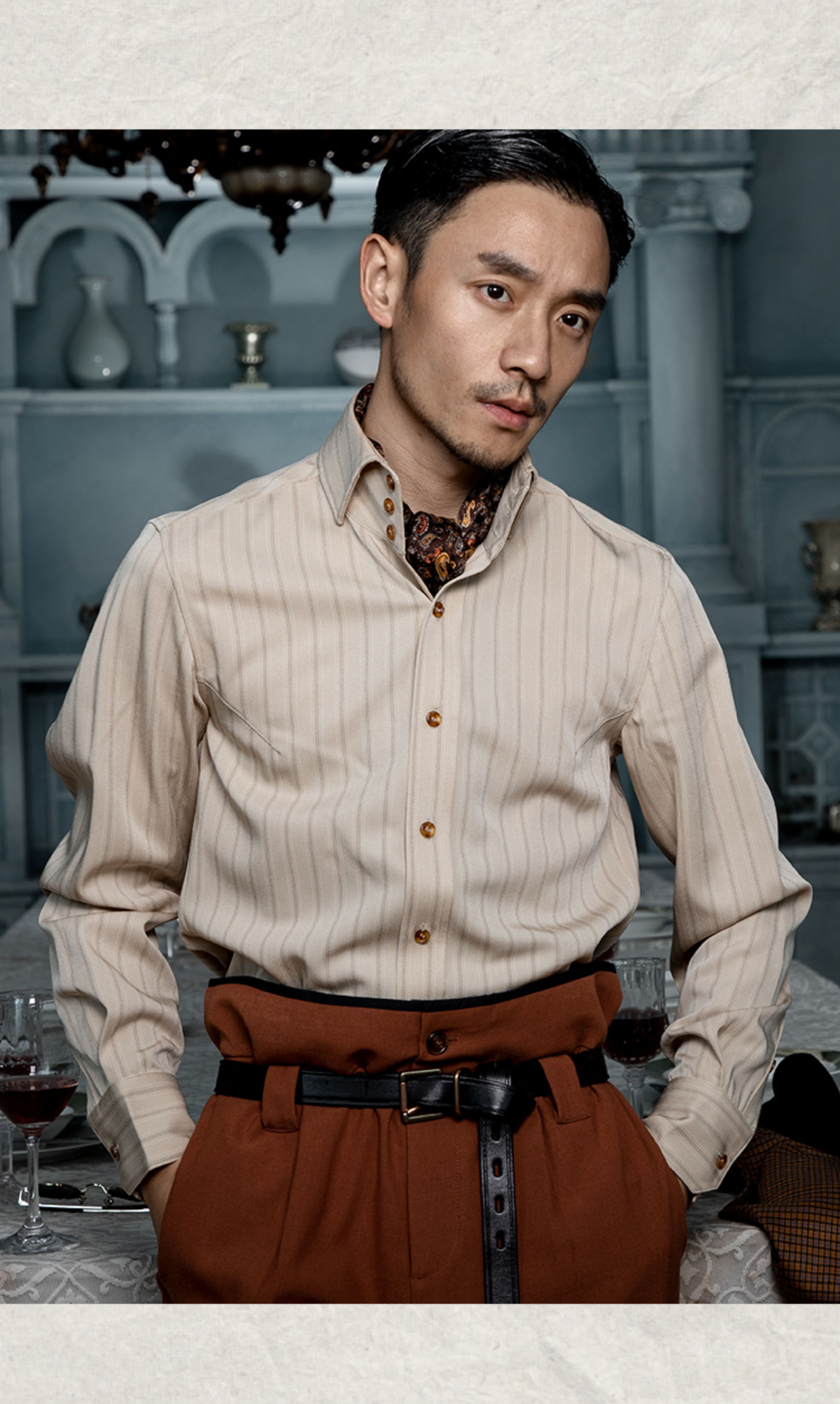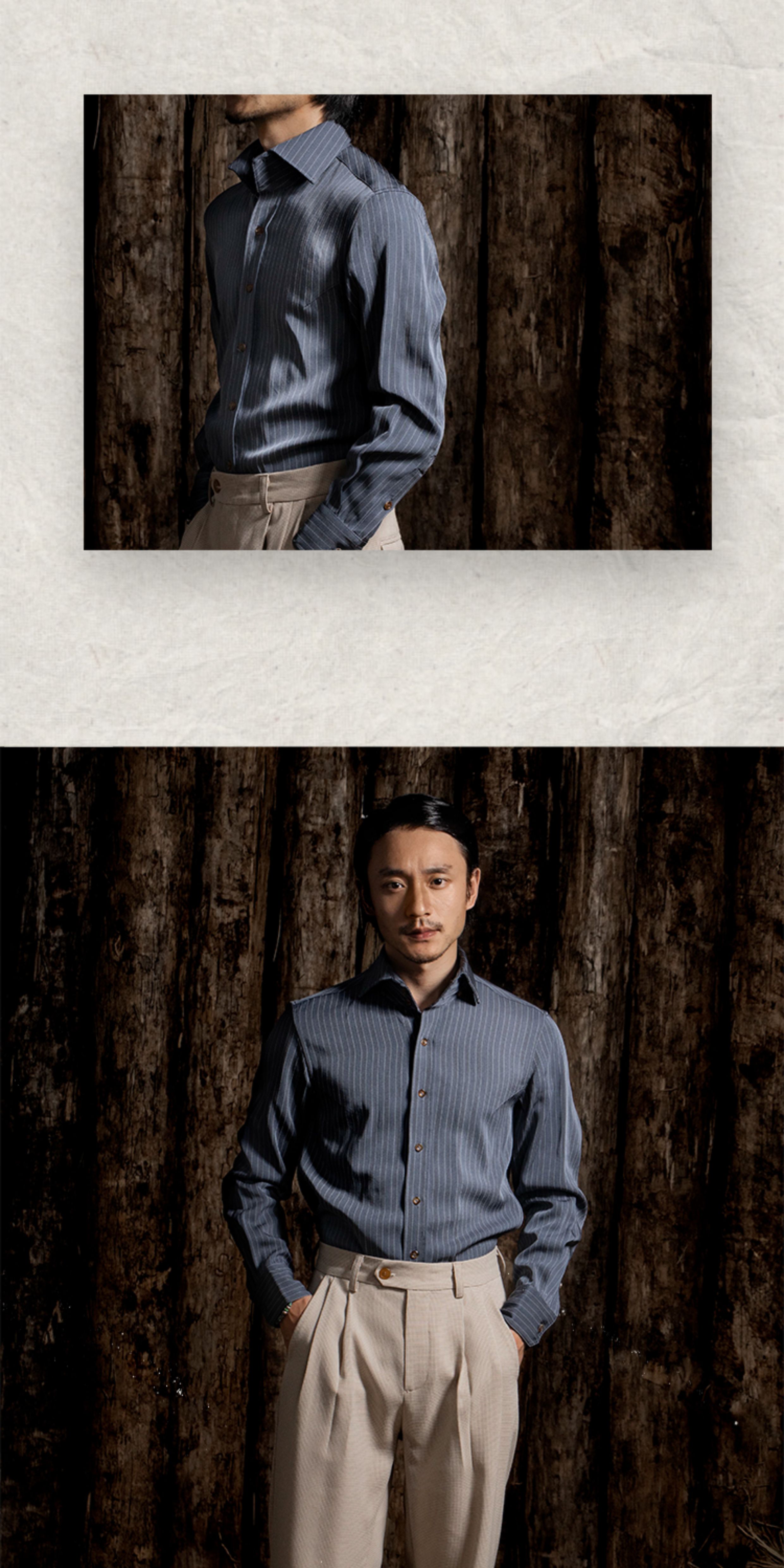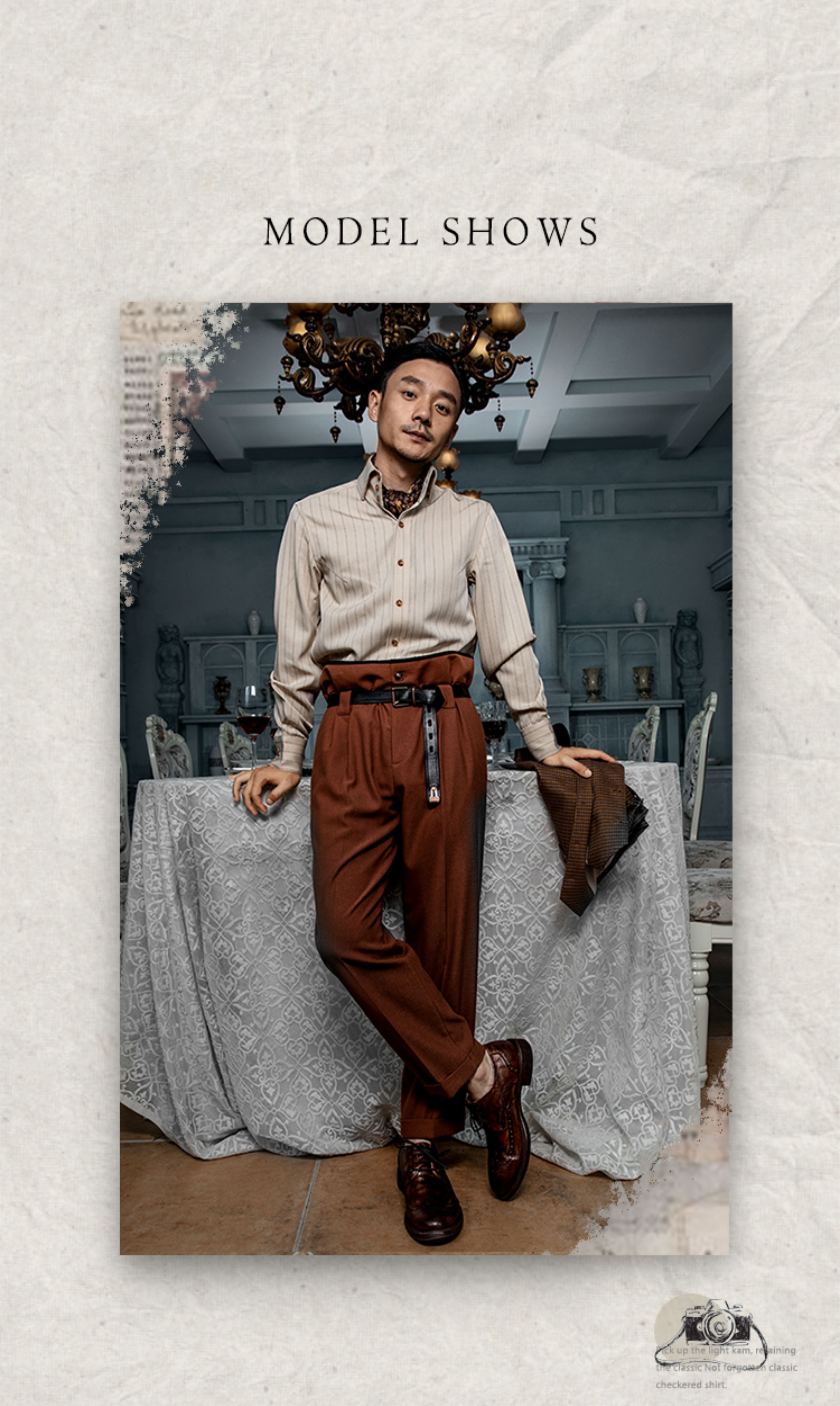 SOARIN英伦风高级感法式衬衫男复古雅痞免烫垂感西装条纹长袖衬衣