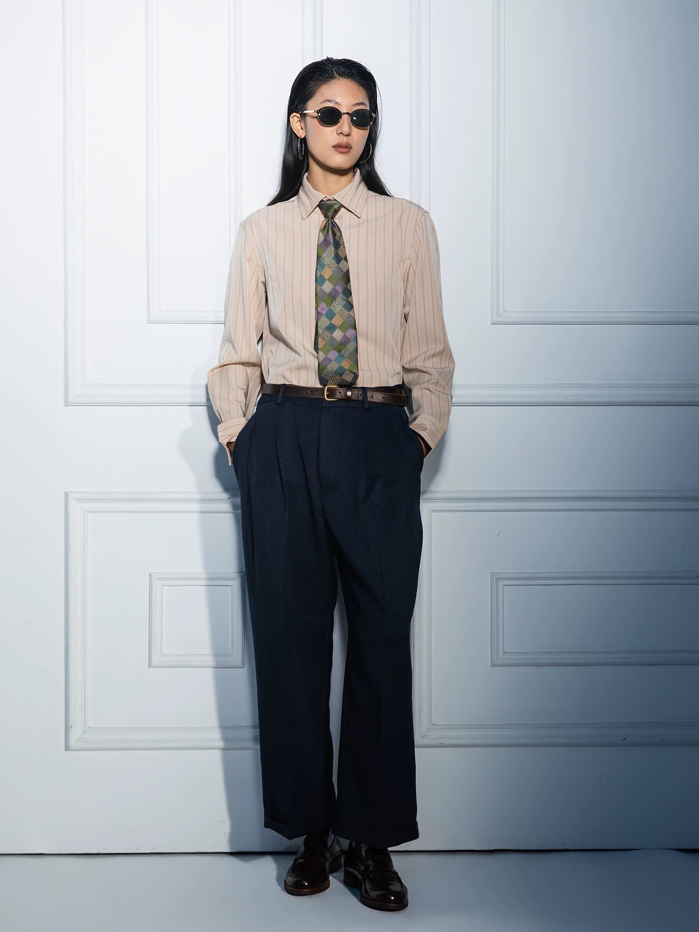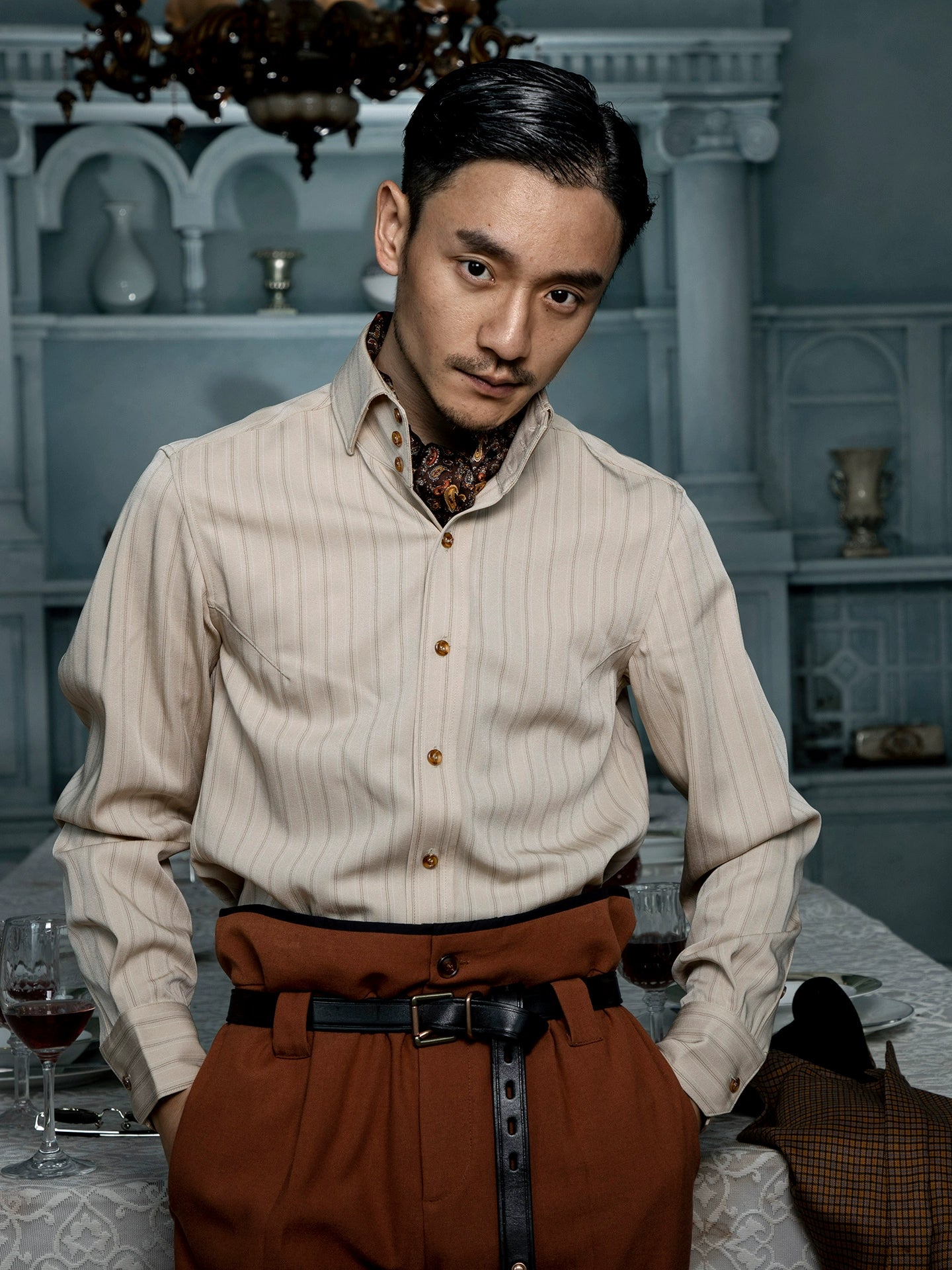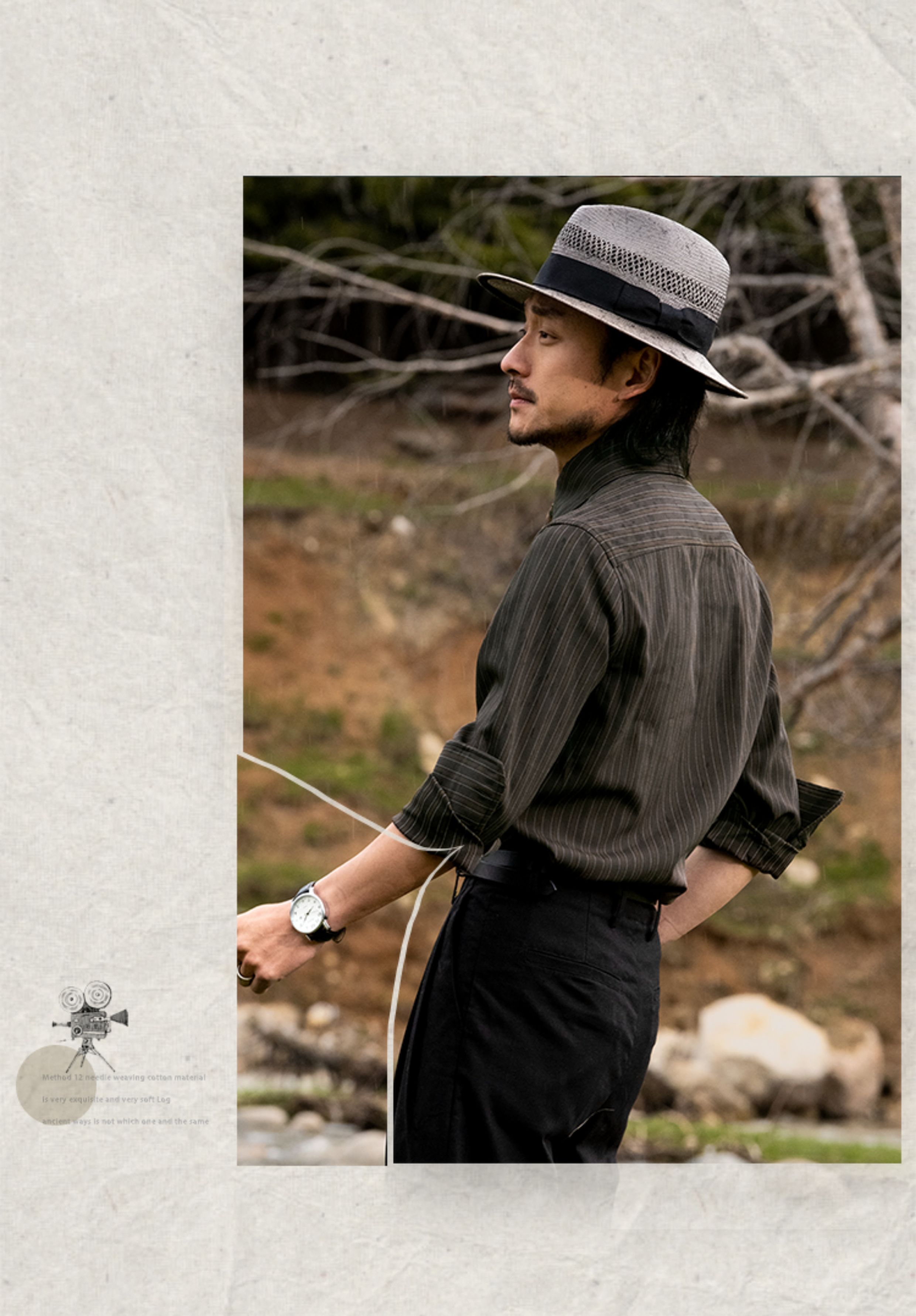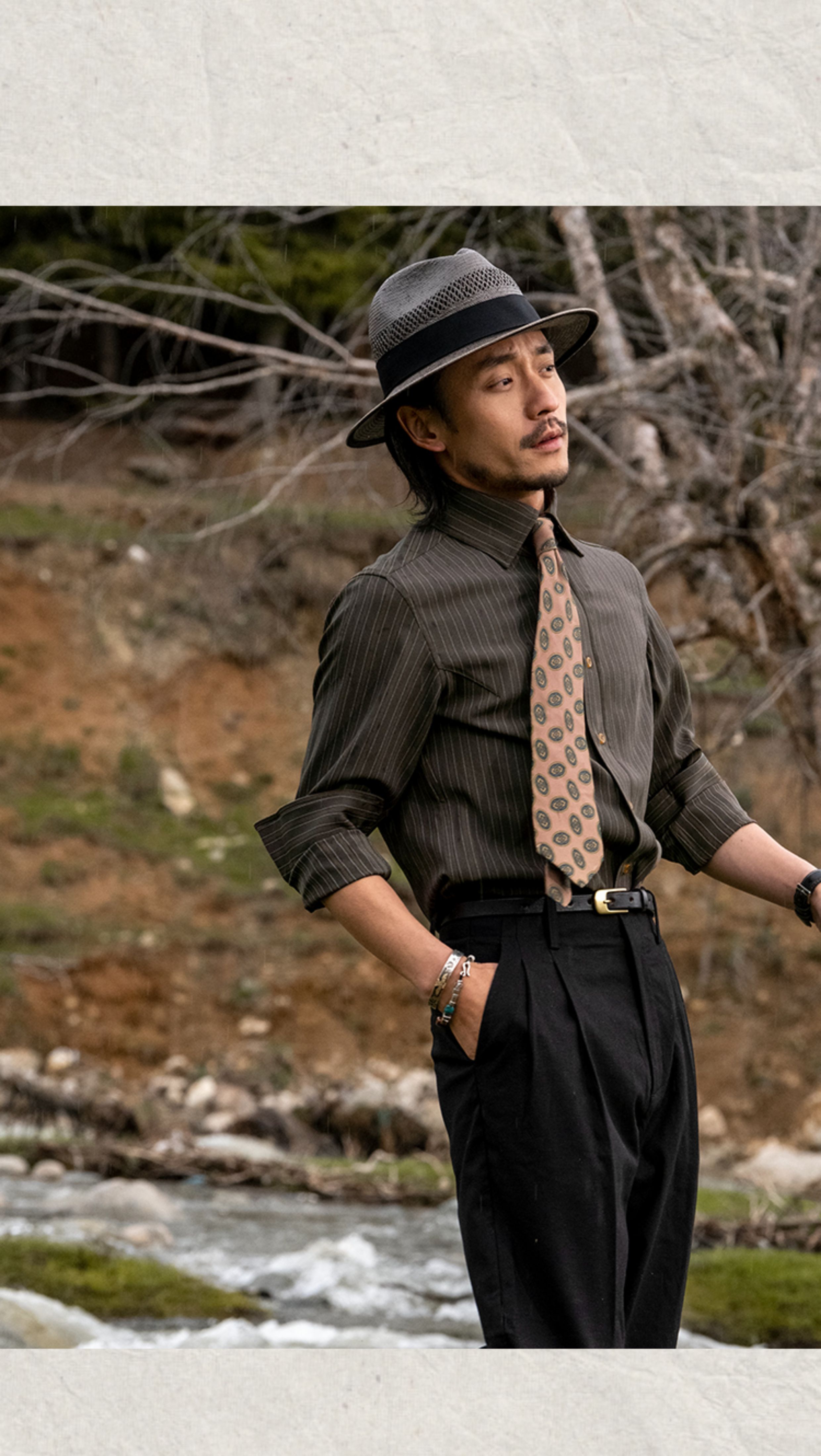 SOARIN英伦风高级感法式衬衫男复古雅痞免烫垂感西装条纹长袖衬衣