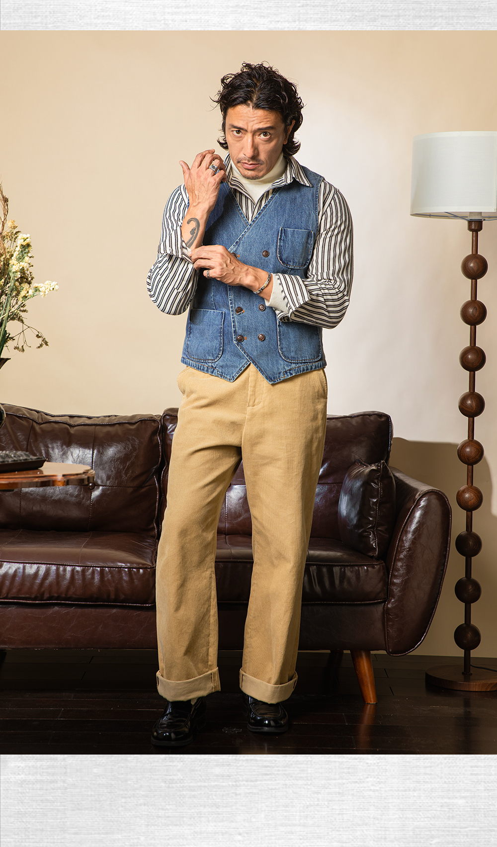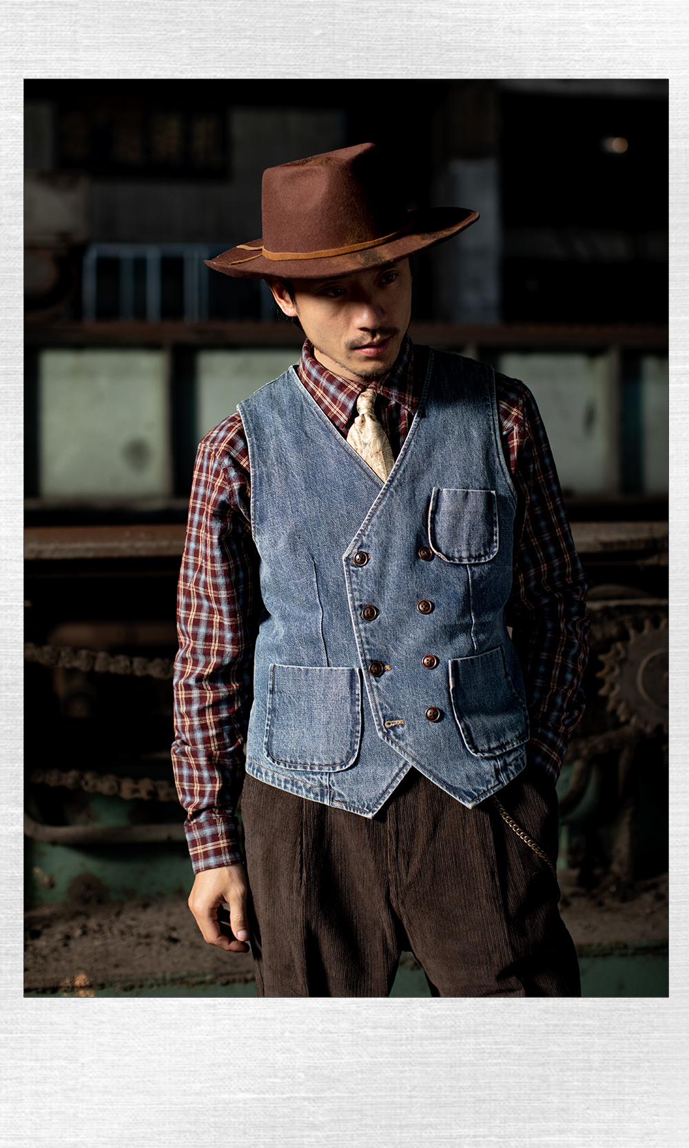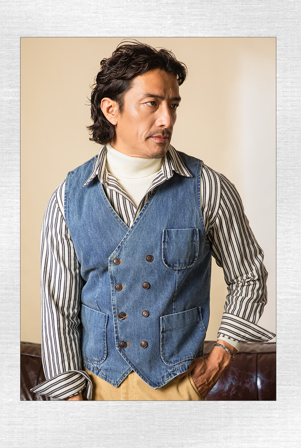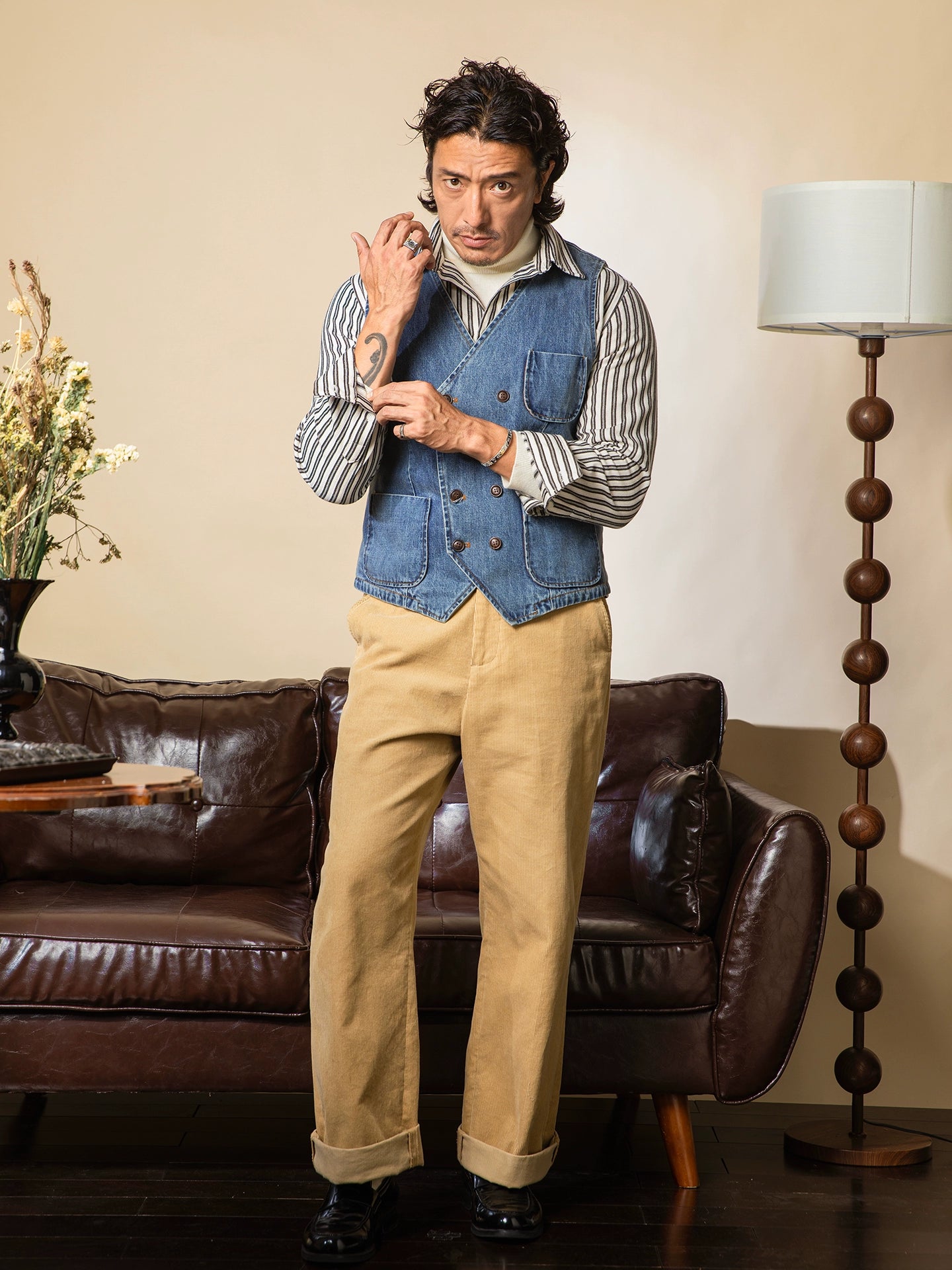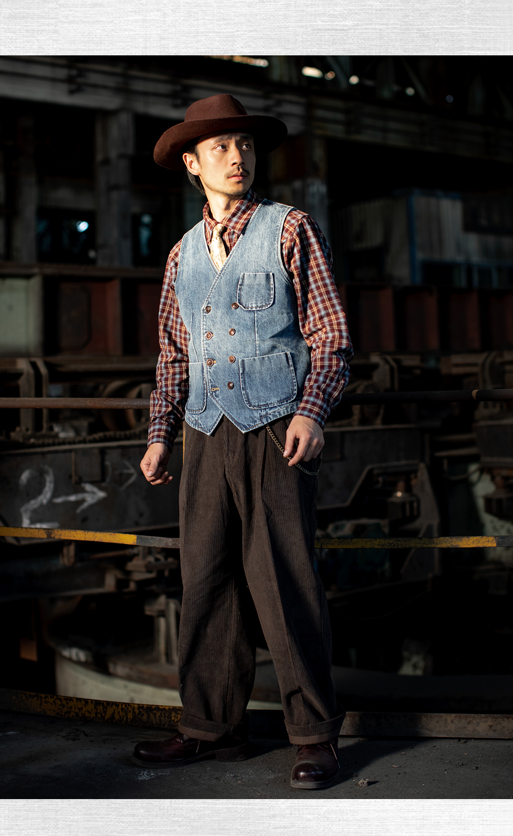 SOARIN英式复古水洗蓝牛仔马甲背心男 双排扣阿美咔叽休闲小马夹