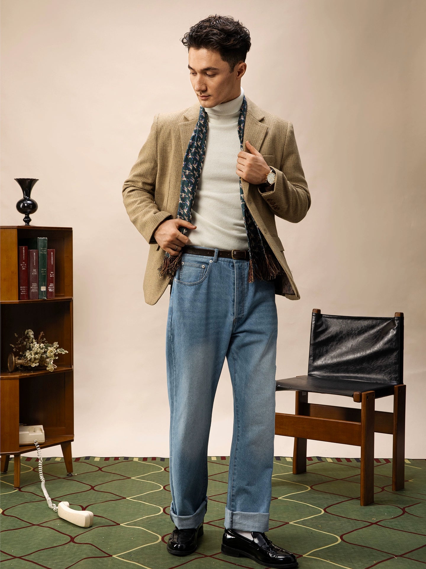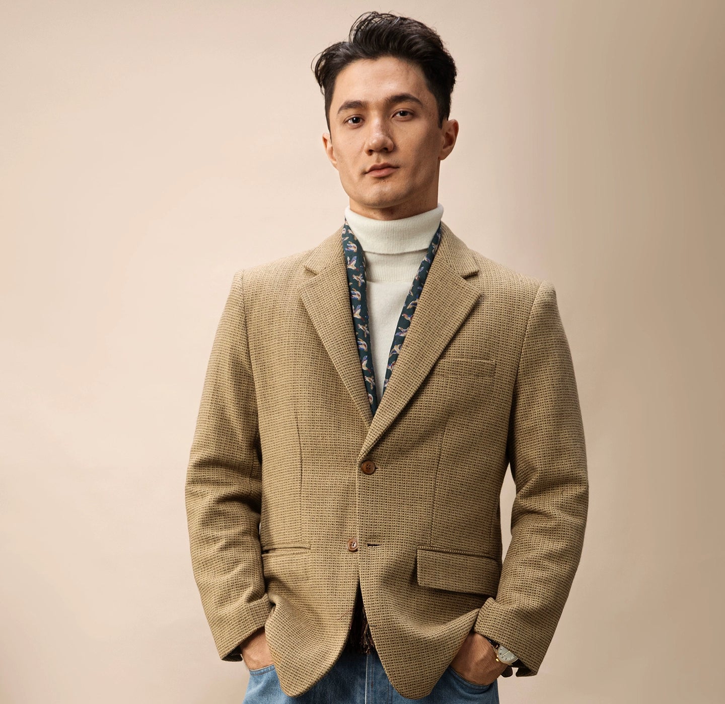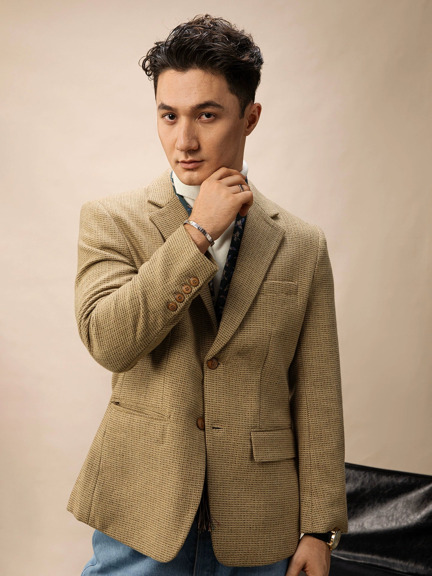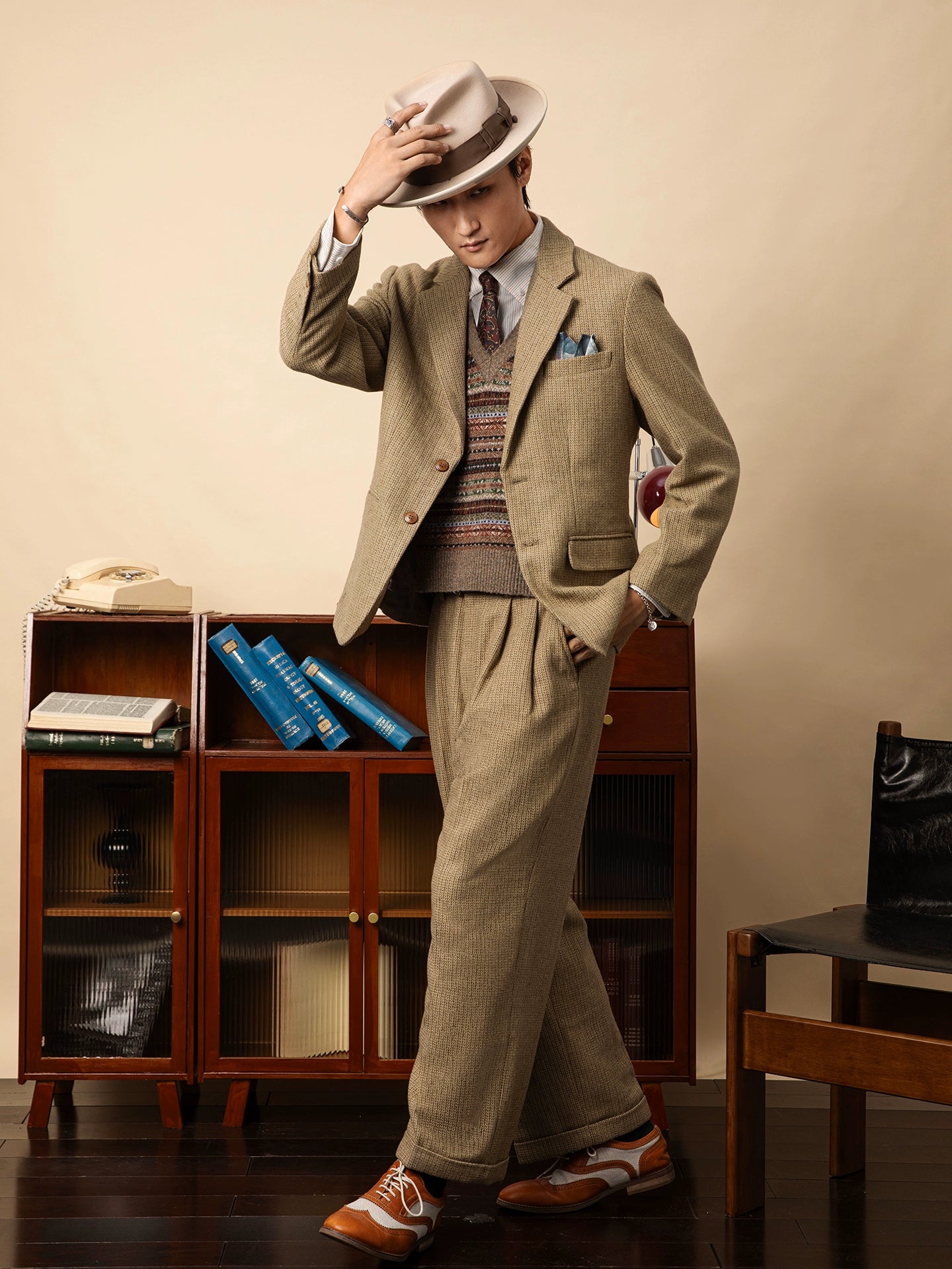 SOARIN【华夫格】英伦复古羊毛呢西装外套男绅士感商务休闲单西服
