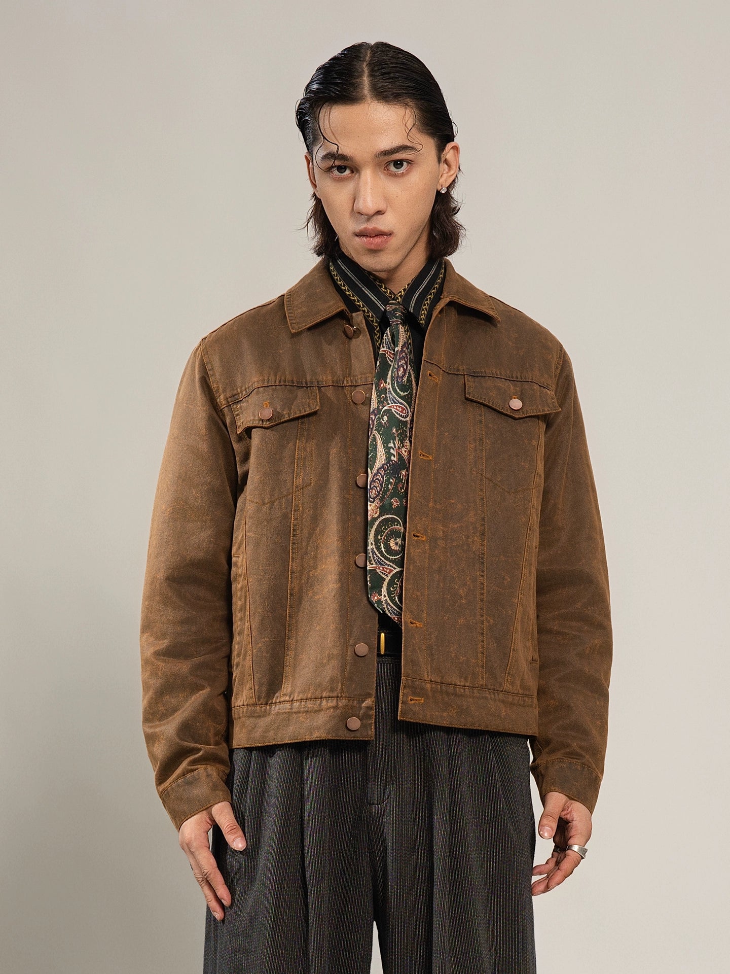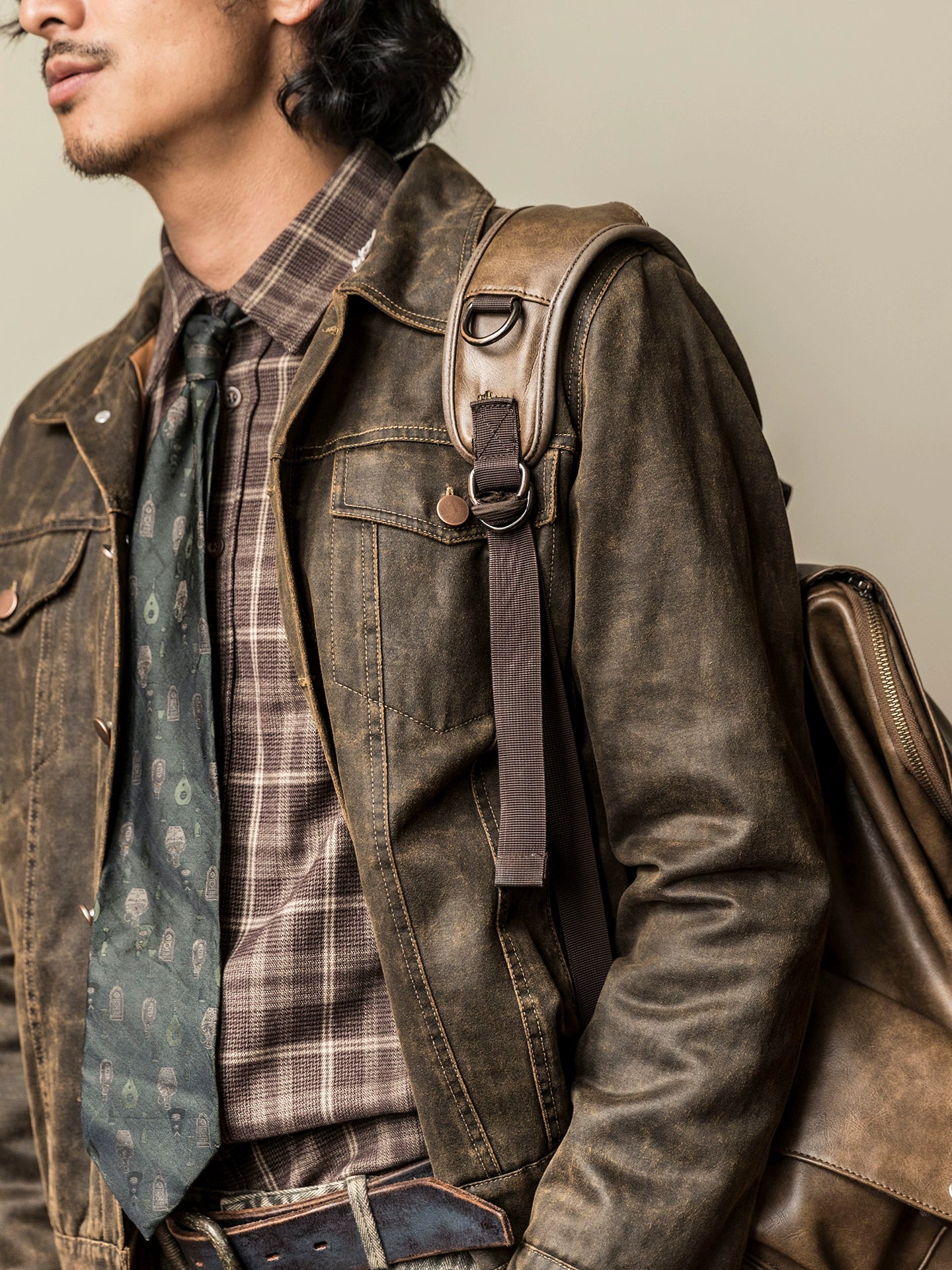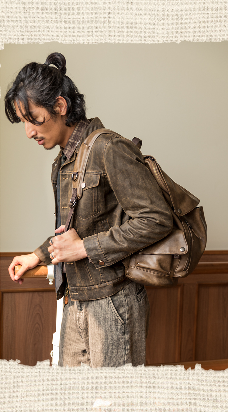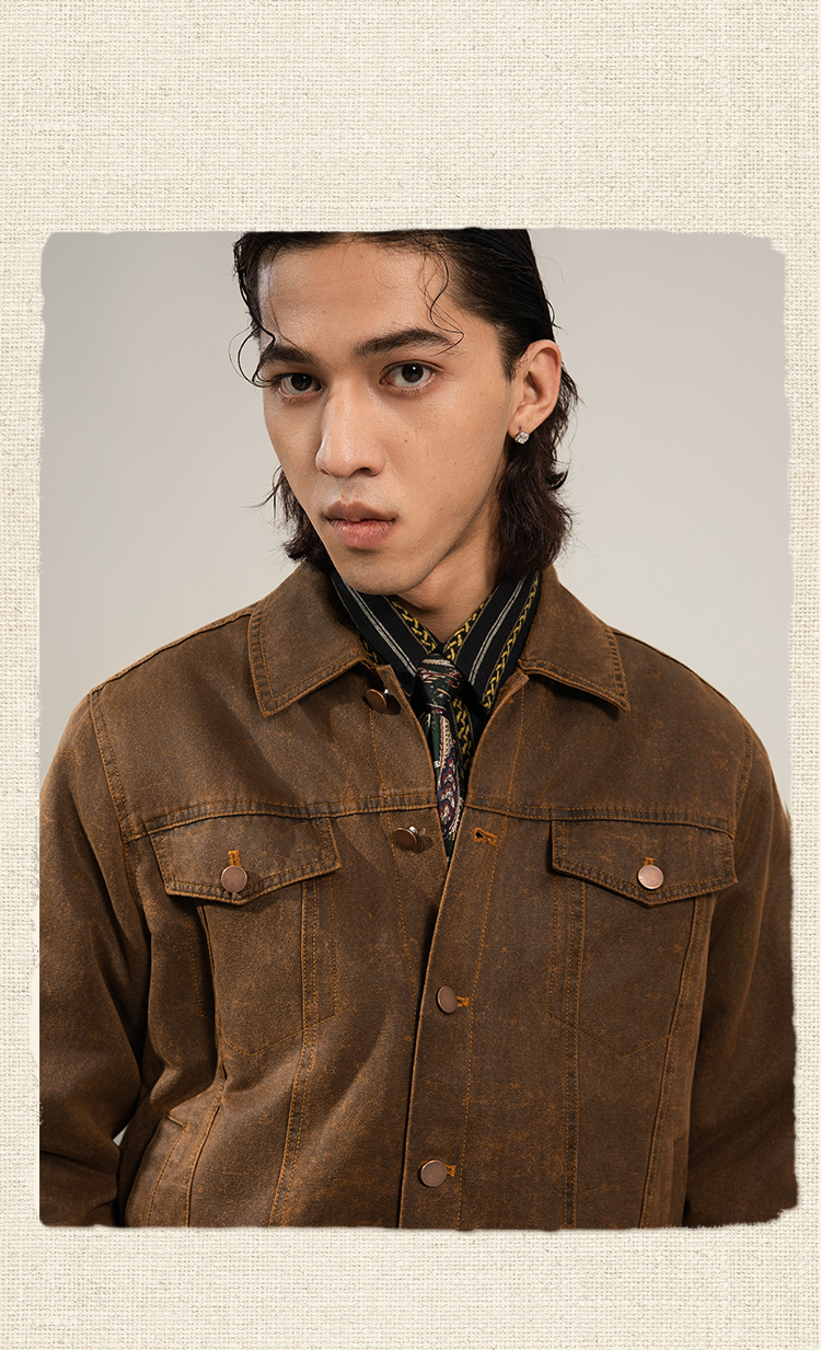 SOARIN【原创正版】复古美式皮夹克外套男阿美咔叽短款飞行员皮衣