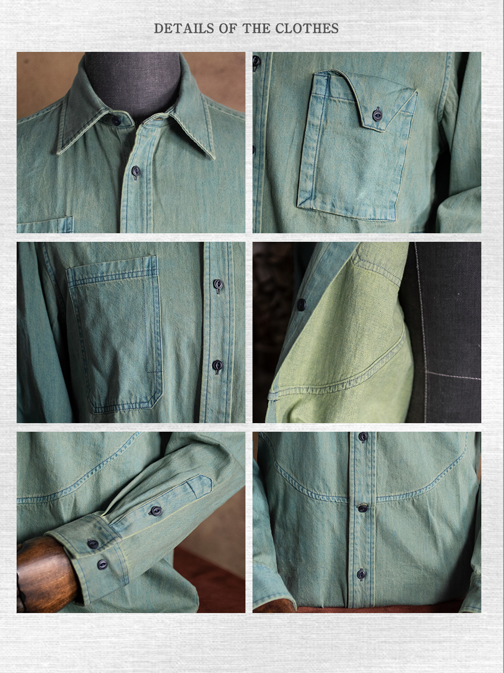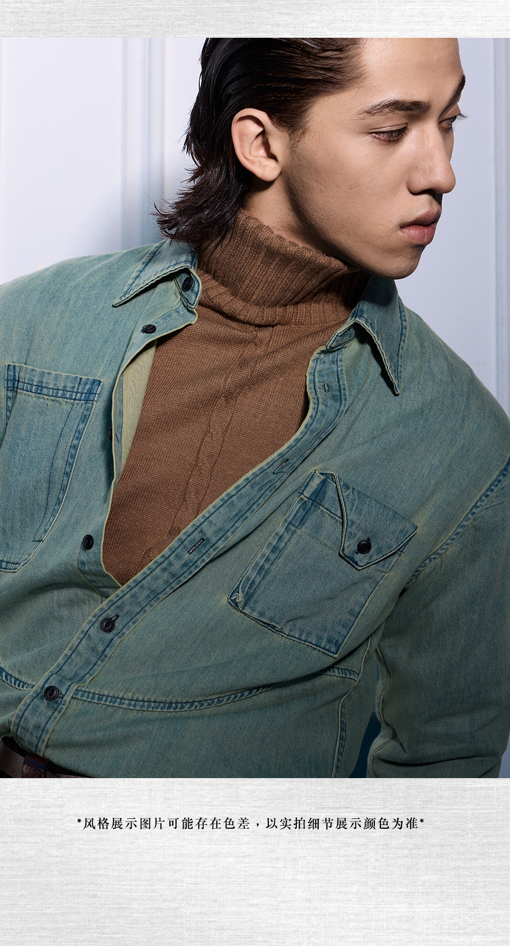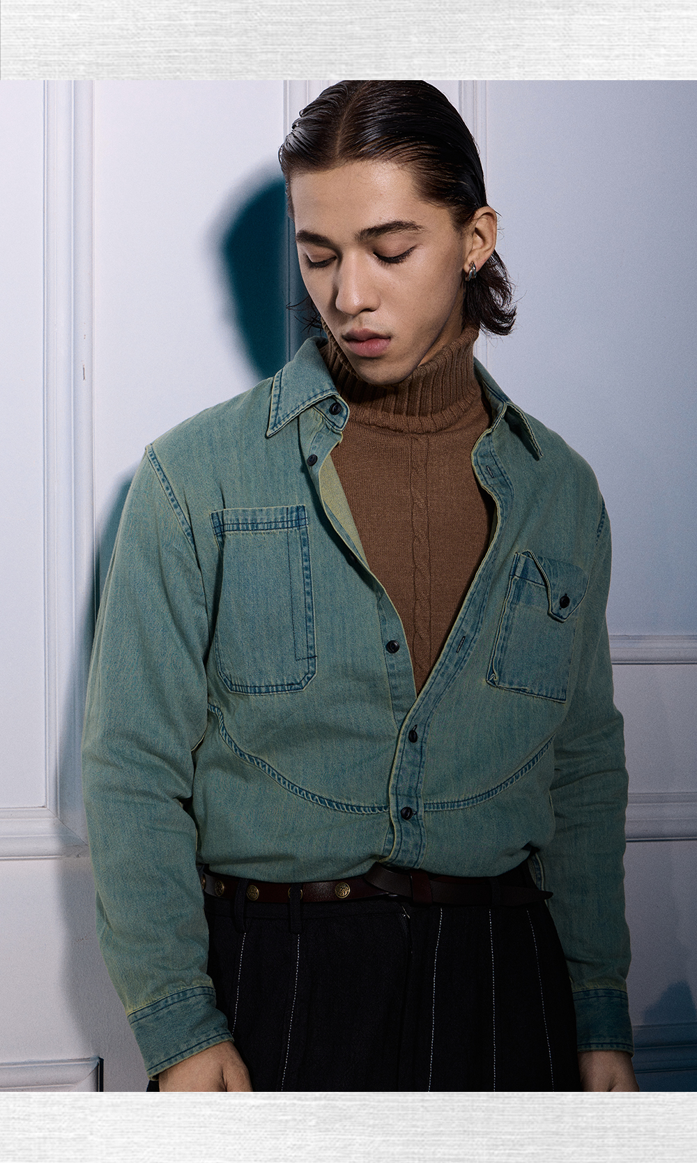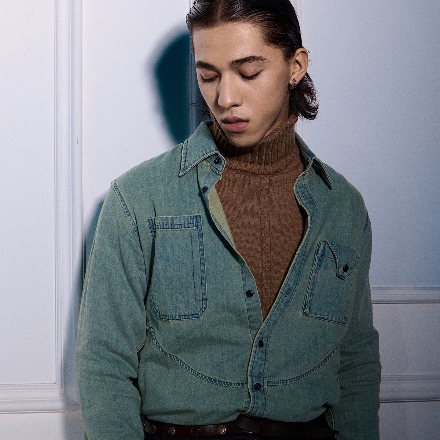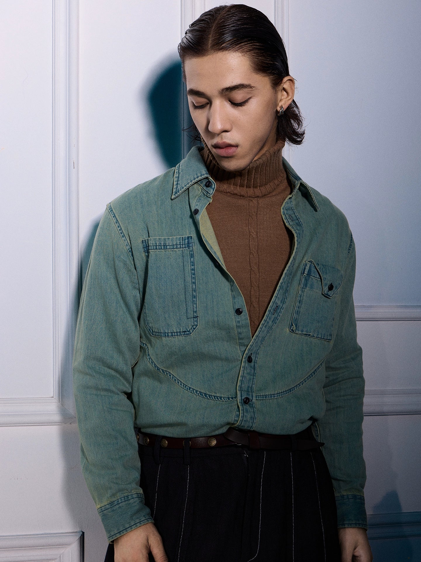SOARIN【炒色做旧感】美式丹宁牛仔衬衫男设计感痞帅工装长袖衬衣