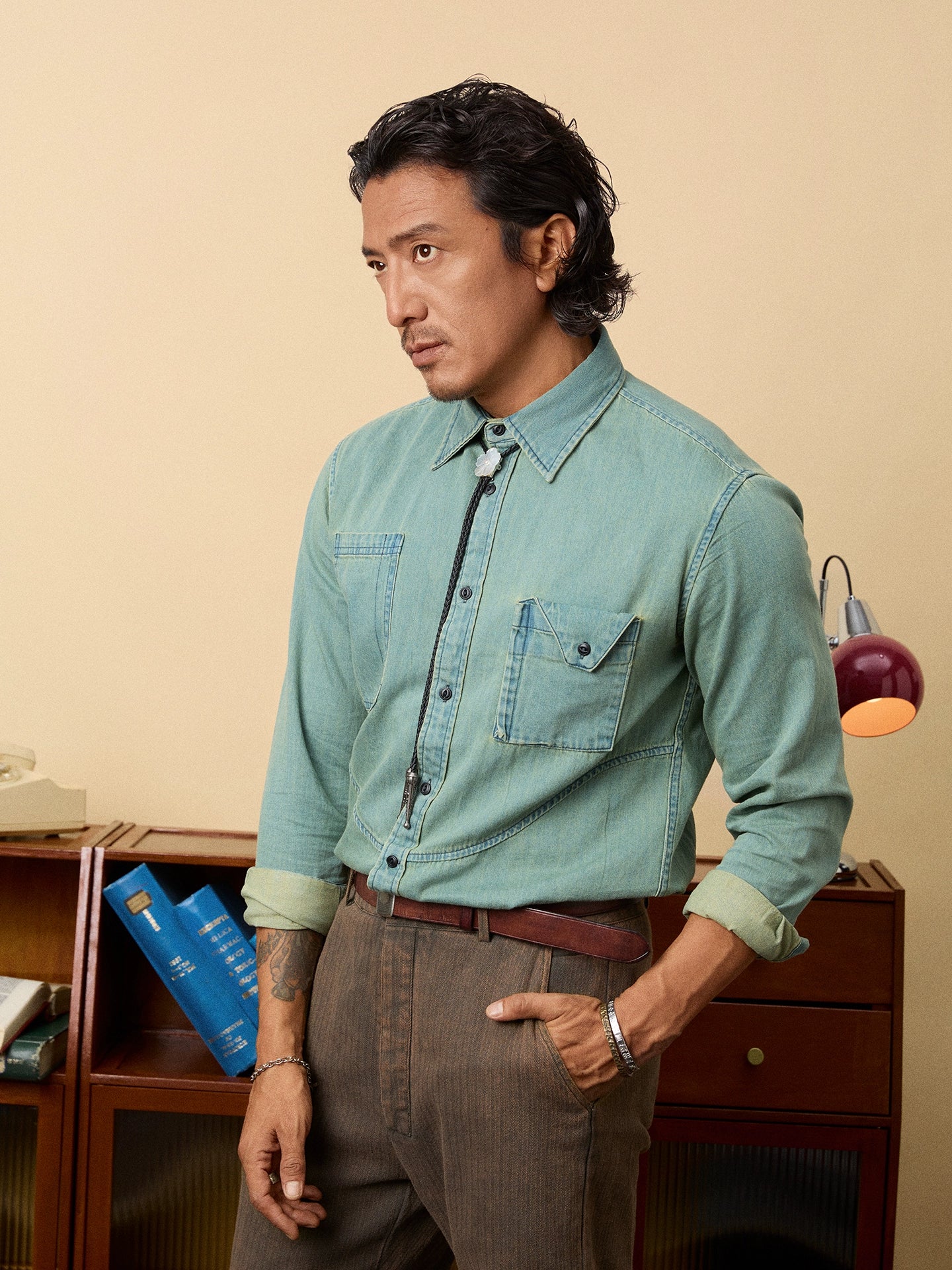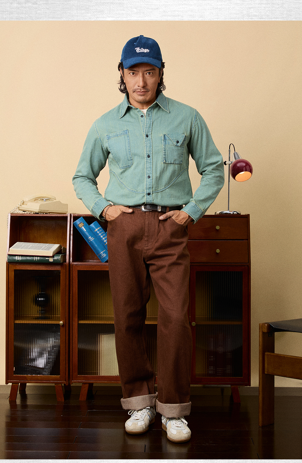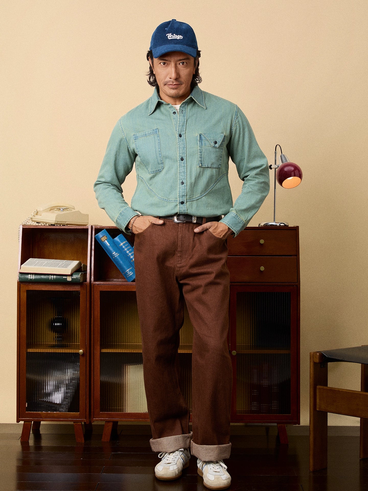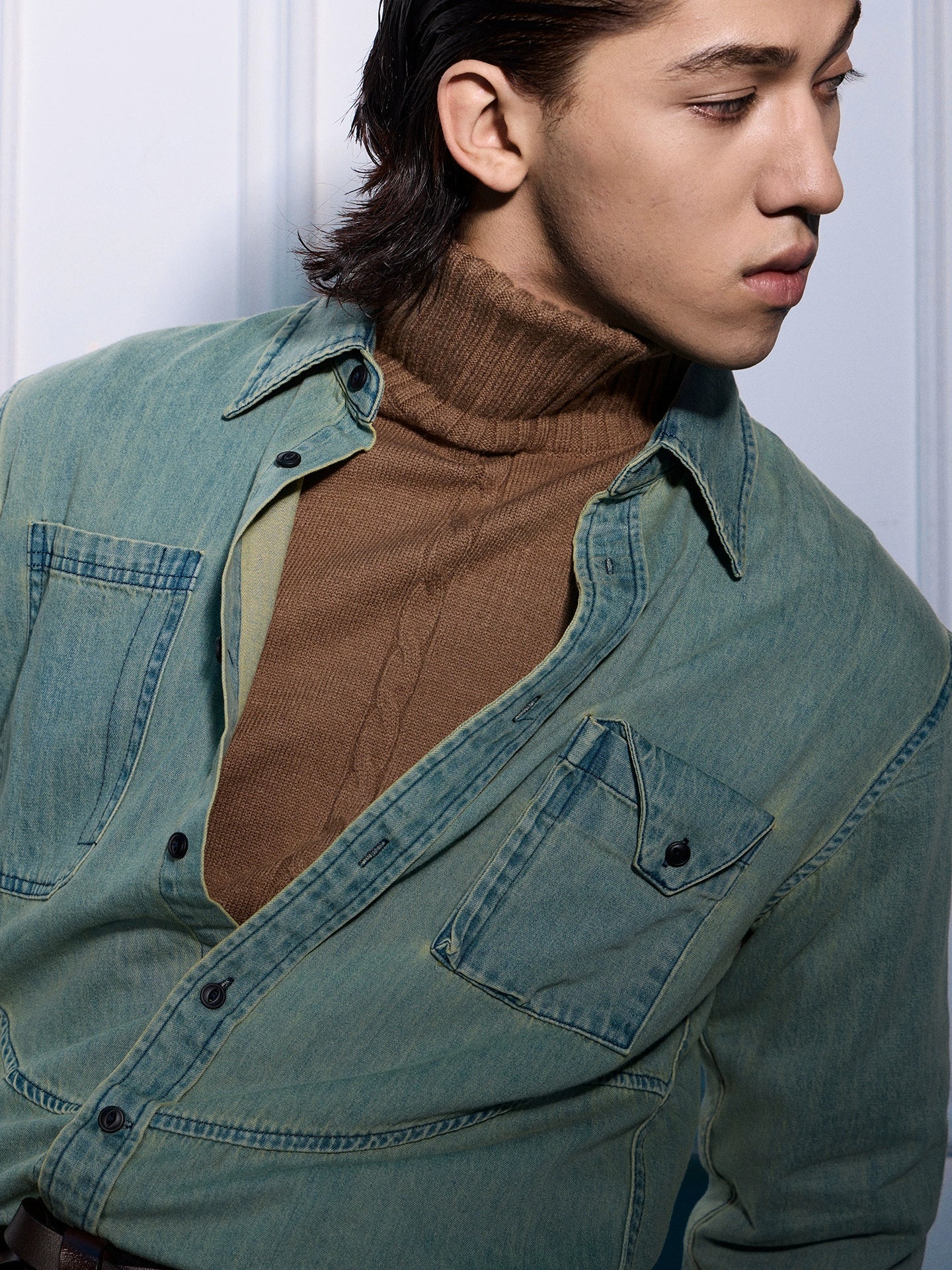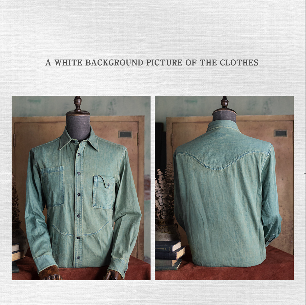 SOARIN【炒色做旧感】美式丹宁牛仔衬衫男设计感痞帅工装长袖衬衣