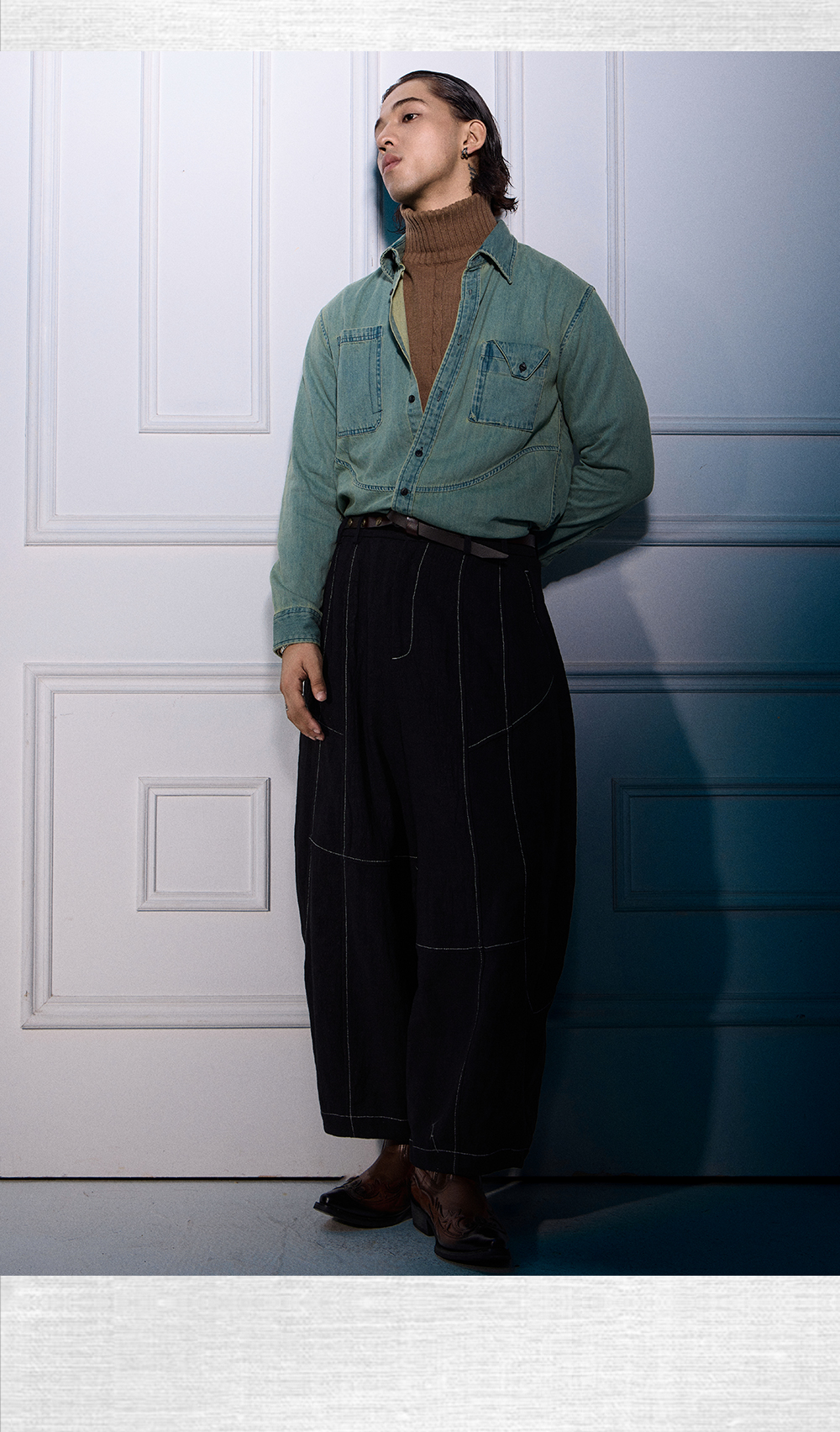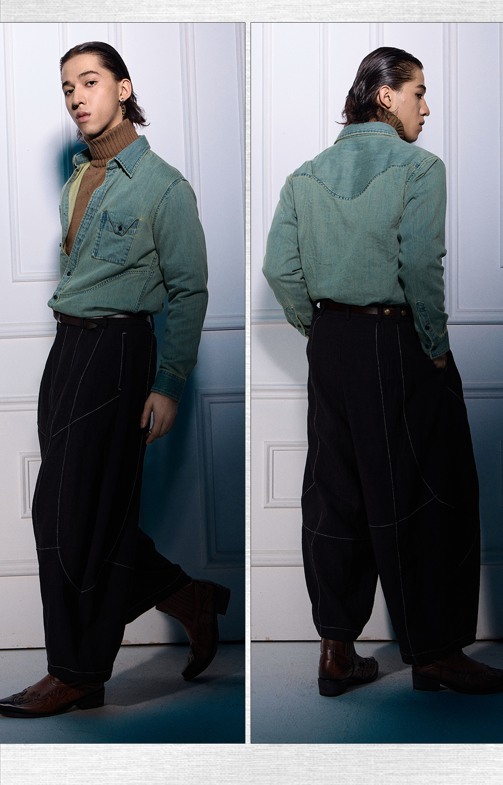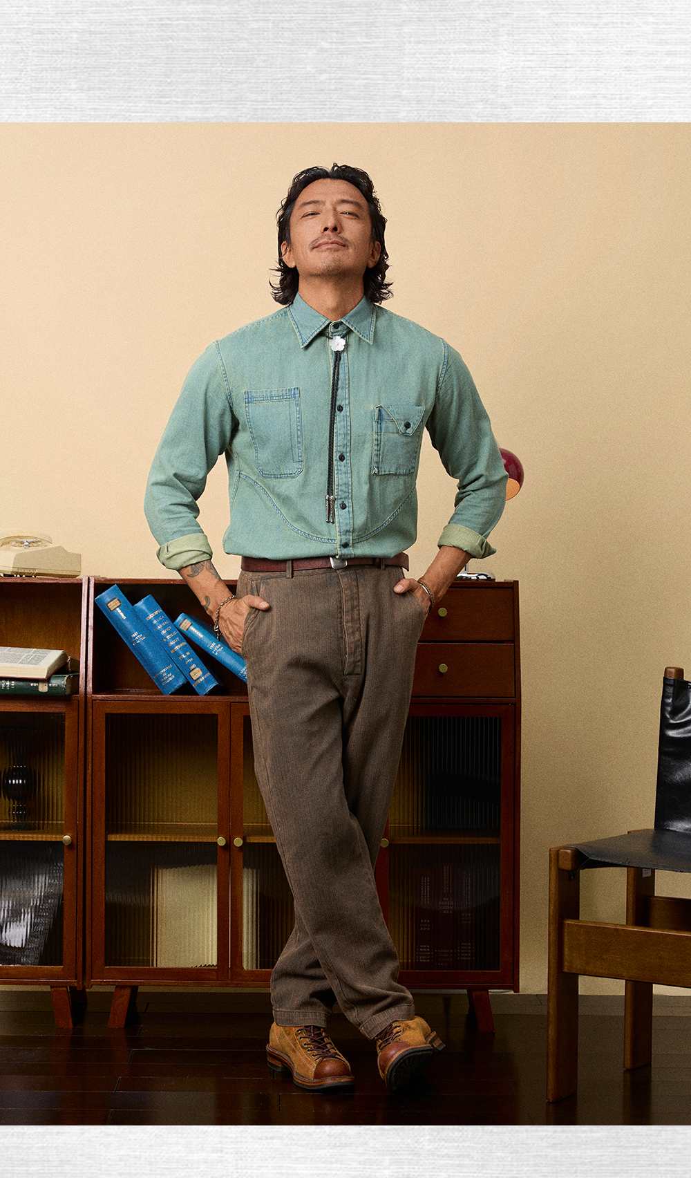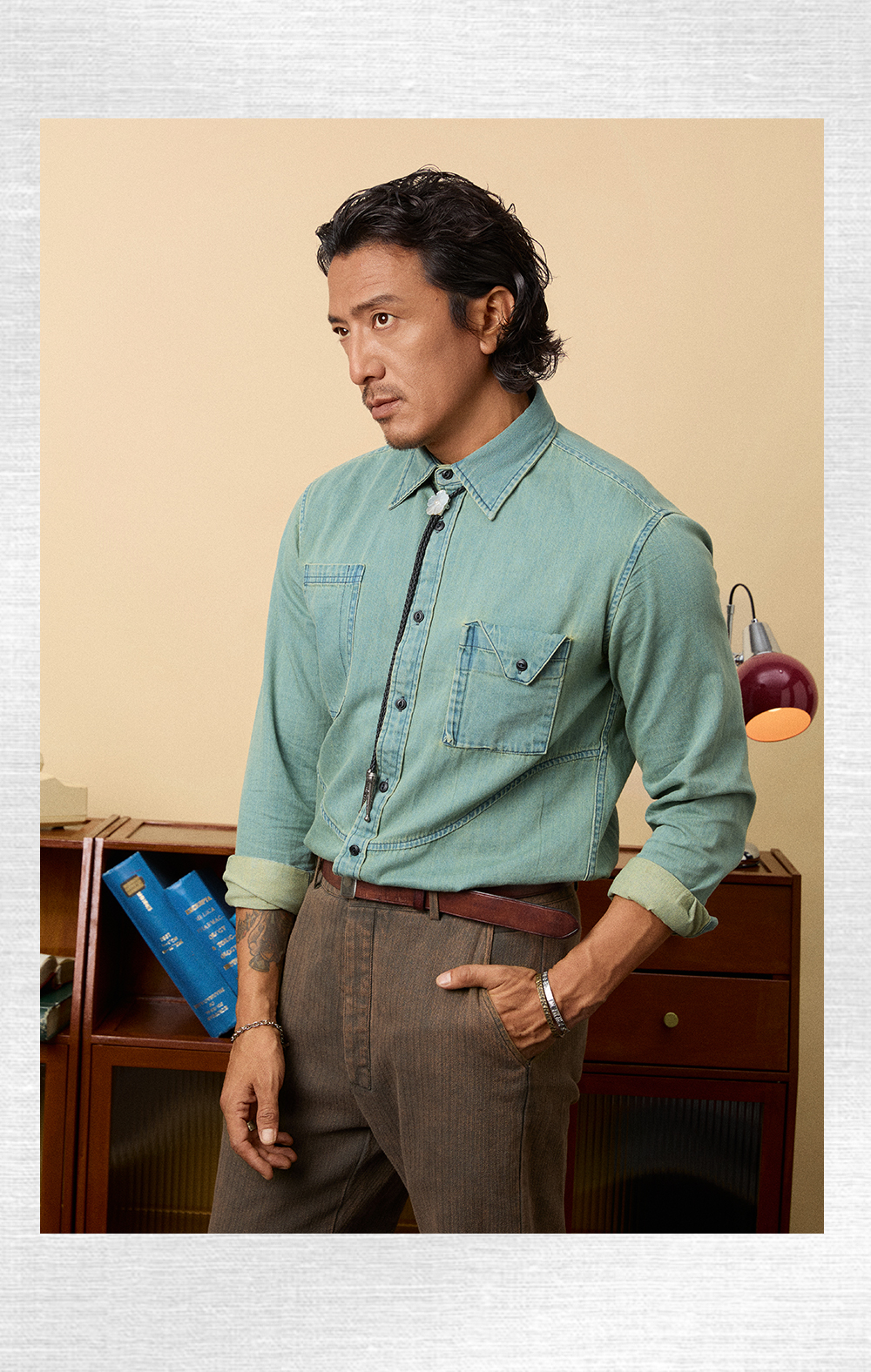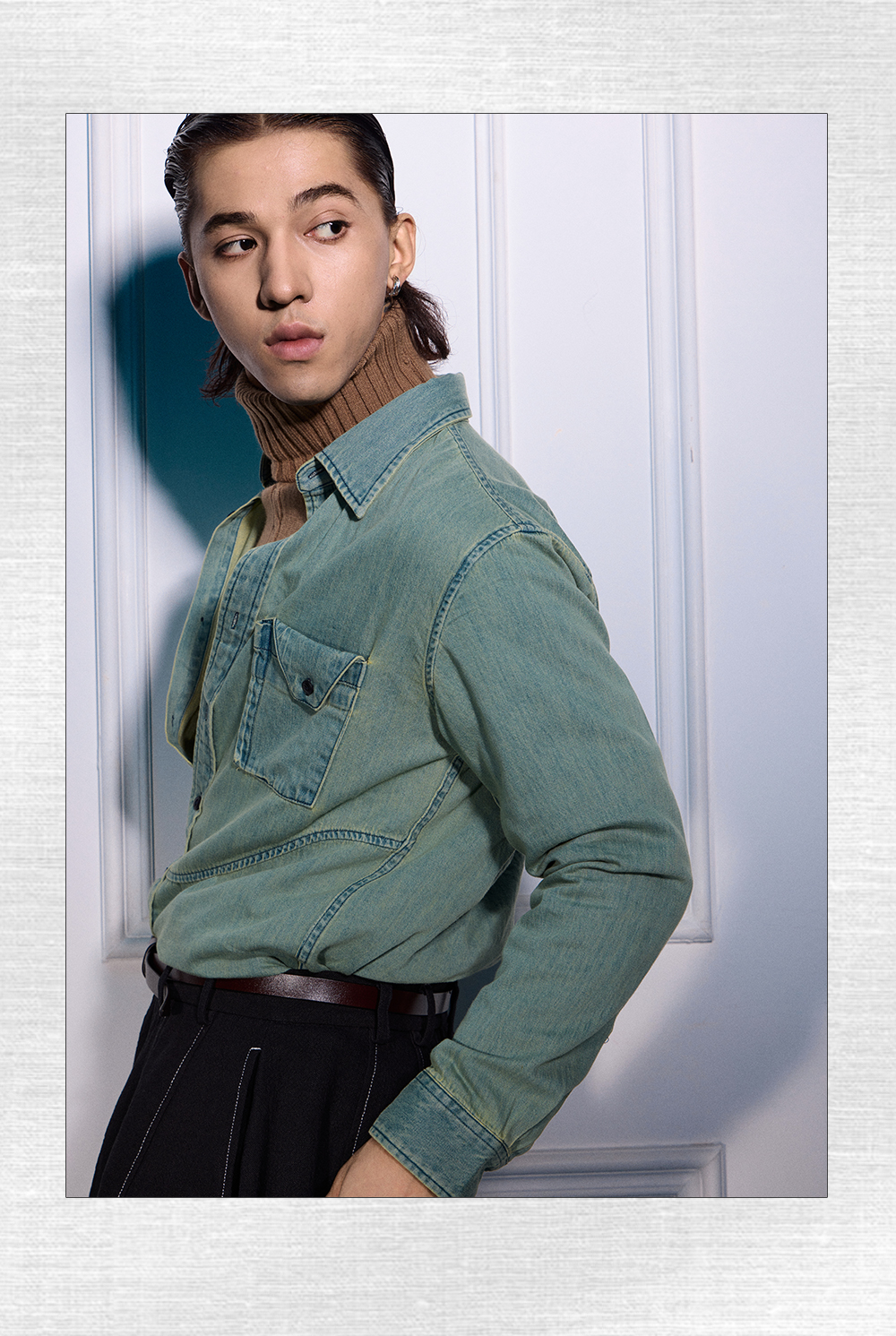 SOARIN【炒色做旧感】美式丹宁牛仔衬衫男设计感痞帅工装长袖衬衣