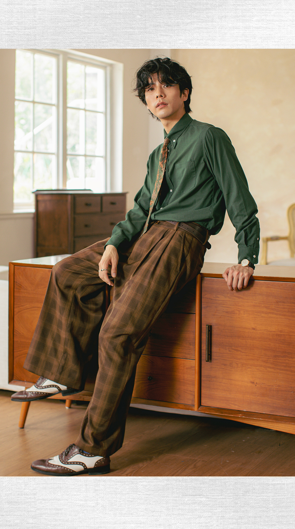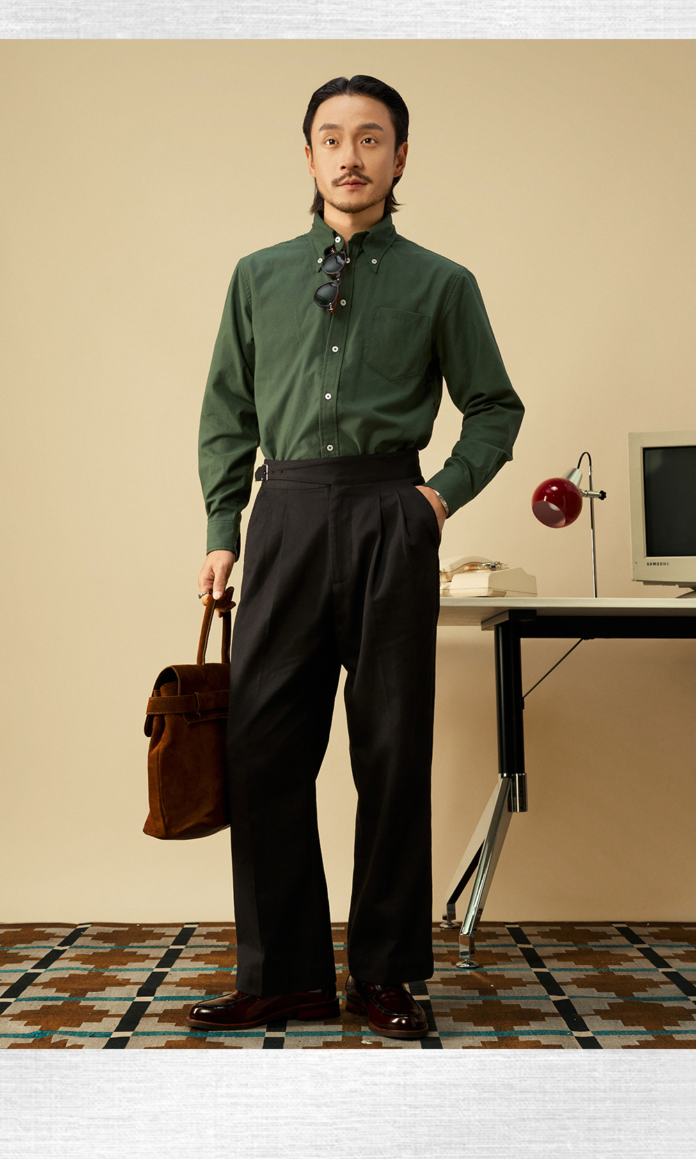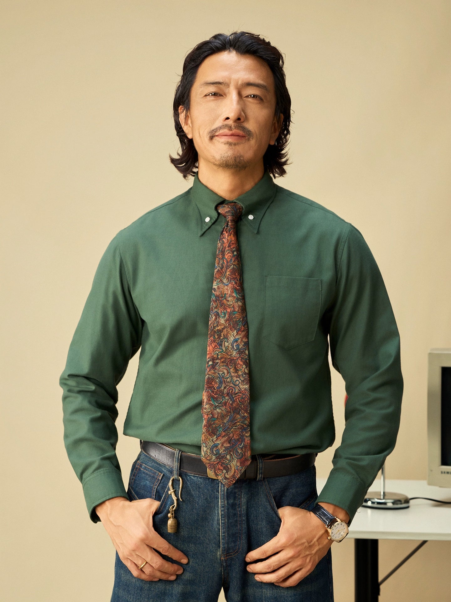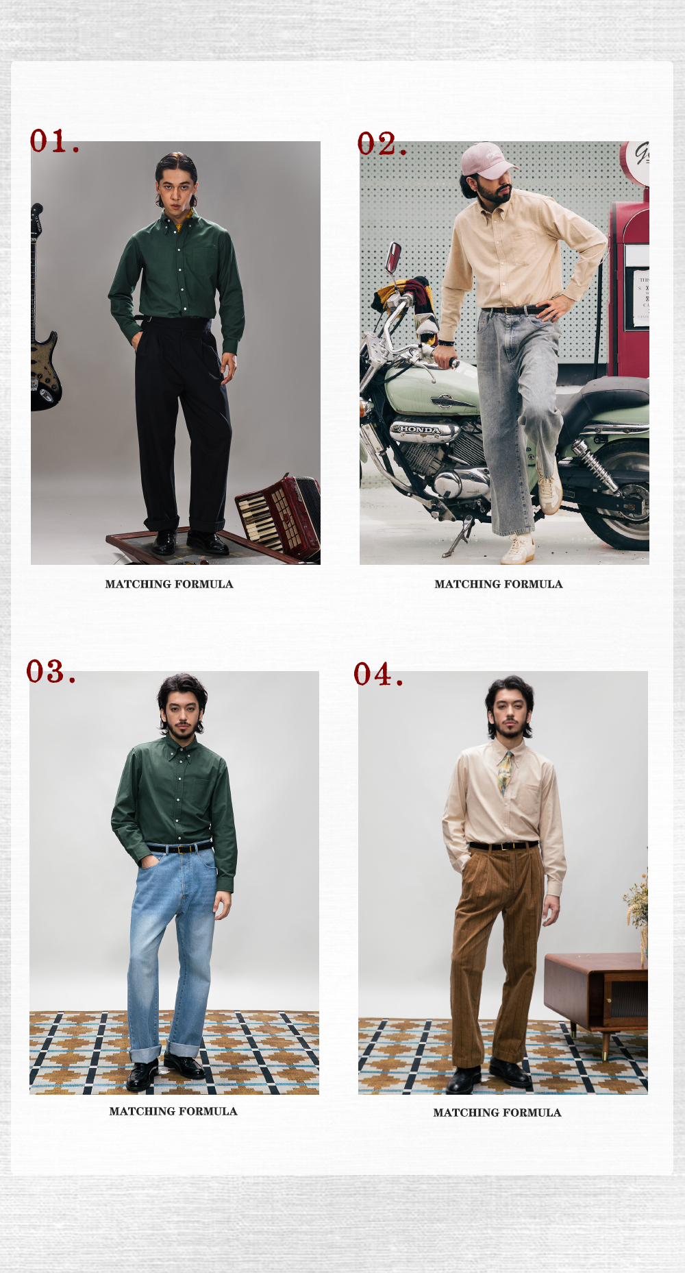 SOARIN【牛津纺】英伦复古扣领西装衬衫男高级感简约休闲长袖衬衣