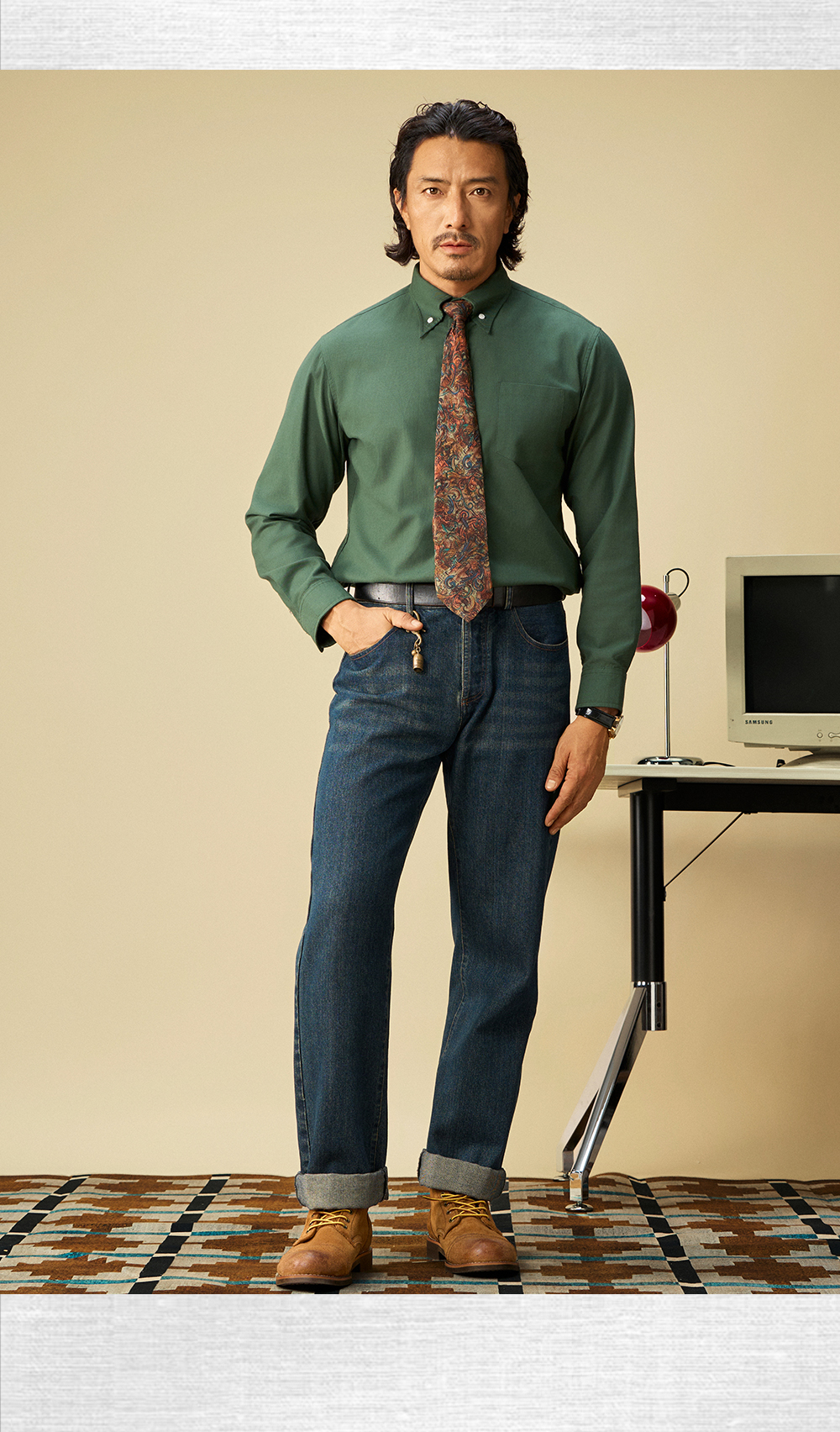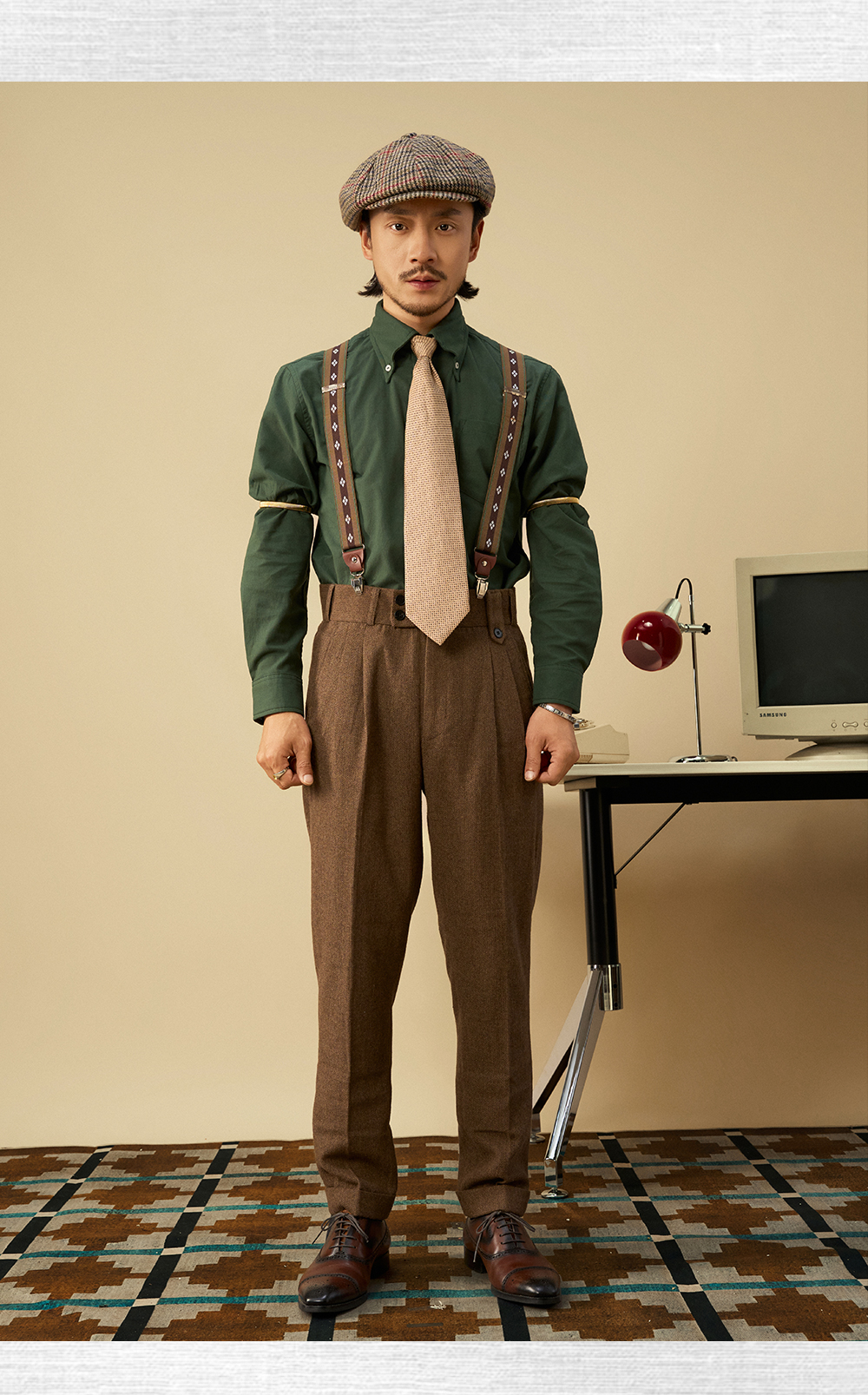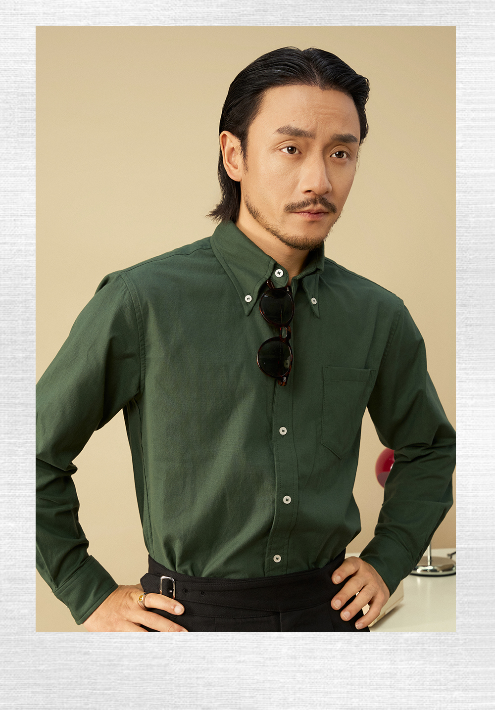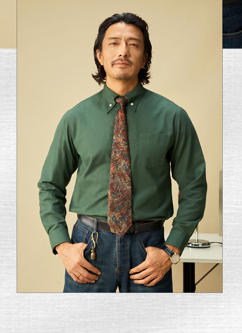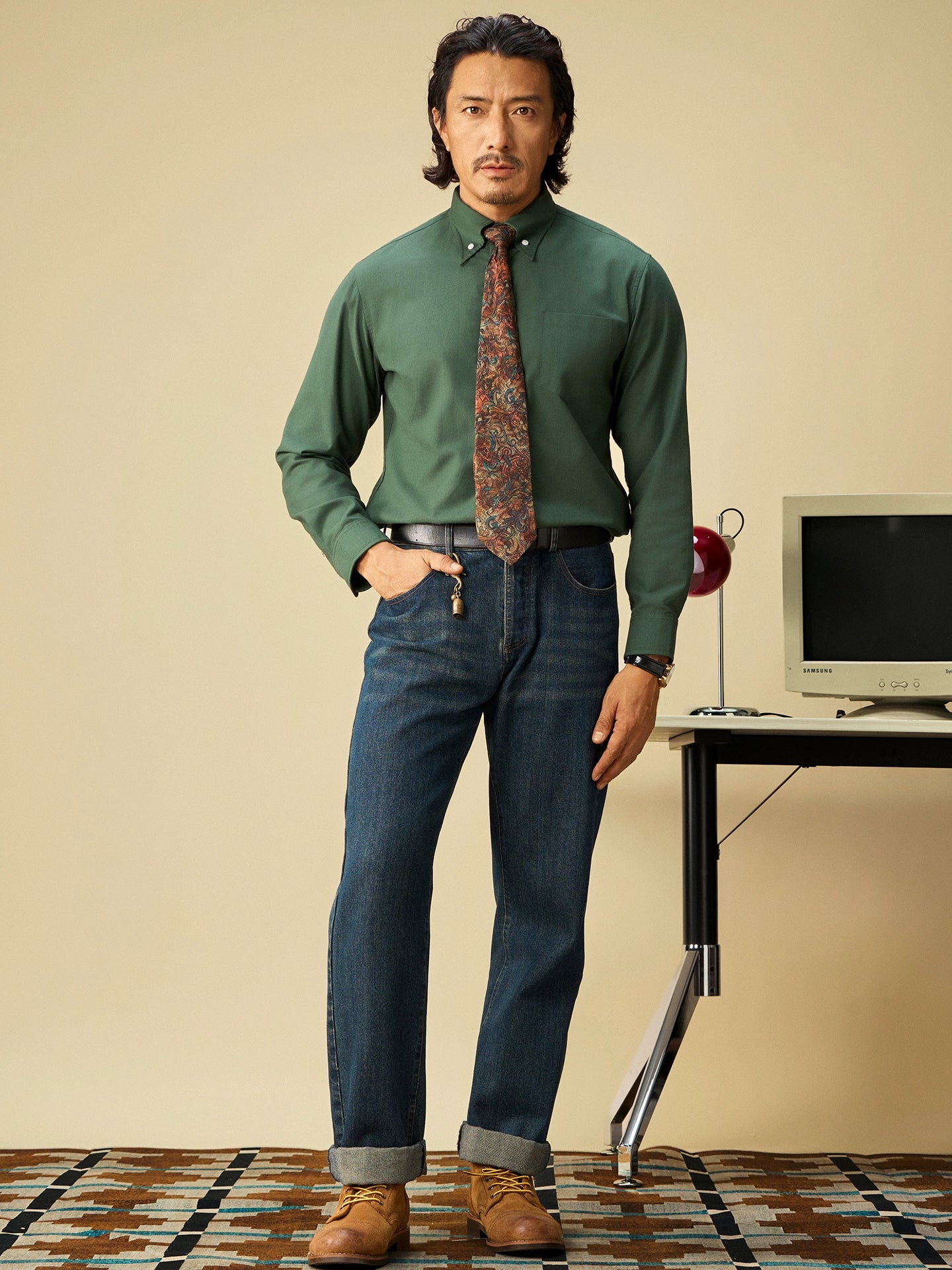 SOARIN【牛津纺】英伦复古扣领西装衬衫男高级感简约休闲长袖衬衣