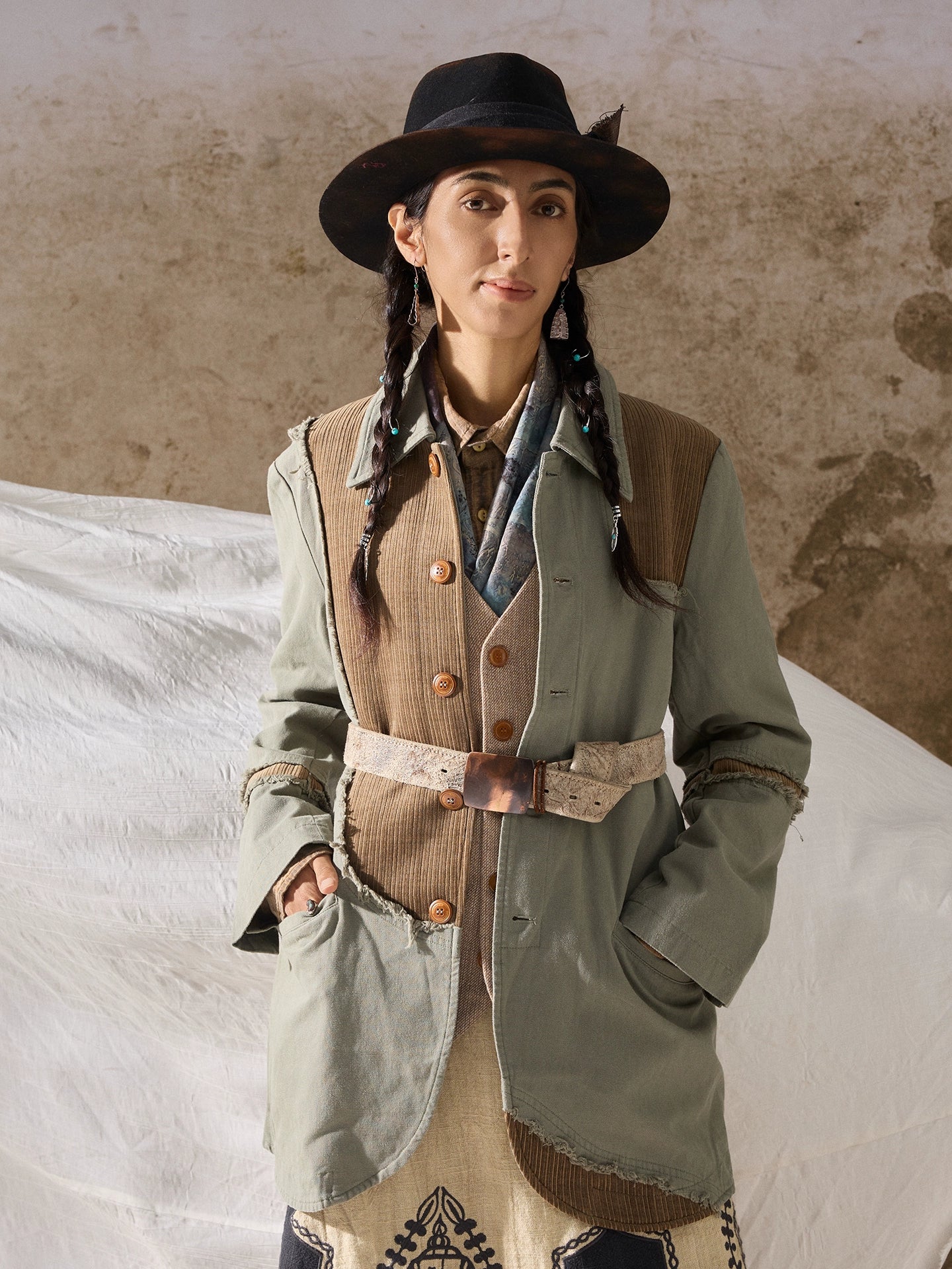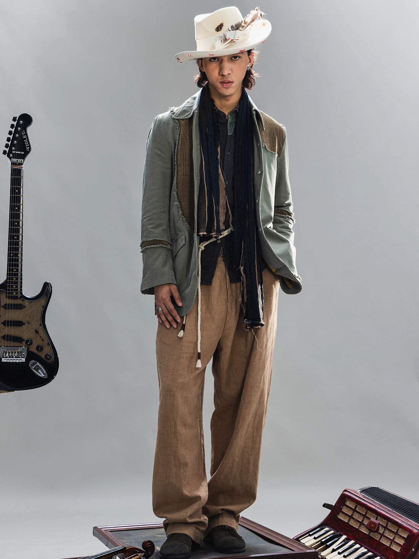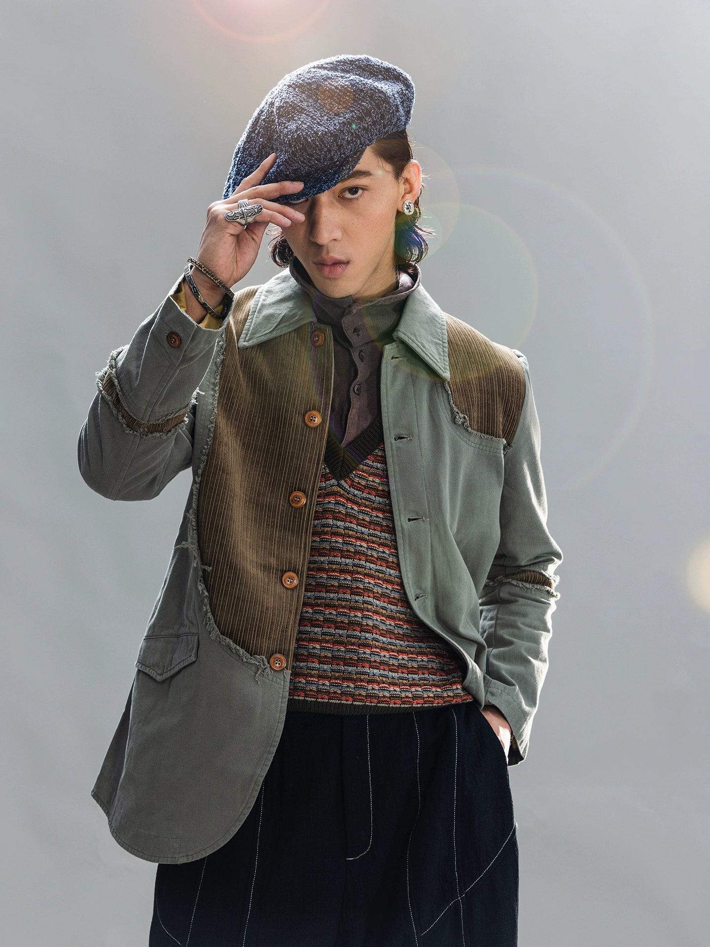 SOARIN【解构设计】独立复古拼接西装外套男不规则毛边长款单西服