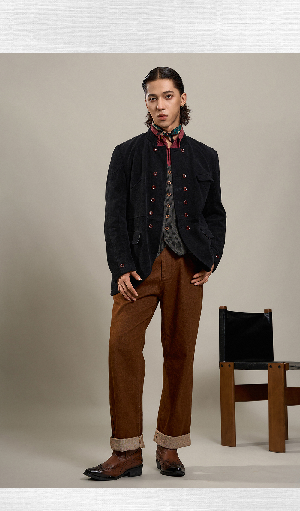 SOARIN'WORLD复古复古新中式双排扣外套男 改良中山装立领夹克